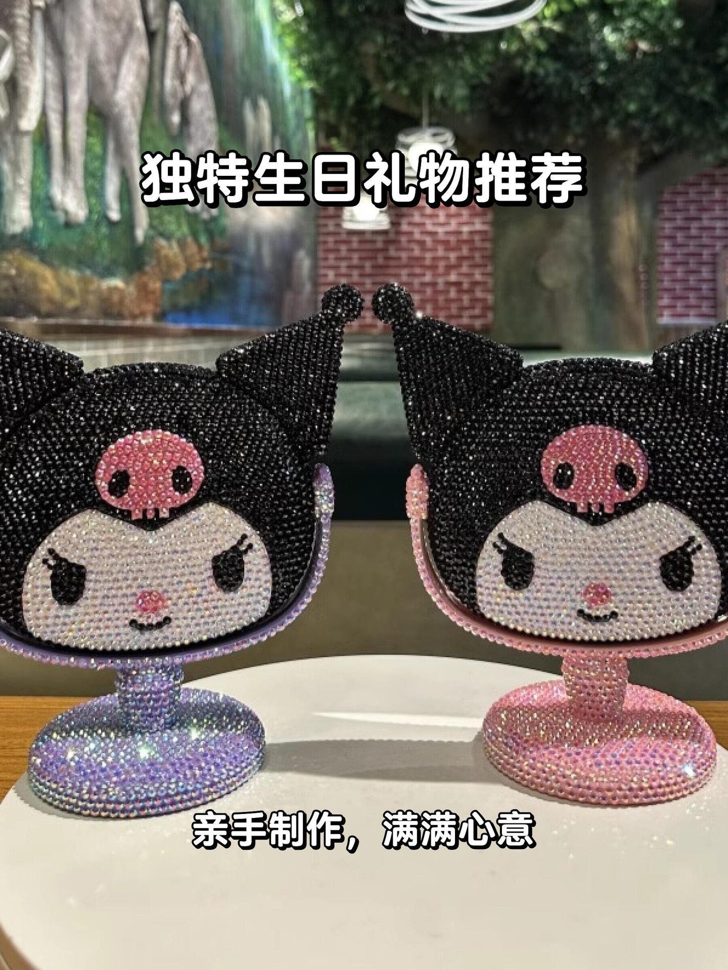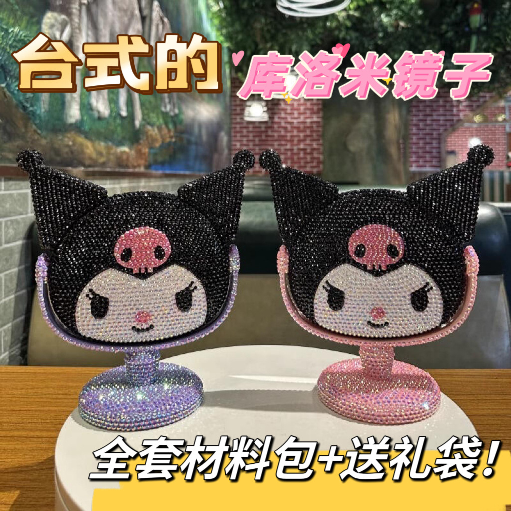 새로운 다이아몬드로 장식 된 Kulomi 스타일 데스크탑 미러 여성 침실 데스크탑 화장품 거울 귀여운 만화 장식품 단면 거울스토어 가기