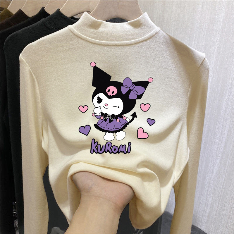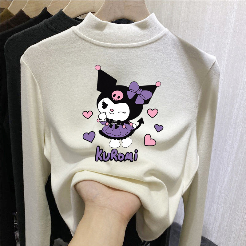 소녀 벨벳 따뜻한 바닥 셔츠 2024 봄과 가을 새로운 어린이 세미 하이 칼라 긴 소매 티셔츠 피부 친화적 인 내부 탑스토어 가기