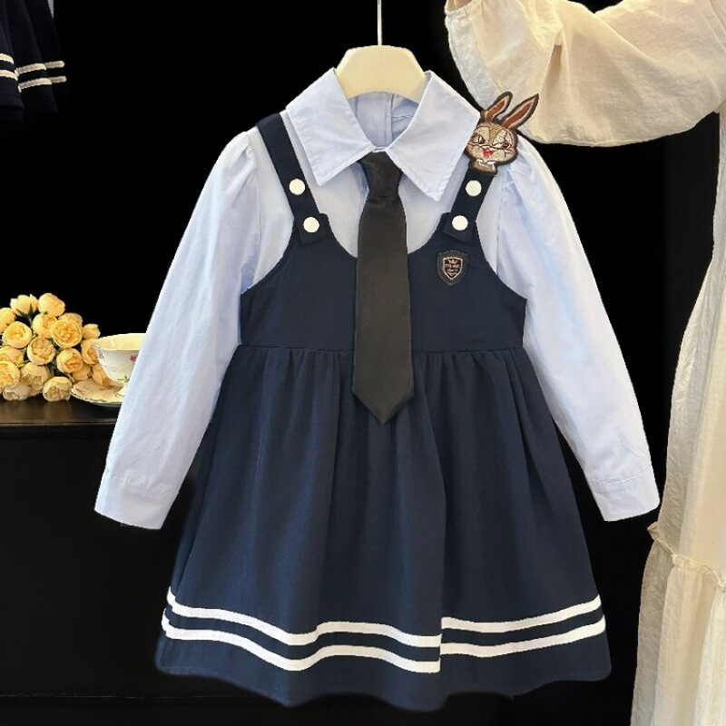 소녀 원피스 봄 원피스 어린이 2023 새로운 대학 스타일 스커트 1 세 아기 가짜 투피스 서양식 공주 스커트스토어 가기