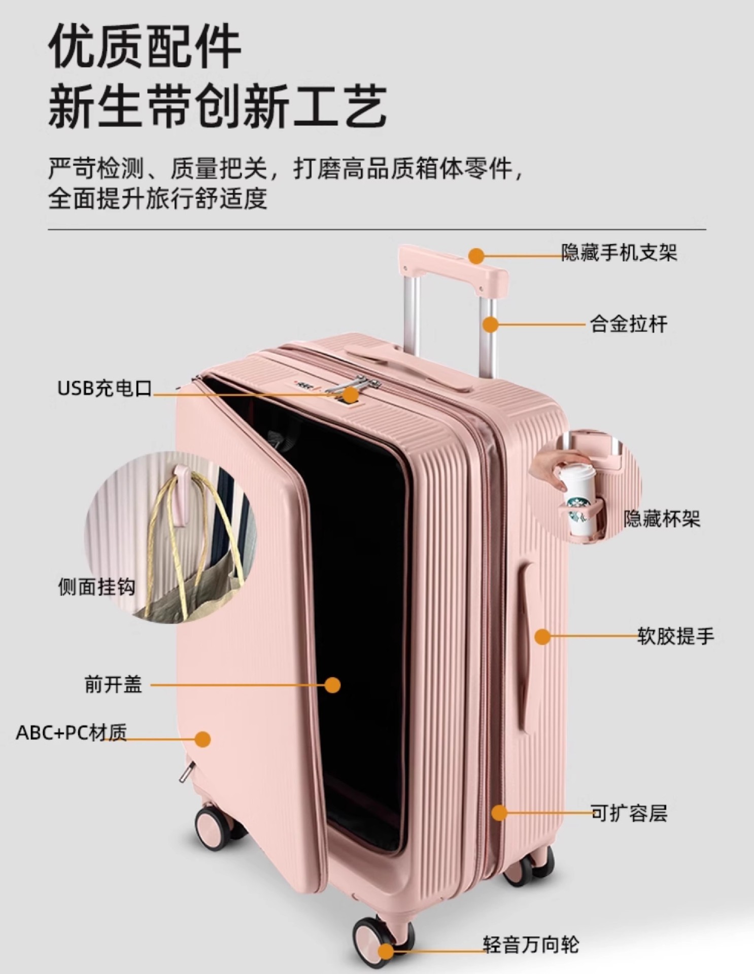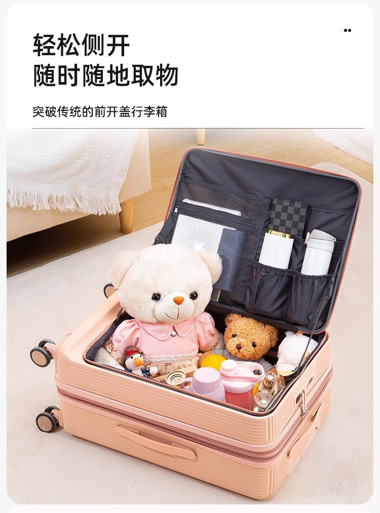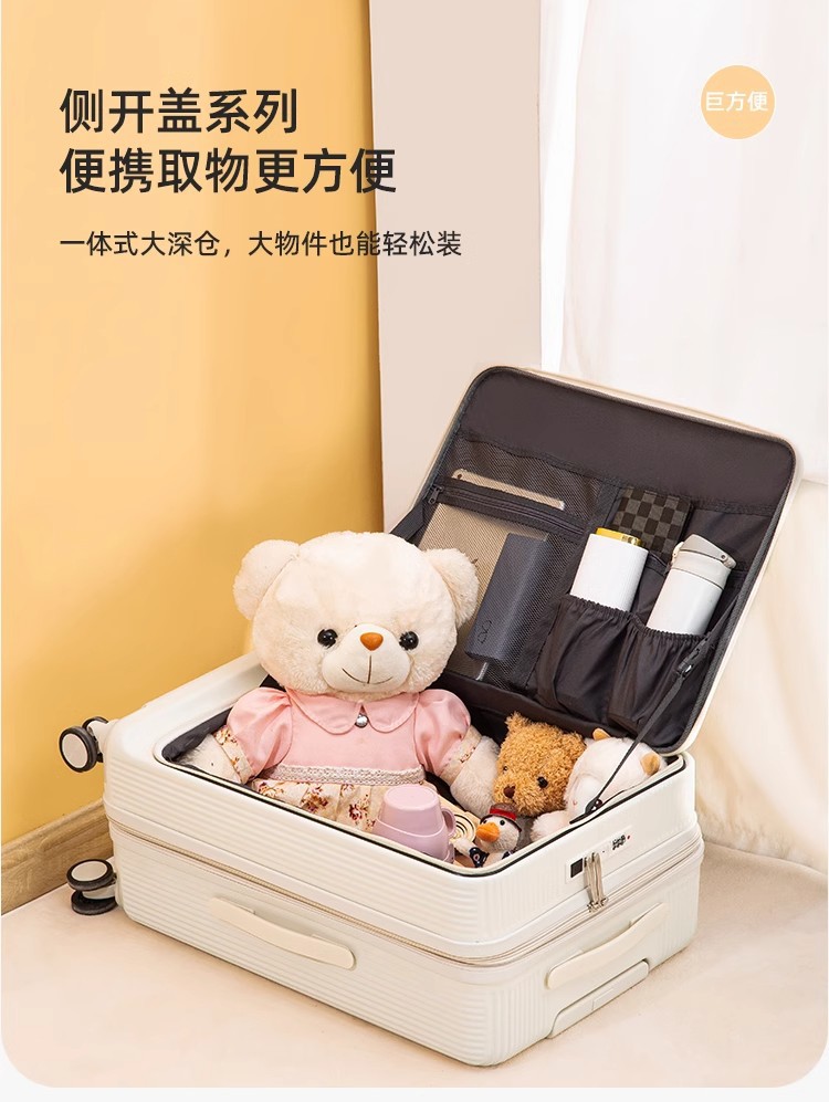 사이드 오픈 커버 딥 창고 통합 새로운 드라이 가방 20 인치 트렁크 새로운 확장 트롤리 박스스토어 가기