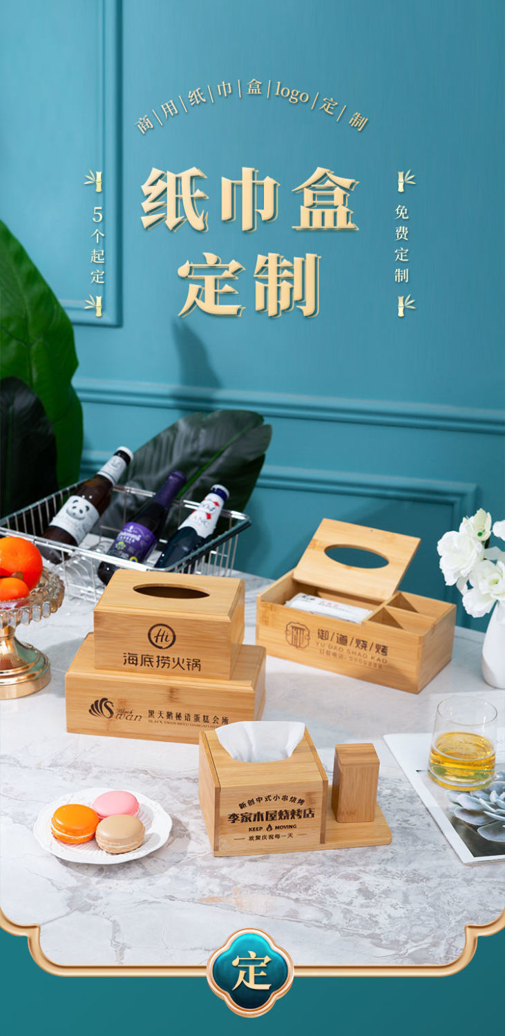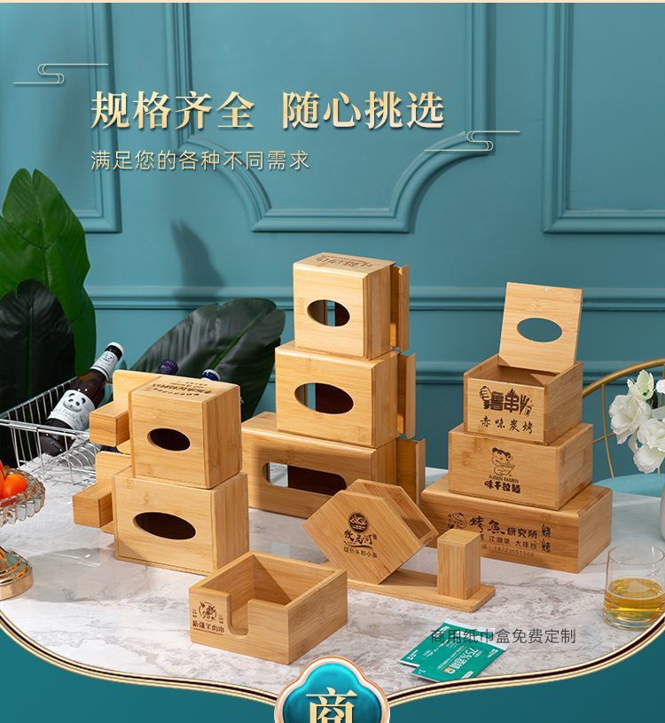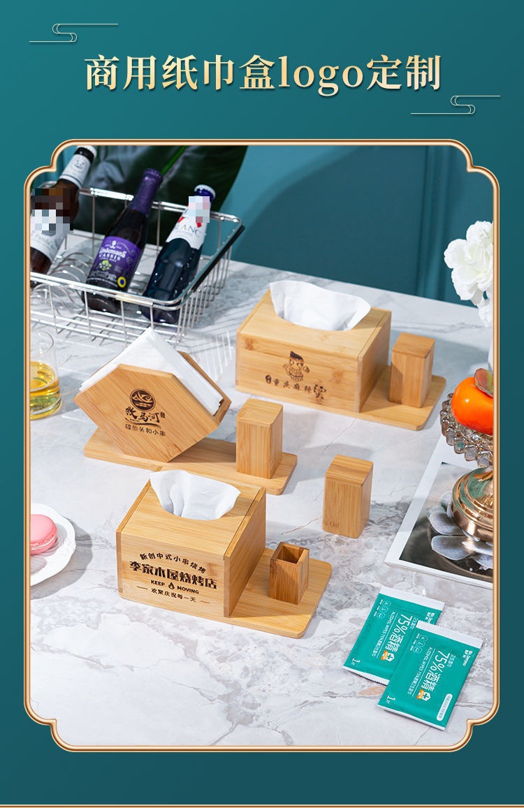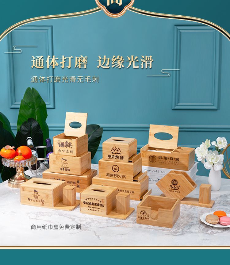 티슈 박스 로고 대나무 상업용 맞춤형 레스토랑 호텔 종이 상자 레스토랑 사무실 보관 상자 조각 종이 상자스토어 가기