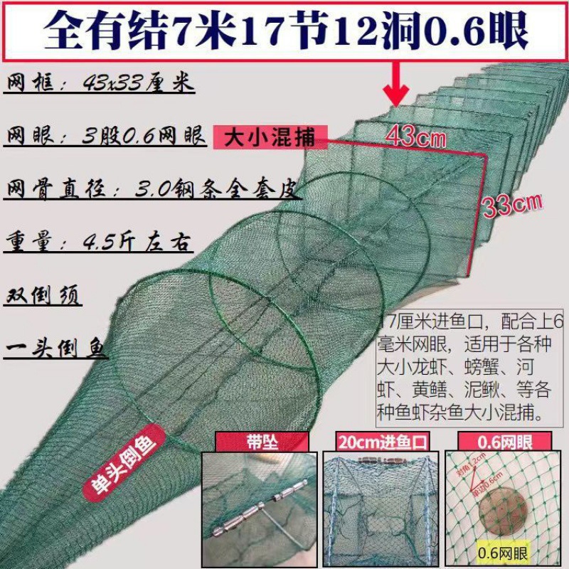 • 두꺼운 매듭 7m 두꺼운 3가닥 0.6눈(대형 및 소형 혼합 포획)