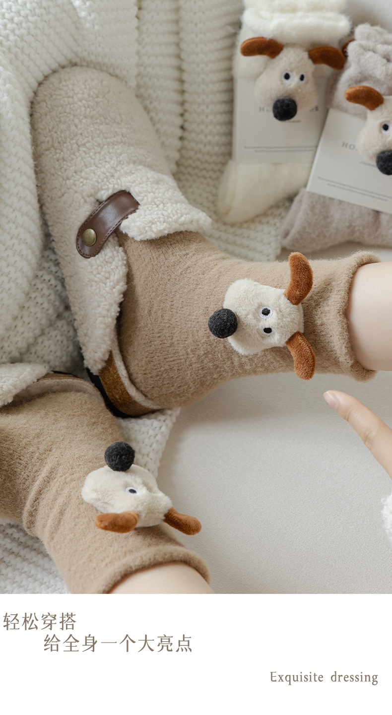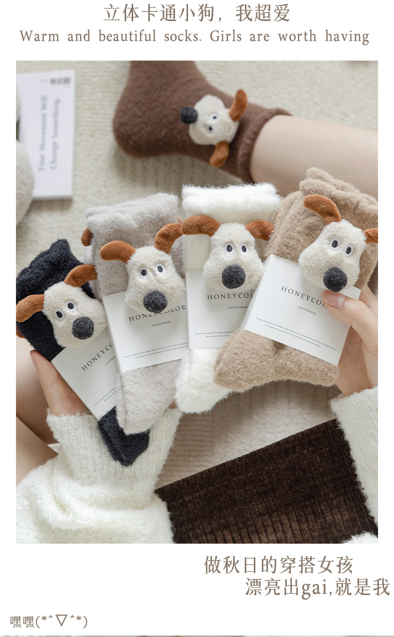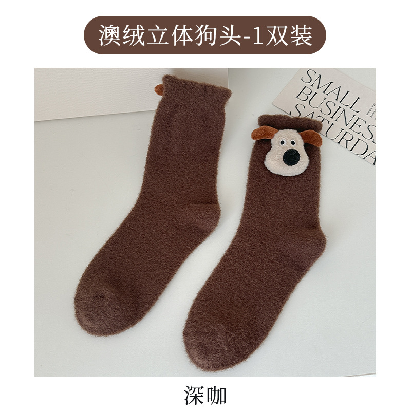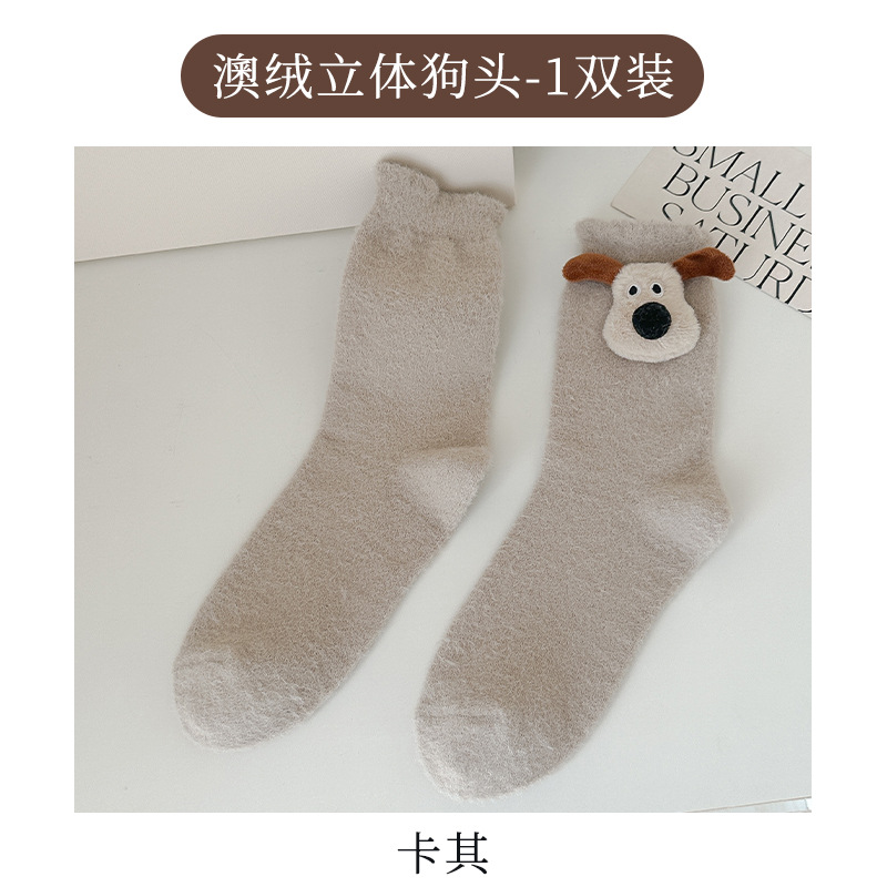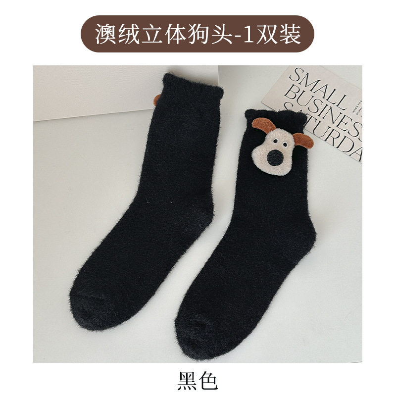 귀여운 만화 중간 튜브 양말 가을과 겨울 모든 경기 양말 기모 두꺼운 강아지 양말