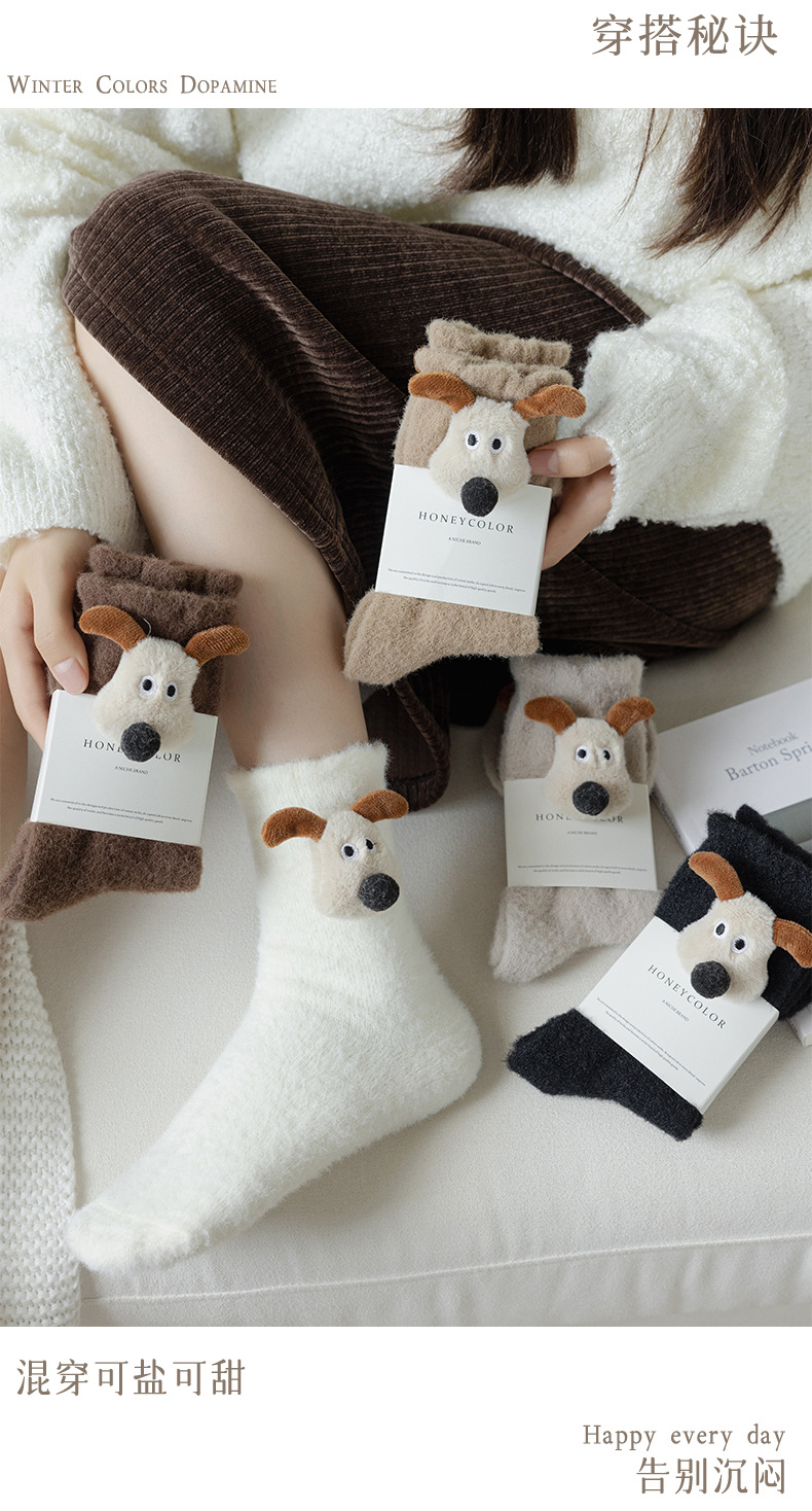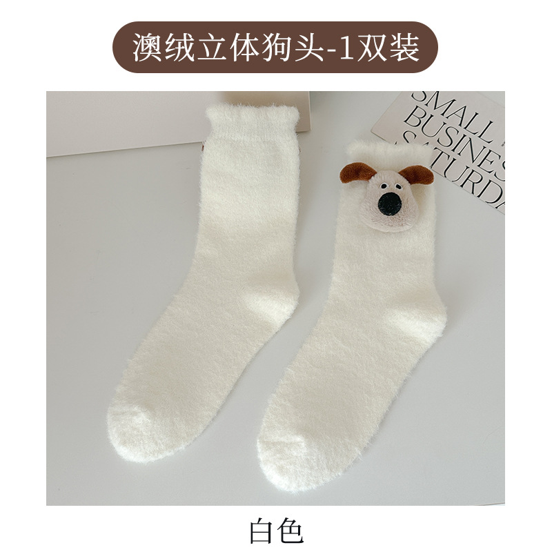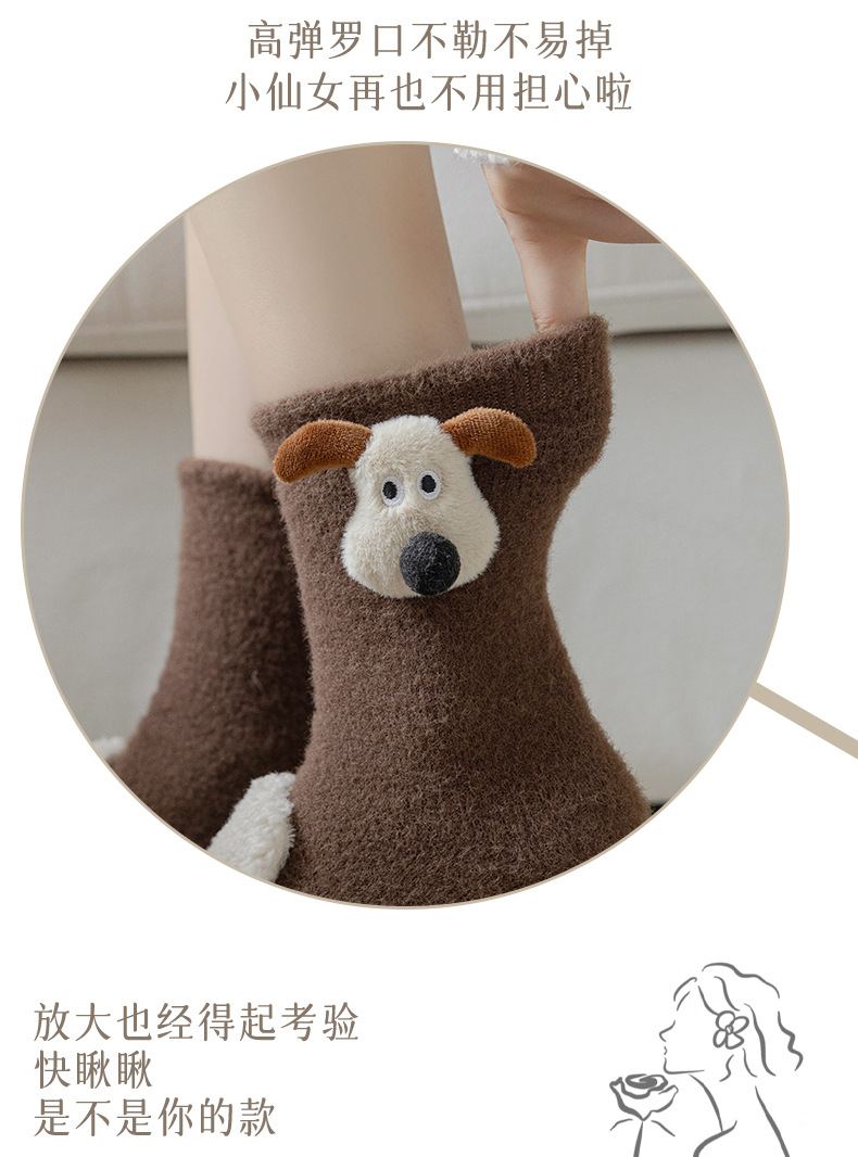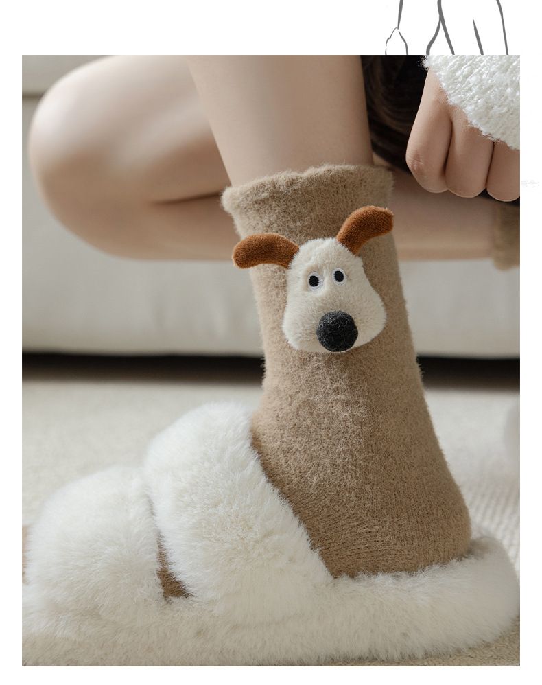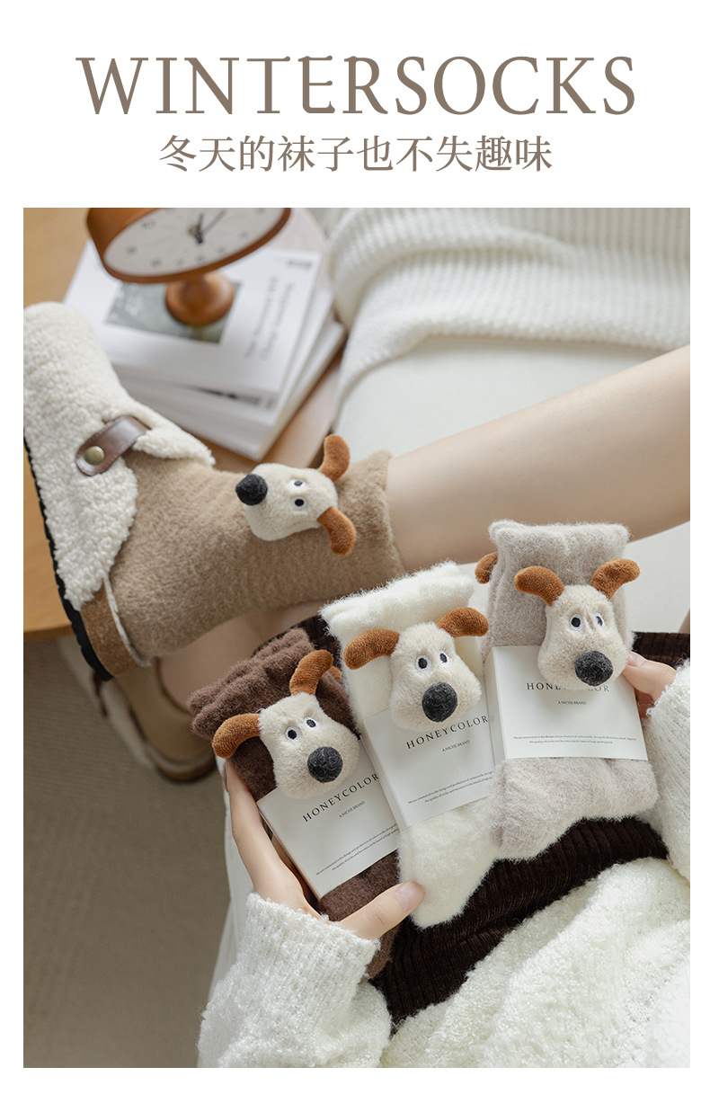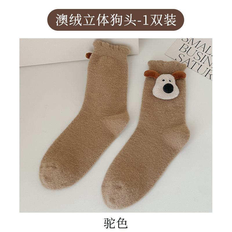 귀여운 만화 중간 튜브 양말 가을과 겨울 모든 경기 양말 기모 두꺼운 강아지 양말
