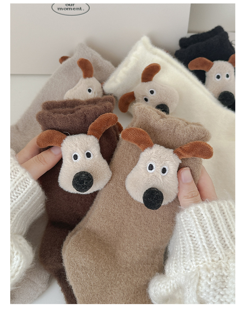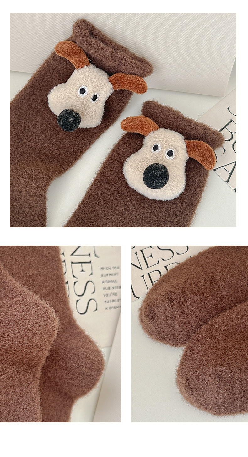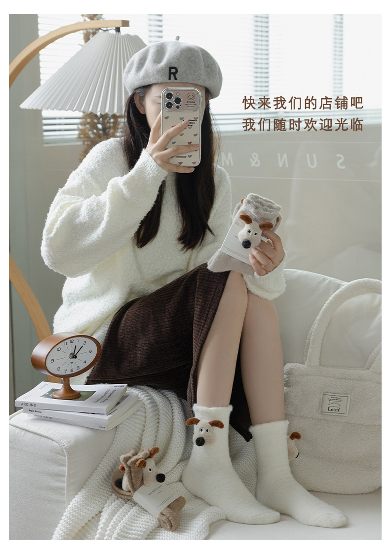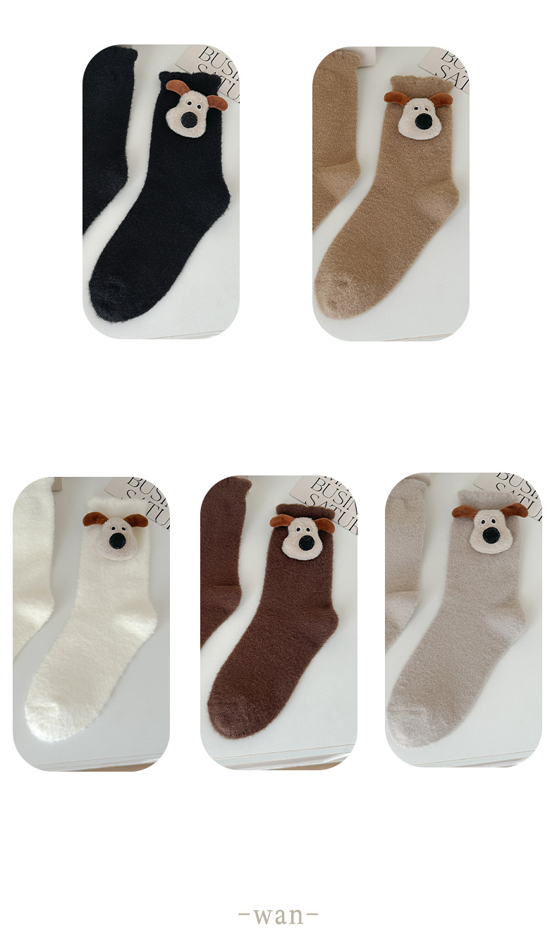 귀여운 만화 중간 튜브 양말 가을과 겨울 모든 경기 양말 기모 두꺼운 강아지 양말