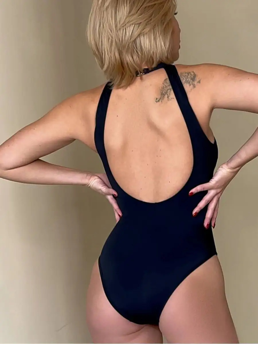 2025 러시아 블랙 섹시 할로우 원피스 수영복 핫 세일 홀터넥 백리스 원피스 수영복 비키니