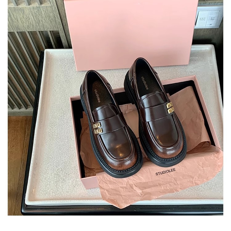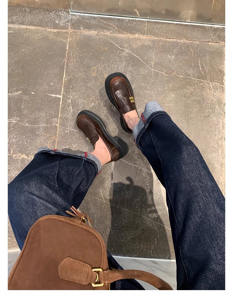 포도 엄마 studiolee 대학 스타일 내부 높이 증가 슬립온 신발 금속 버클 Lefu 신발 여성의 봄과 가을