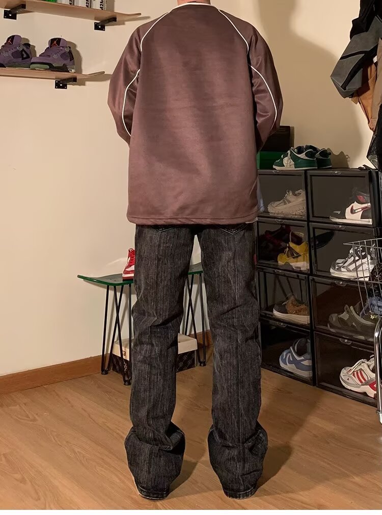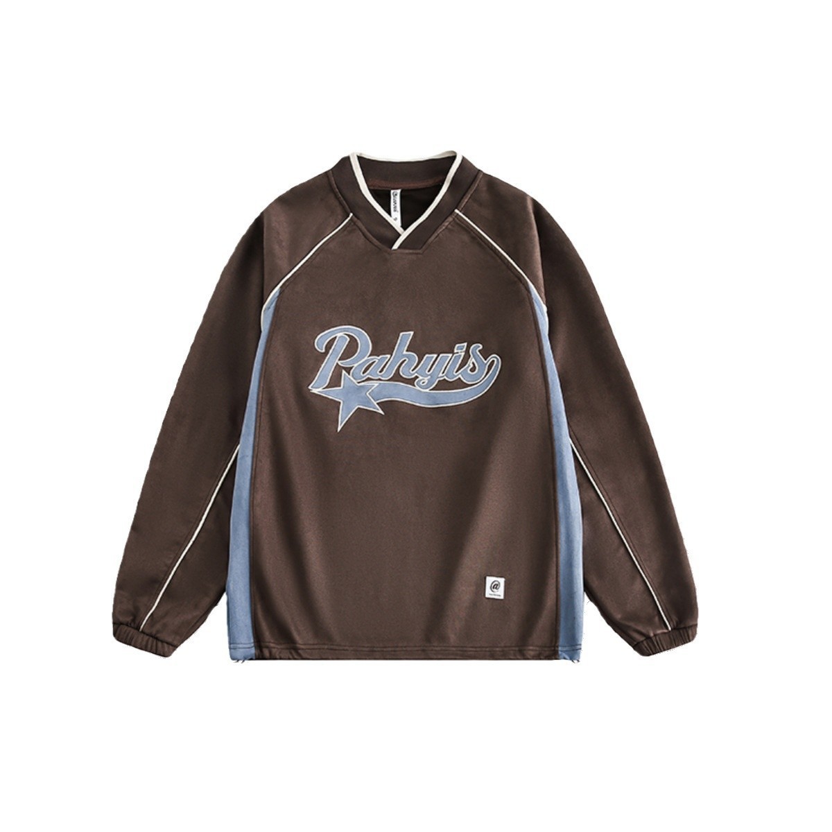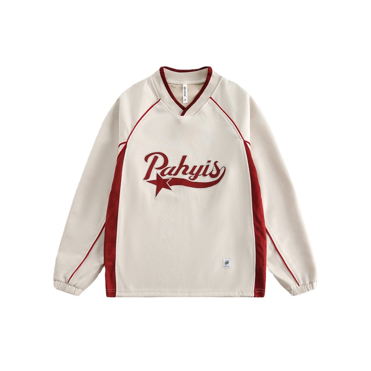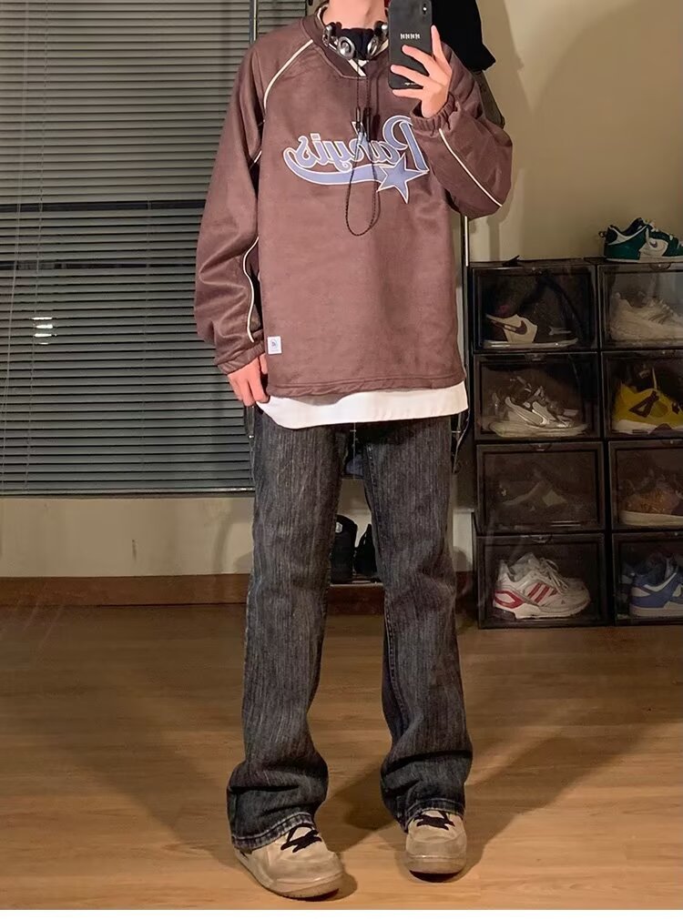 남성 가을 새로운 V 넥 탄성 허리 스웨터 실루엣 느슨한 편지 인쇄 컬러 매칭 캐주얼 탑 남성 패션스토어 가기
