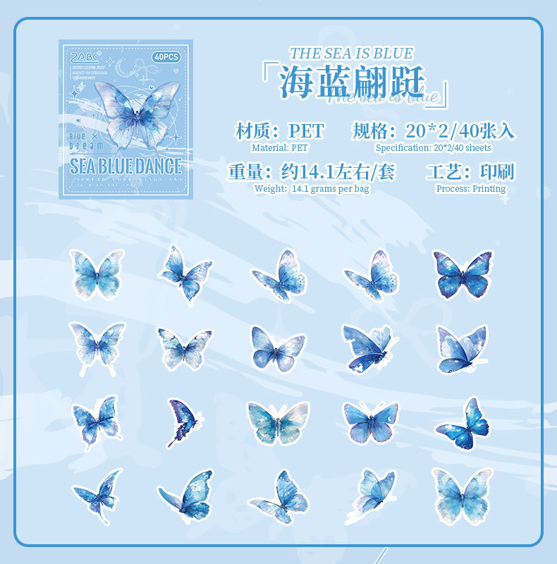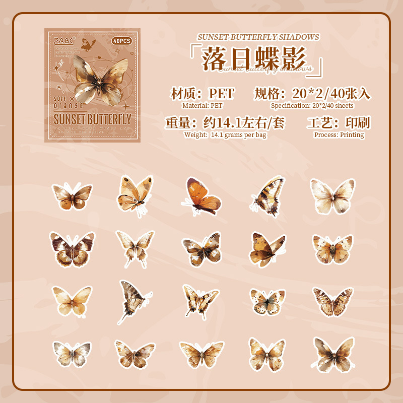 Mo Xiang 나비 그림자 투명 방수 애완 동물 박스 스티커 DIY 손 계정 일기 스티커 빈티지 나비 동물 스티커 가방스토어 가기