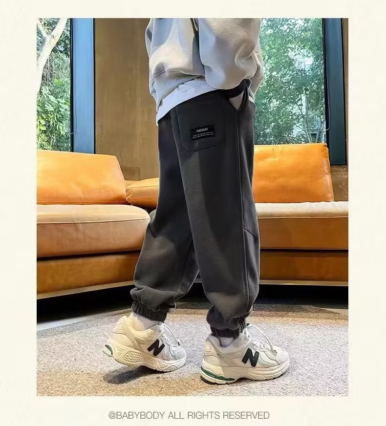2024 새로운 소년 캐주얼 바지 아동복 한국 스타일 봄 가을 스포츠 바지 큰 어린이 느슨한 바지 서양식 트렌디스토어 가기