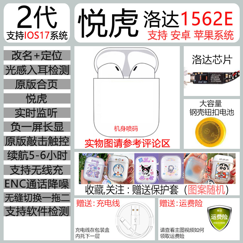 • 5세대 pro2 업그레이드 버전: Yuehu 1562AE+액티브 노이즈 감소 40db+투명도+무선 충전+슬라이딩 볼륨 조절+부저+전체 기능