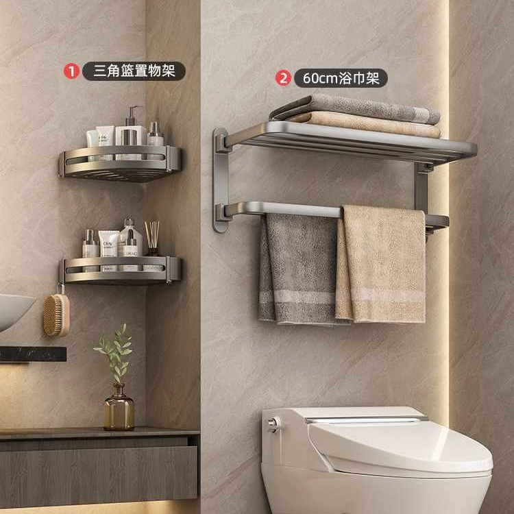 총 회색 공간 알루미늄 수건 랙 펀치 프리 화장실 욕실 랙 벽 장착 화장실 수건 랙