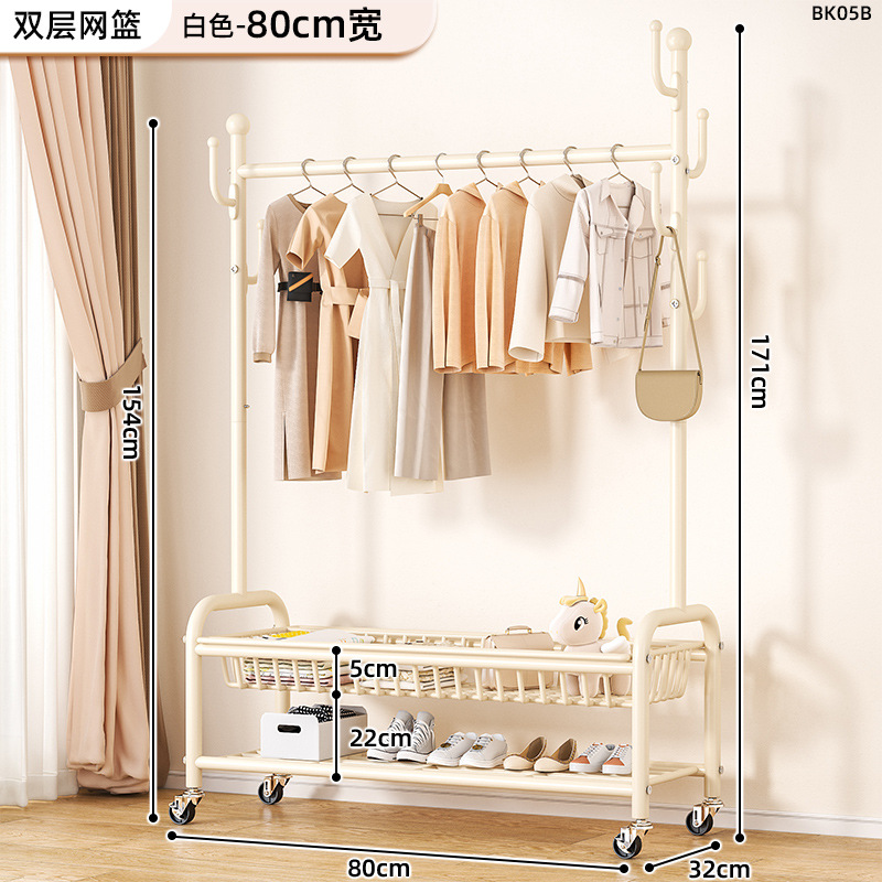 • 80cm 크림 화이트 ⭐ 더블 레이어 메쉬 바구니丨6 후크 + 금속 범용 휠