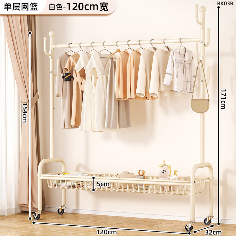 • 120cm 크림 화이트⭐단층 메쉬 바구니丨6 후크 + 금속 범용 휠