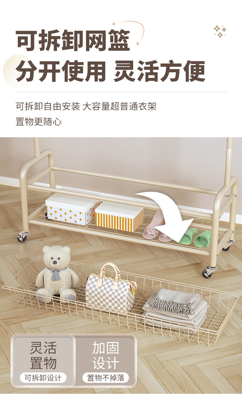 • 120cm 라이트 럭셔리 골드⭐단층 메쉬 바구니丨6 후크 + 금속 범용 휠