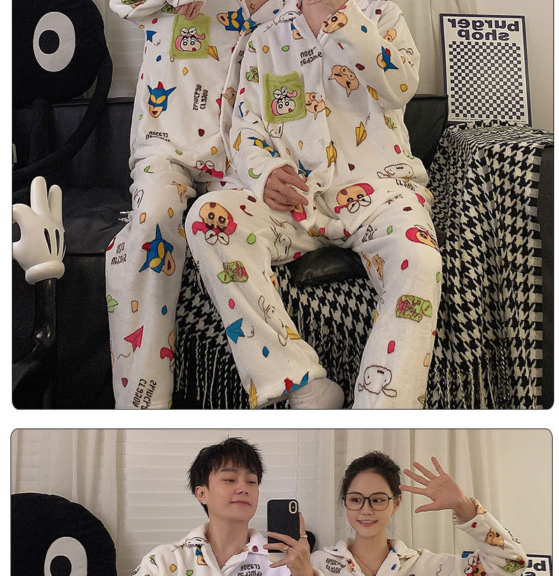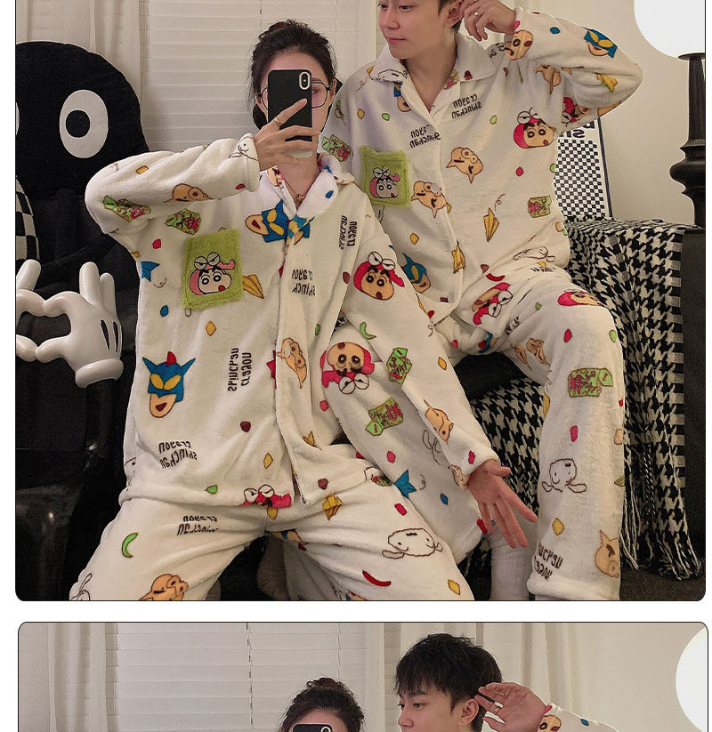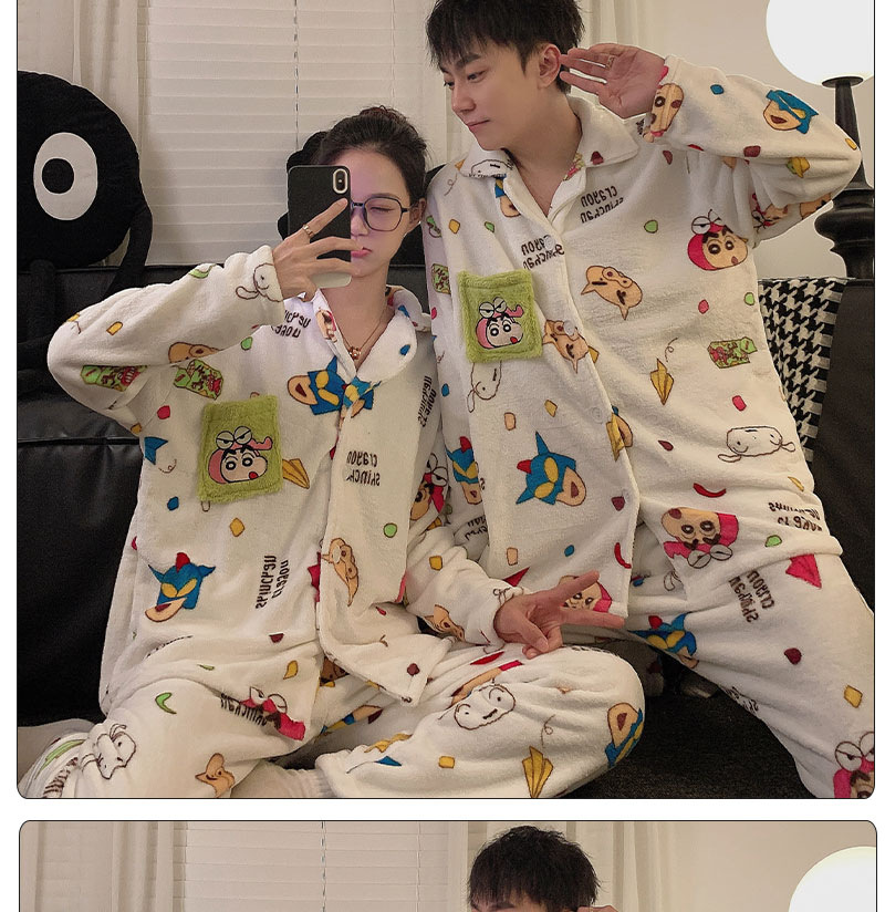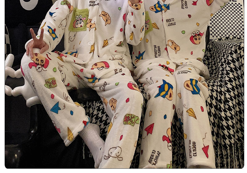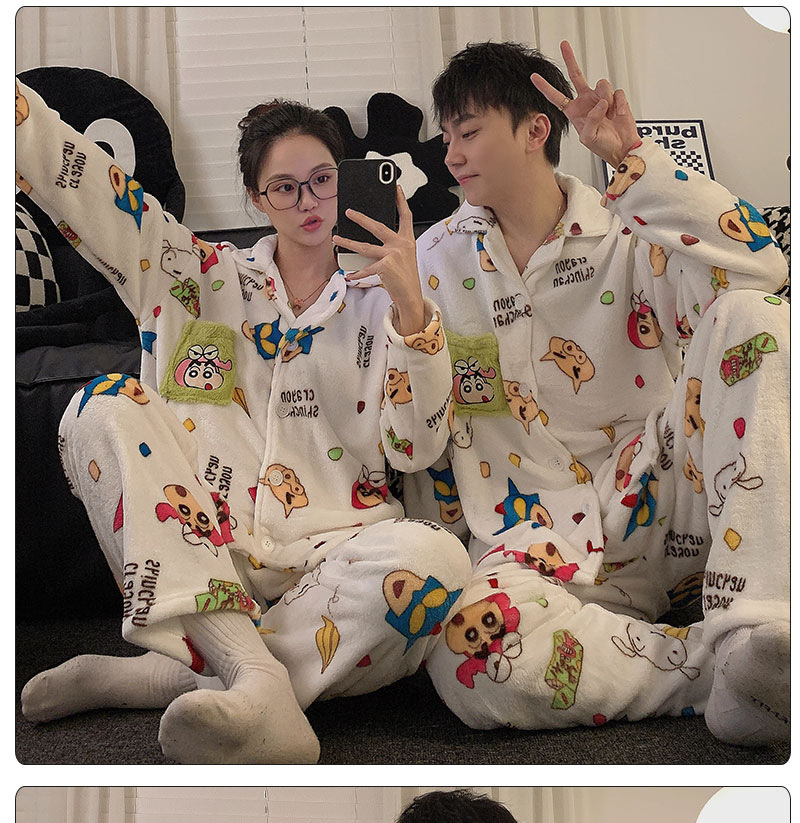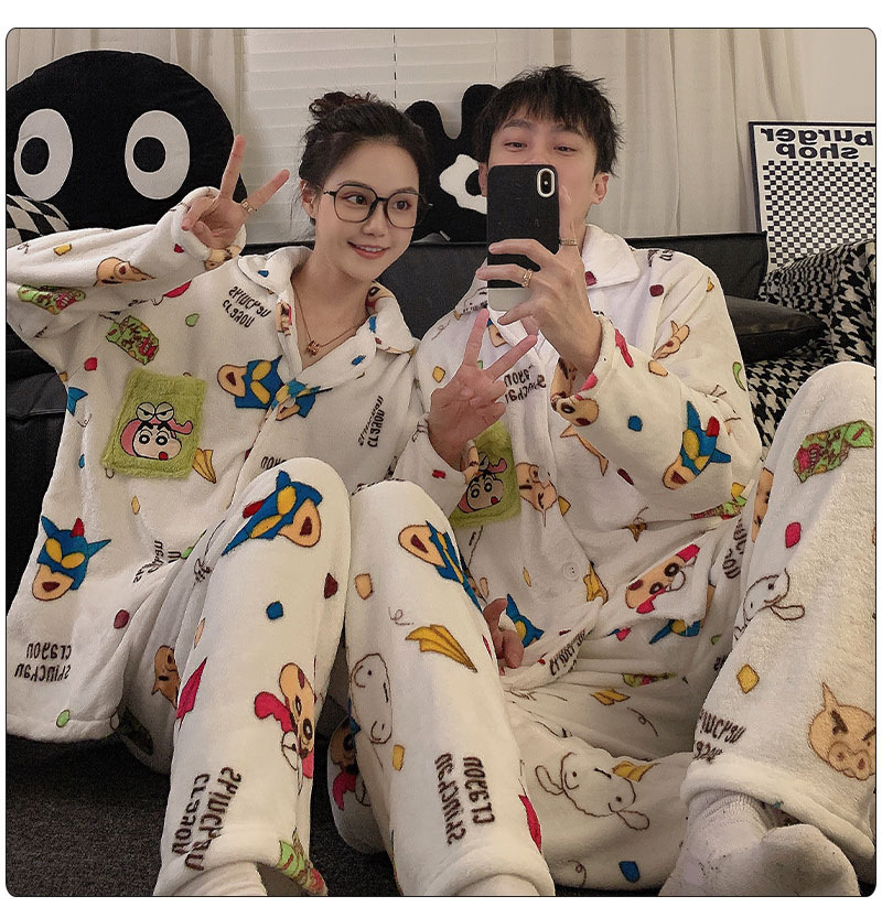 새로운 산호 양털 잠옷 여성의 가을과 겨울 새로운 만화 커플 따뜻한 세트 팔라 양털 기숙사 홈 옷 세트스토어 가기