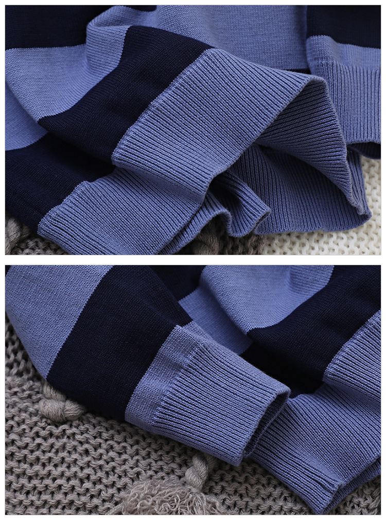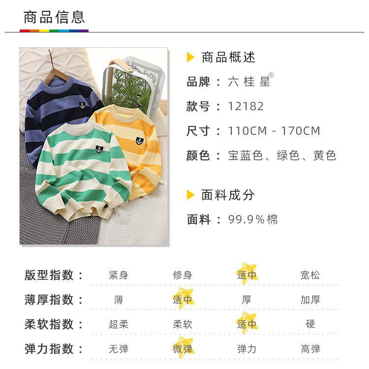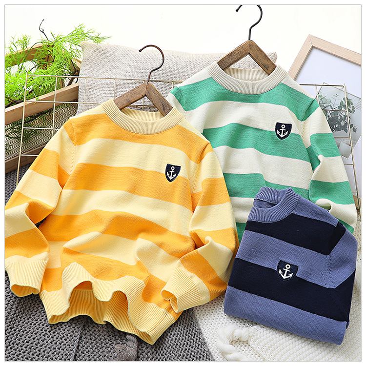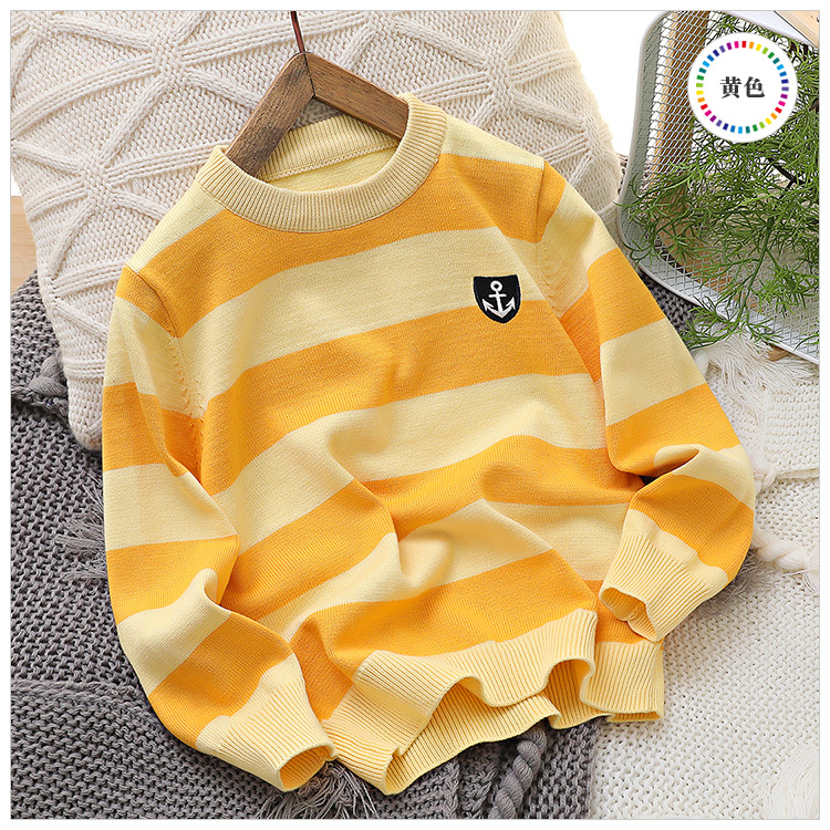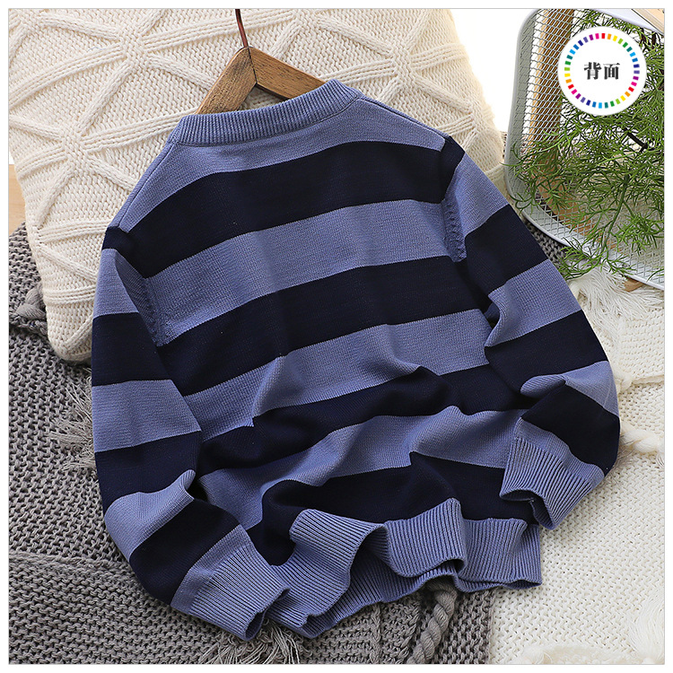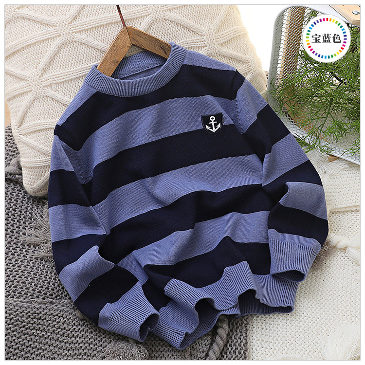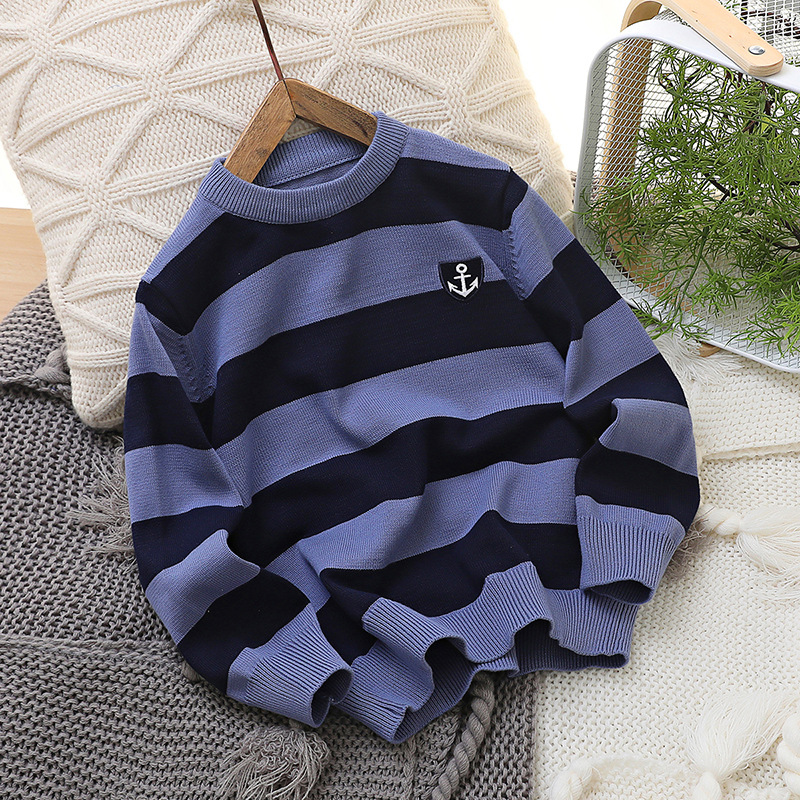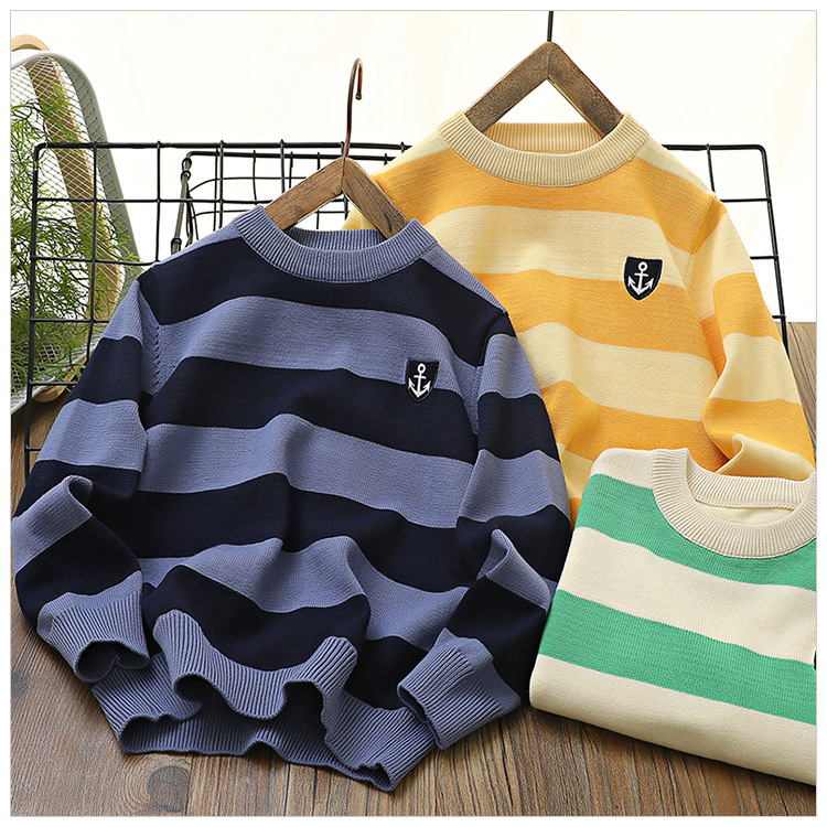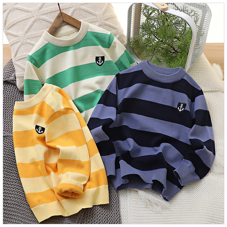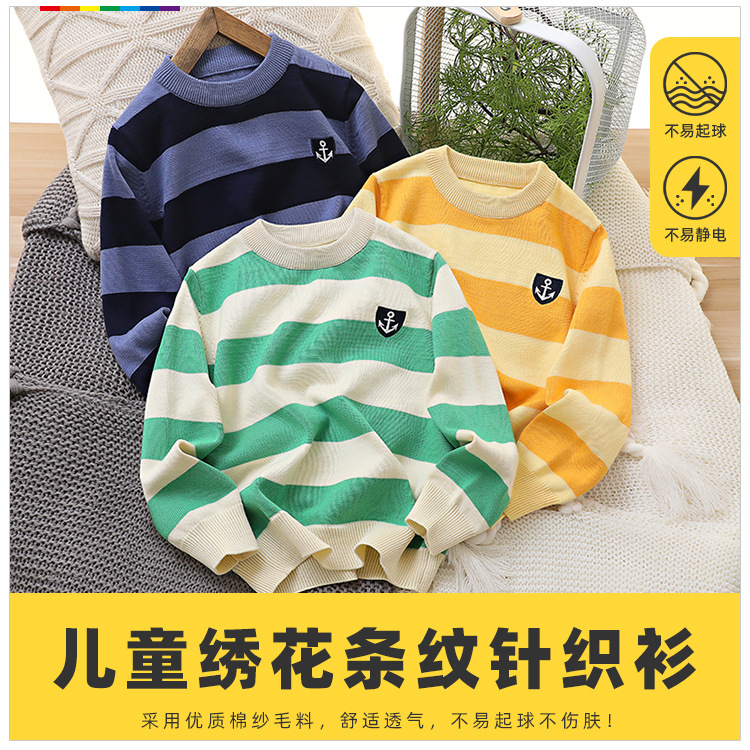 2024 새로운 어린이 스웨터 가을 얇은 자수 니트 스웨터 스트라이프 크루 넥 스타일리스트 중형 및 대형 아동복스토어 가기