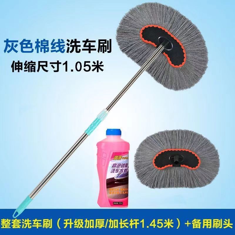 • 그레이 코튼 세차 걸레 [ 1.25m ] + 예비 브러시 헤드 + 세차액