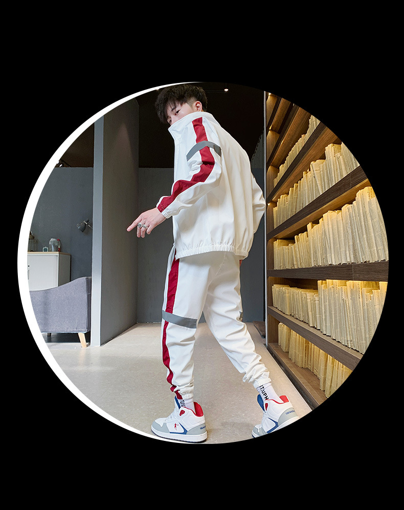 남자 레저 스포츠 카디건 세트 남성 봄과 가을 반사 스트립 2 피스 스포츠 세트 도매 대외 무역스토어 가기