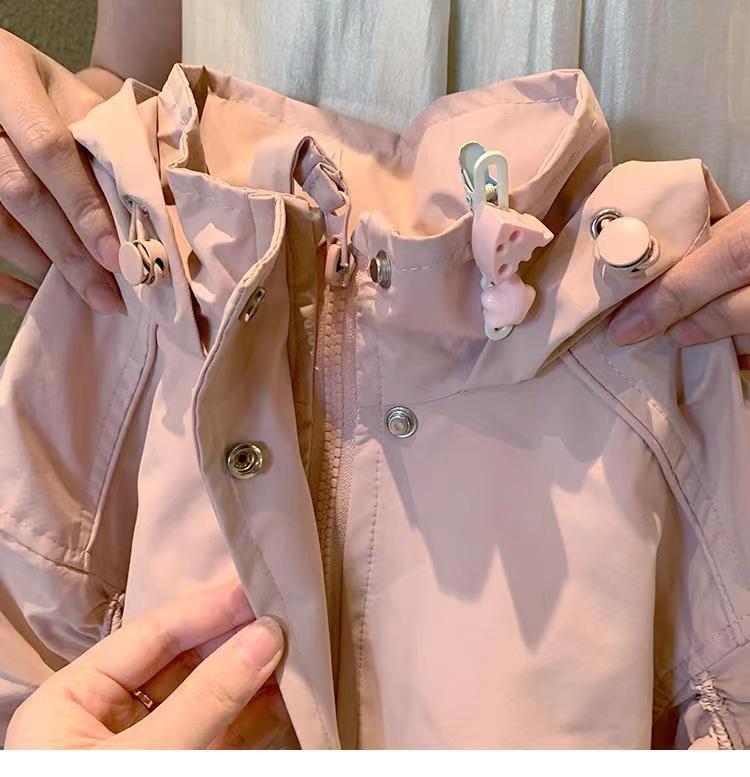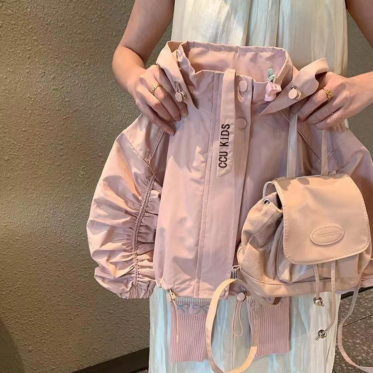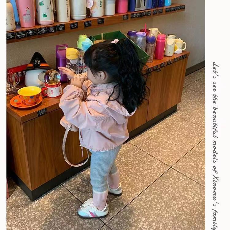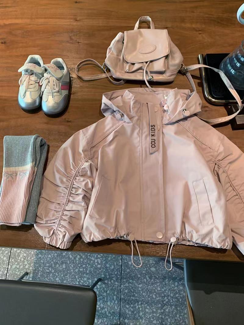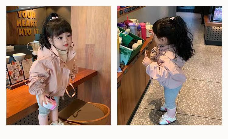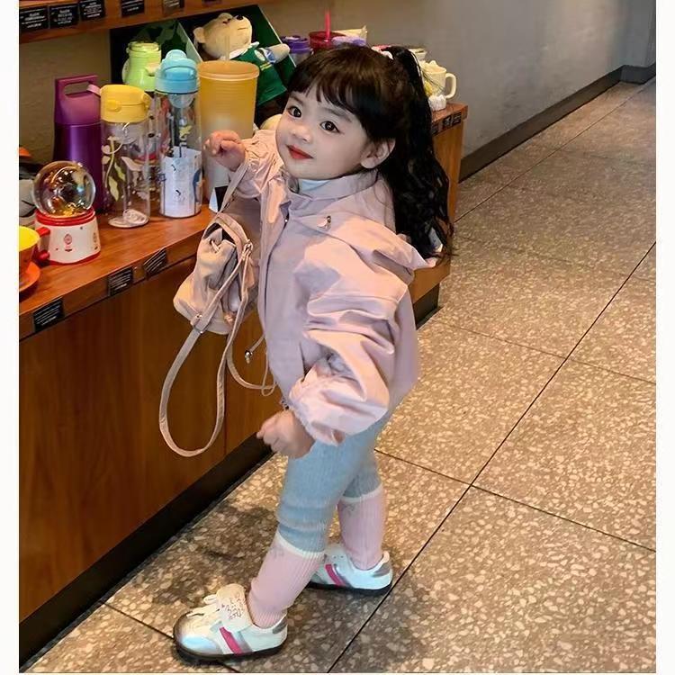 소녀 코트 2024 봄과 가을 새로운 세련된 재킷 유행 최고 어린이 방풍 방수 주름 러시 옷스토어 가기