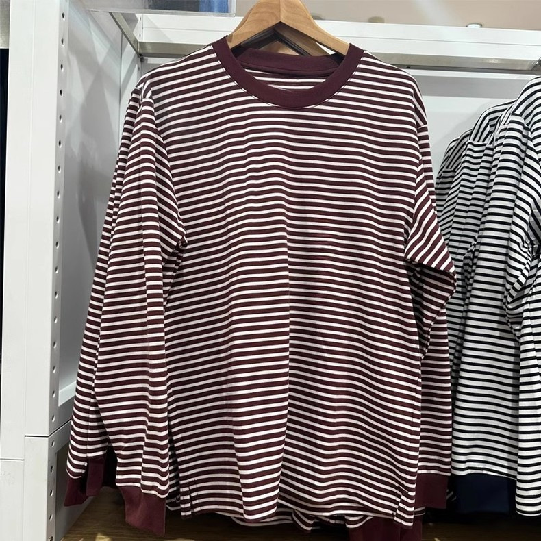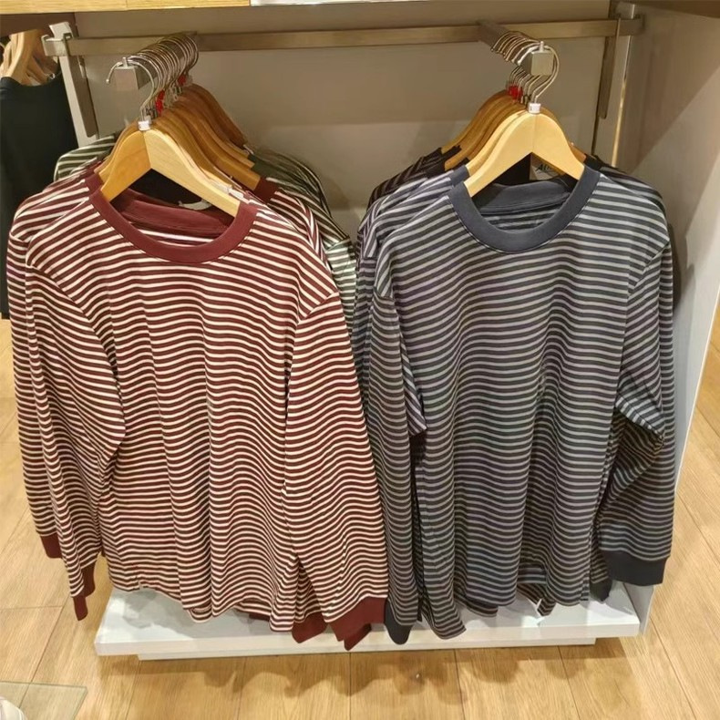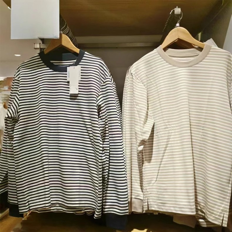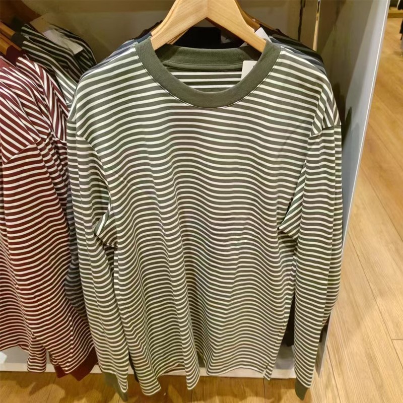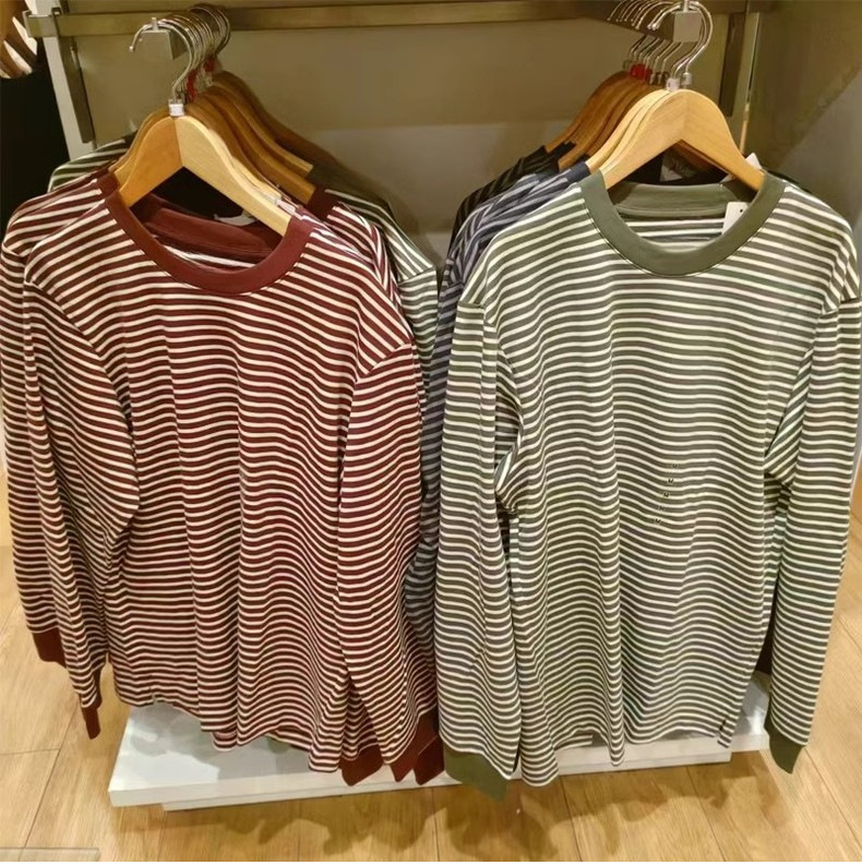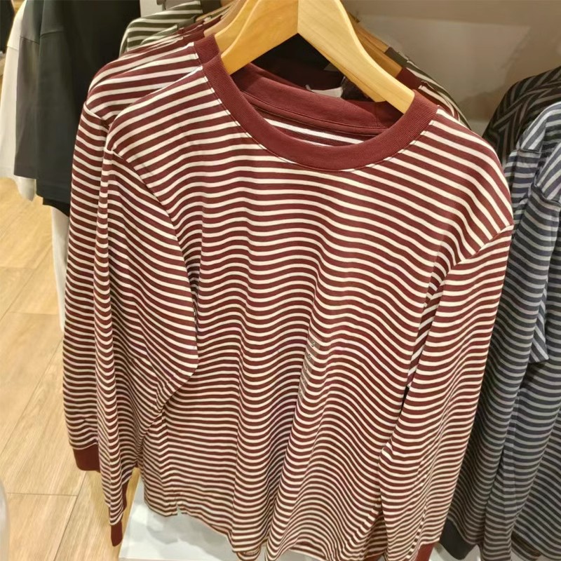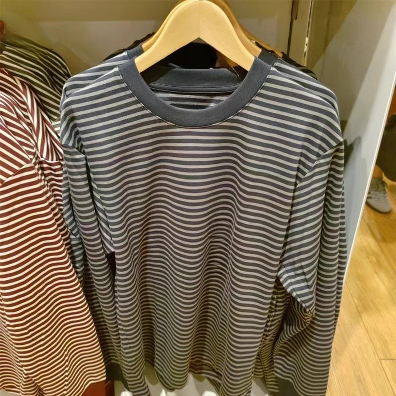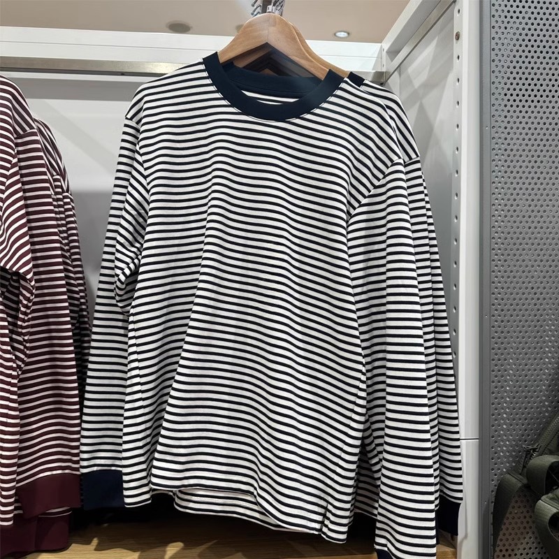 남자/여자 면화 둥근 목 줄무늬 티셔츠/느슨한 긴 소매 탑 2024 가을 및 겨울 새로운 SY476117스토어 가기