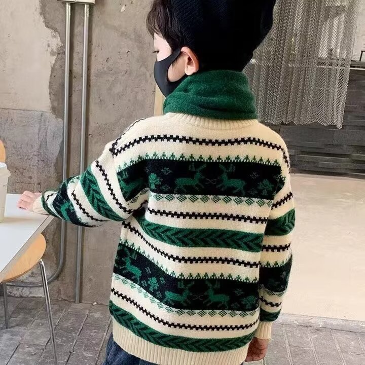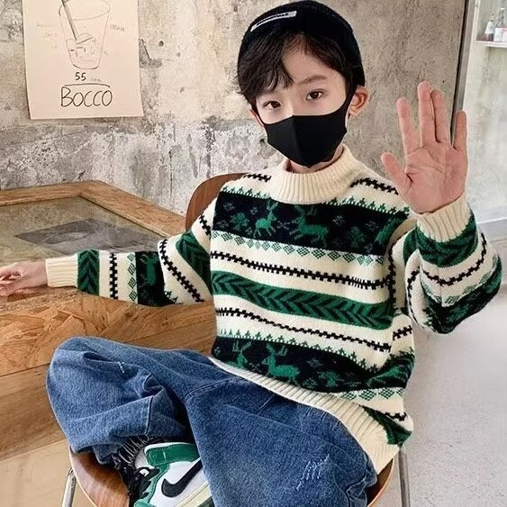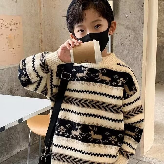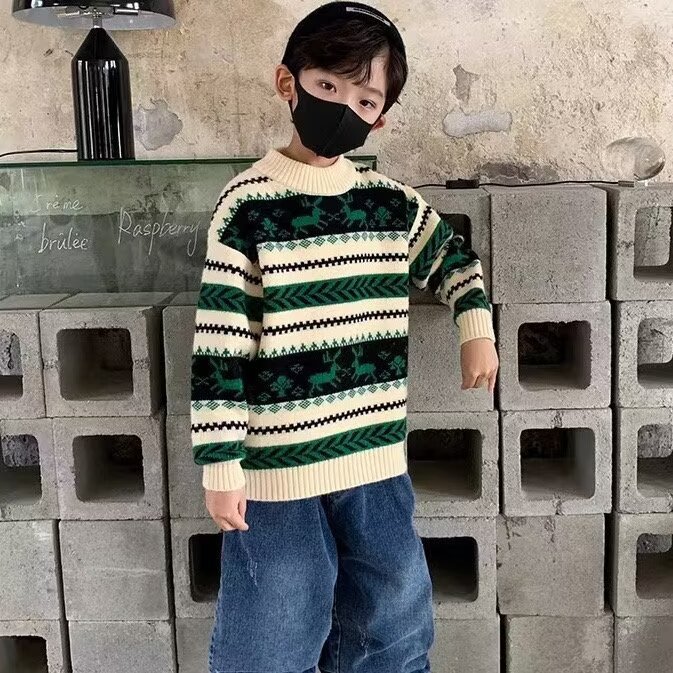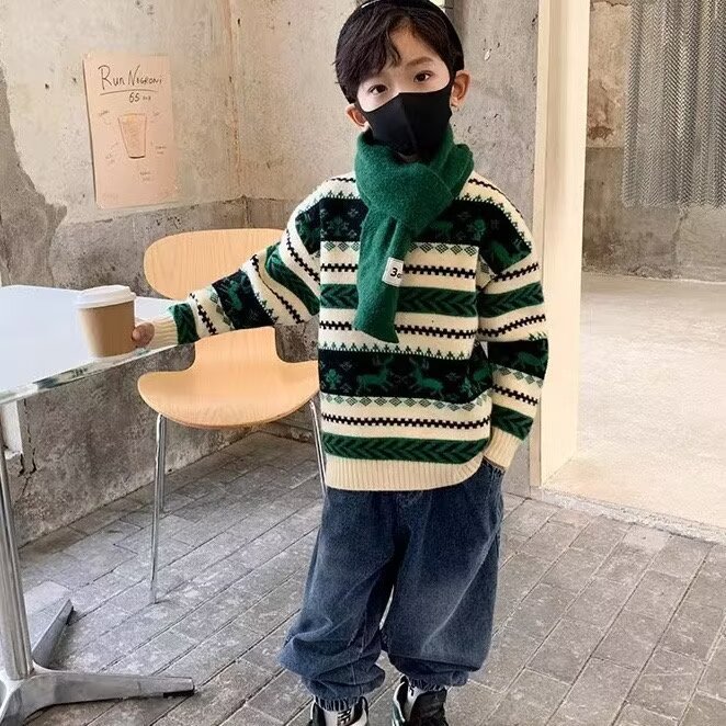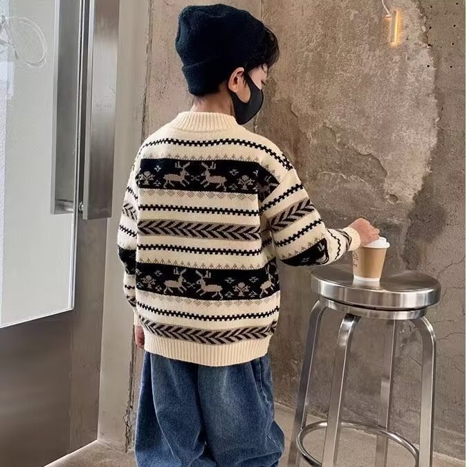아동복 남아 가을 스웨터 2025 신상 가을 겨울 남아용 두꺼운 봄 가을 스웨터 스트라이프 가볍고 트렌디한 디자인스토어 가기