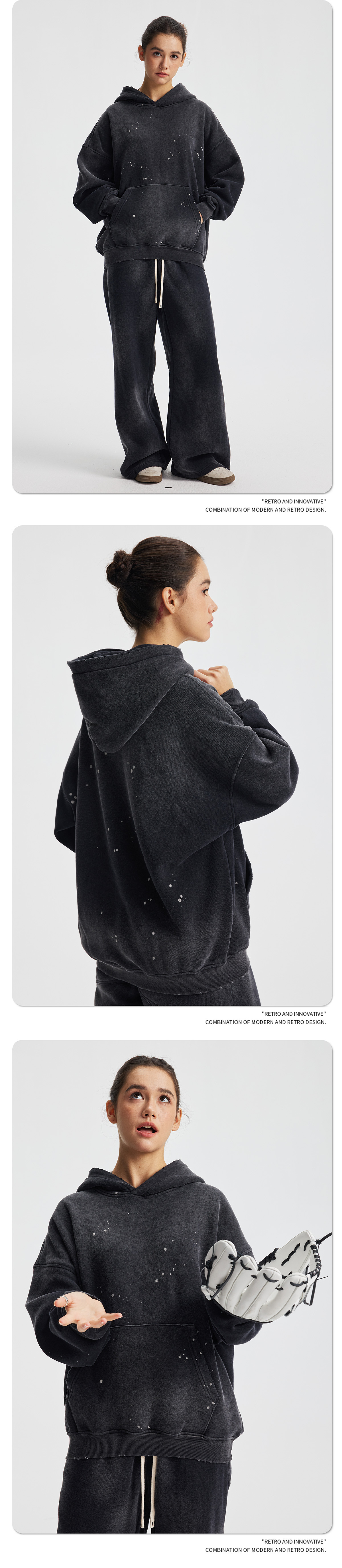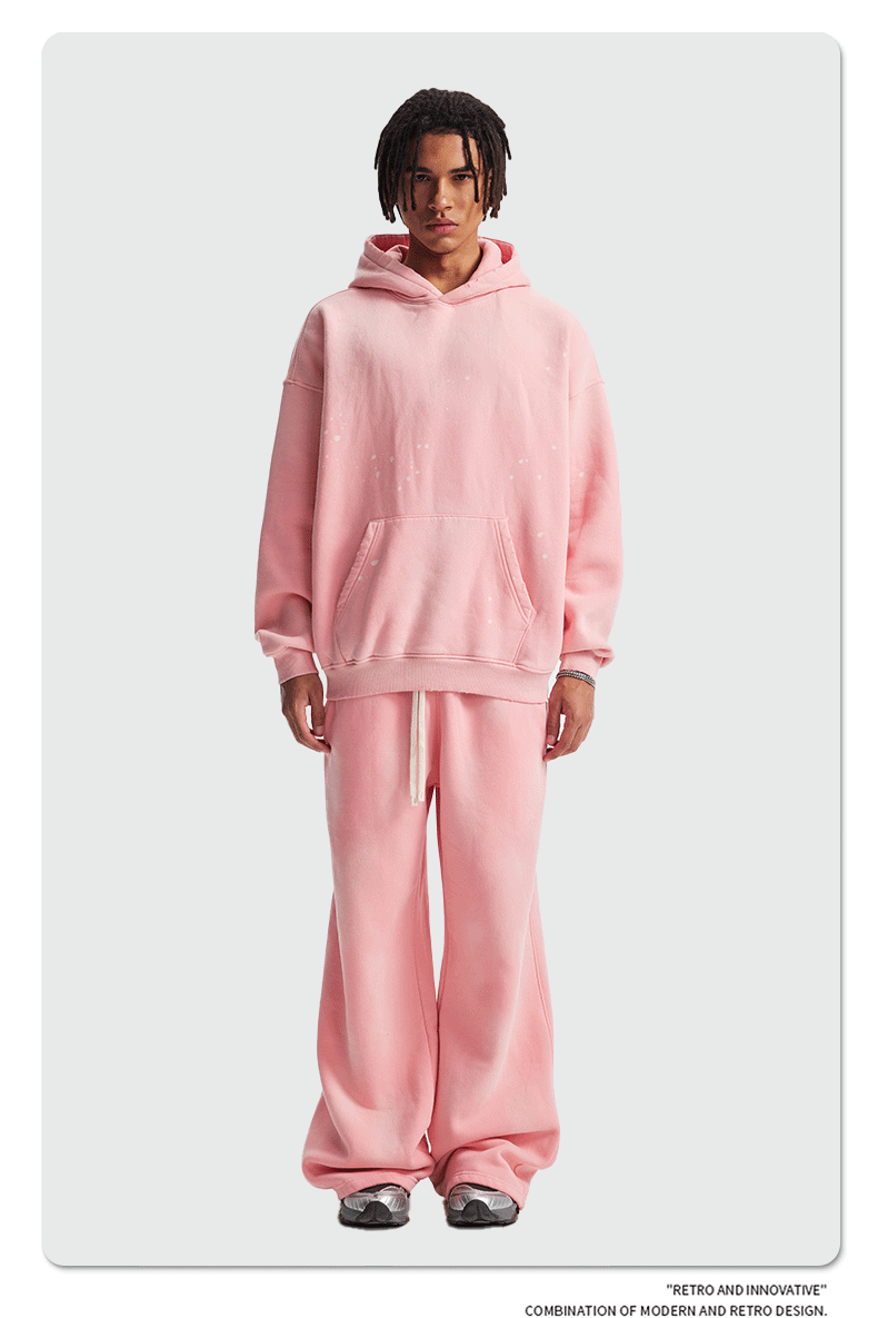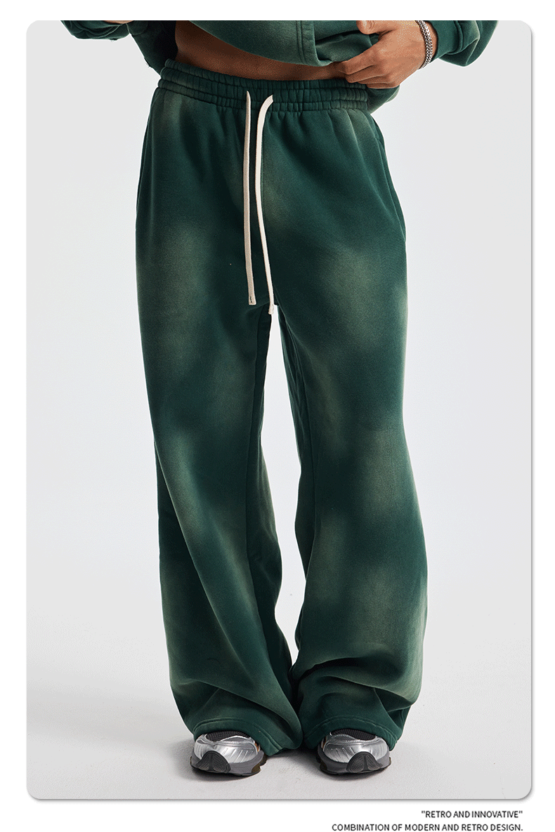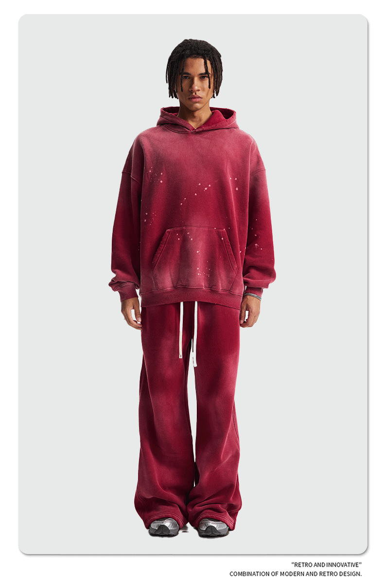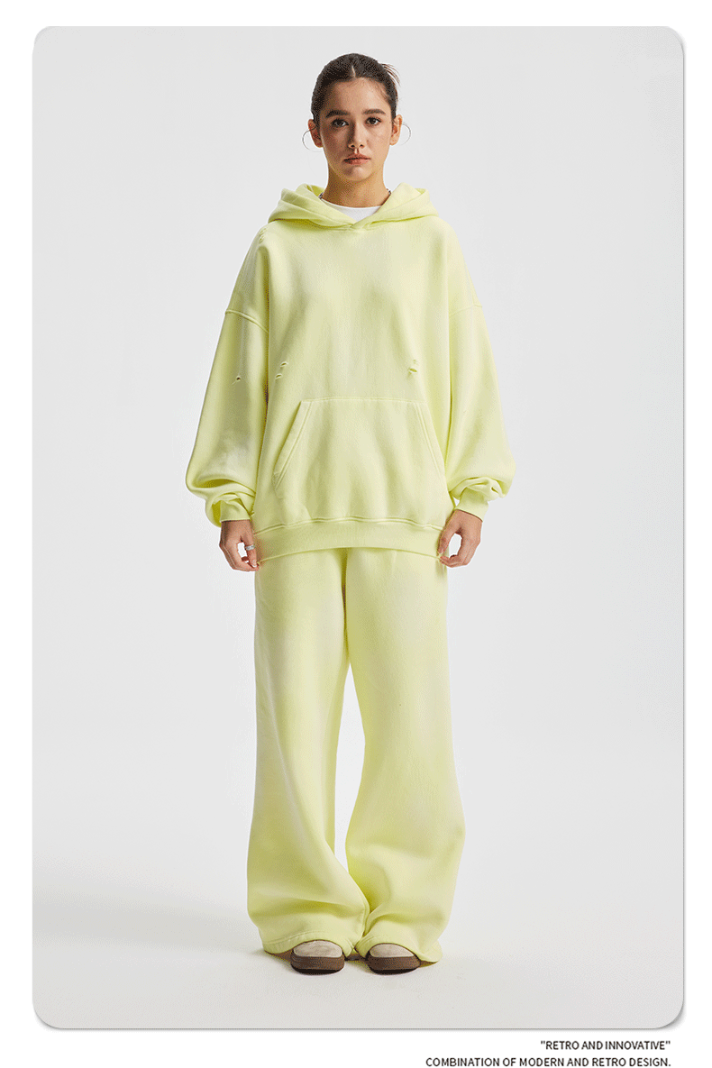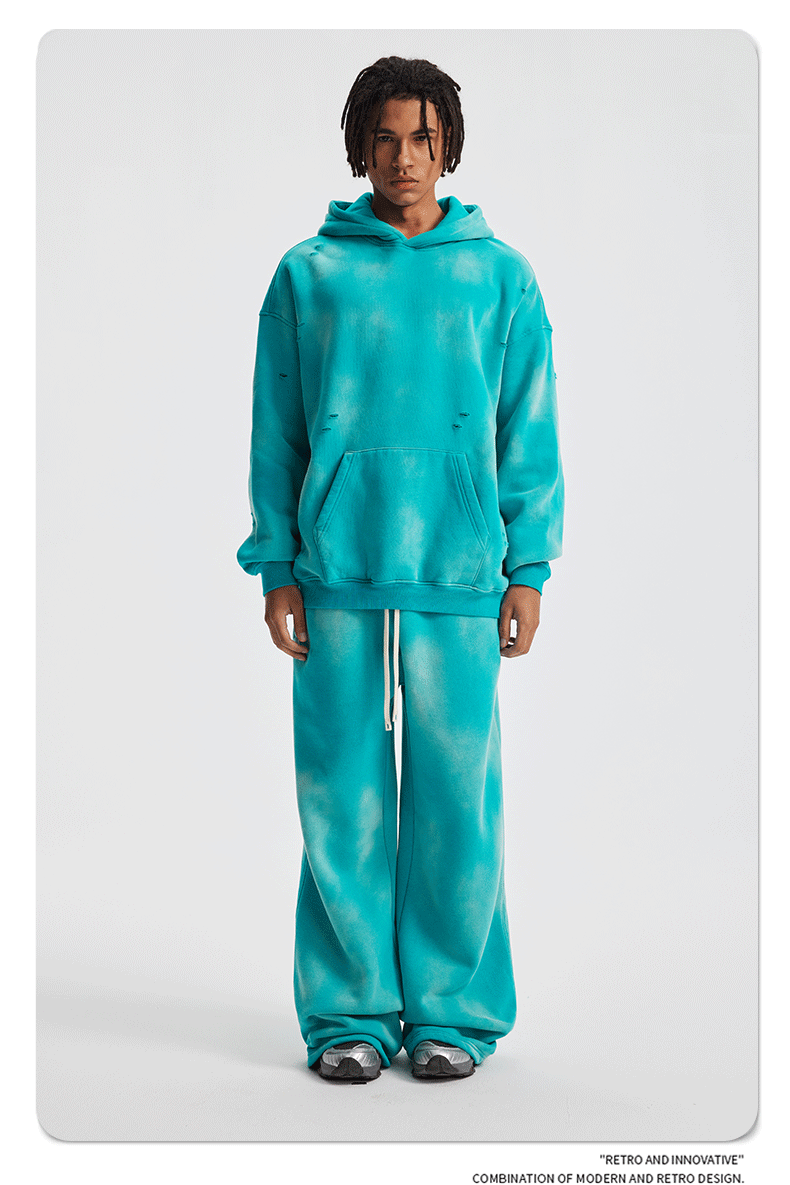 2026 가을 겨울 신상품 스프레이 워싱, 빈티지 스타일, 데미지, 컷팅 디테일, 기모 안감 스웨트셔츠와 스웨트팬츠 세트, 해외 공급원산지스토어 가기