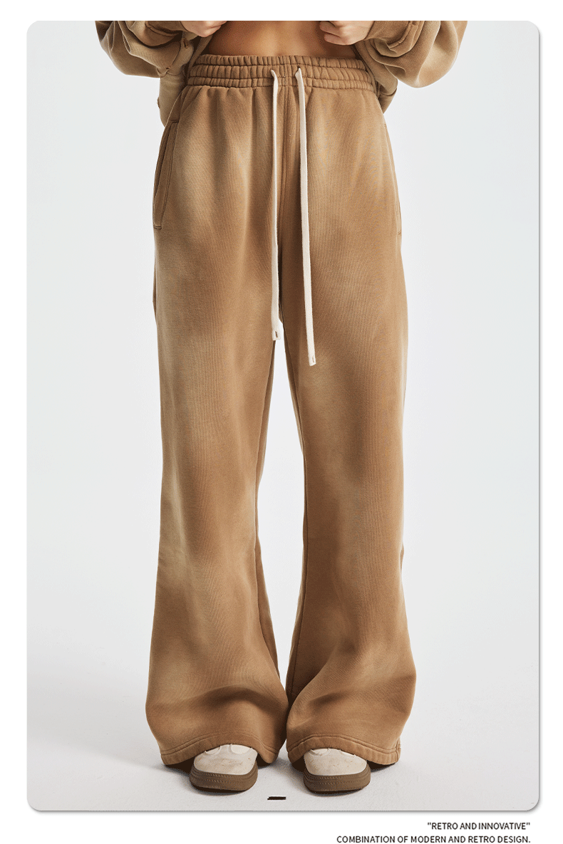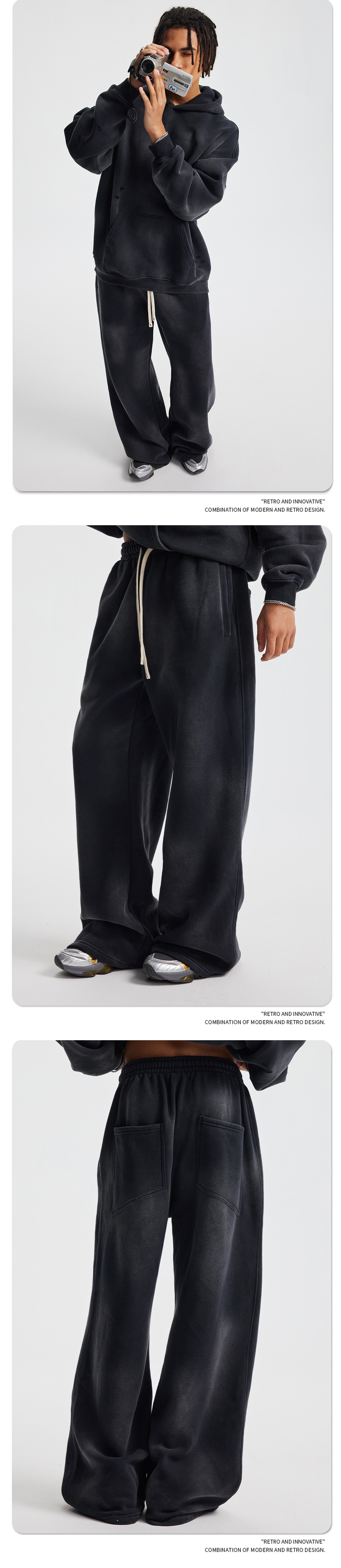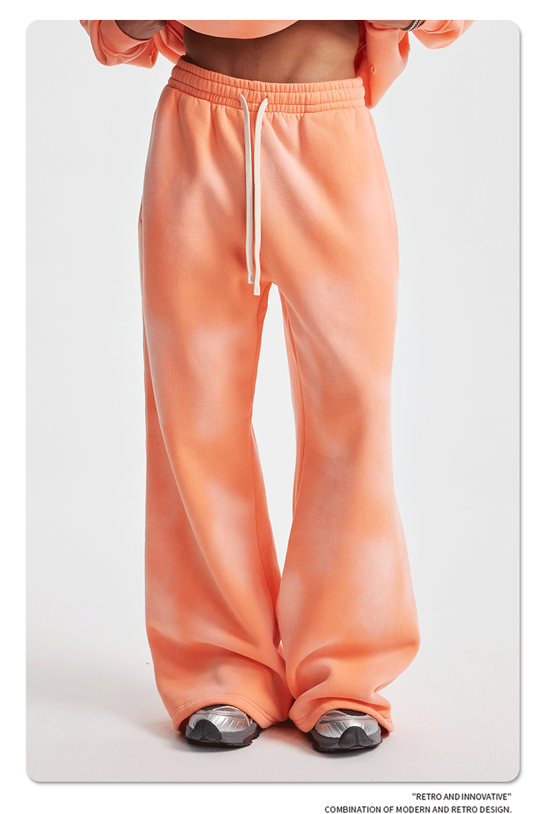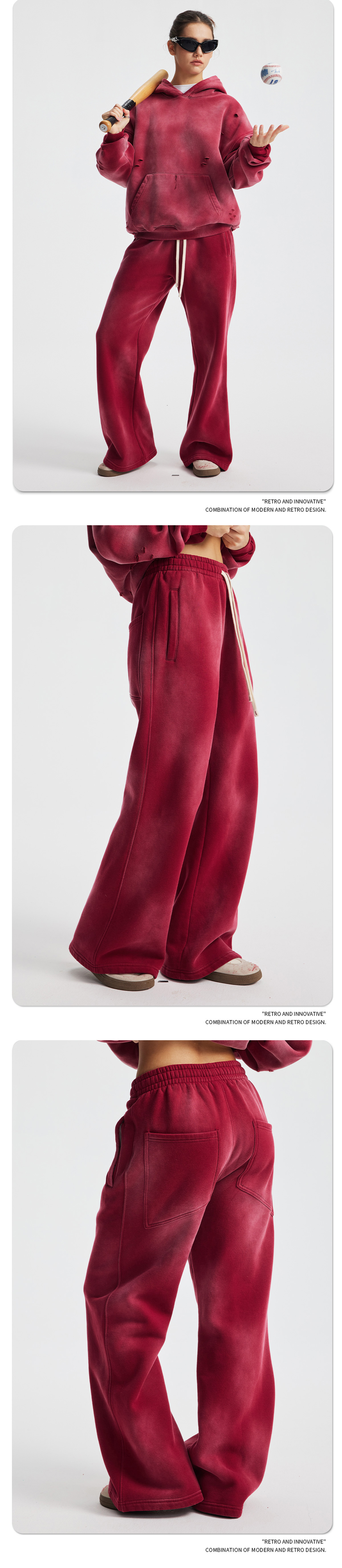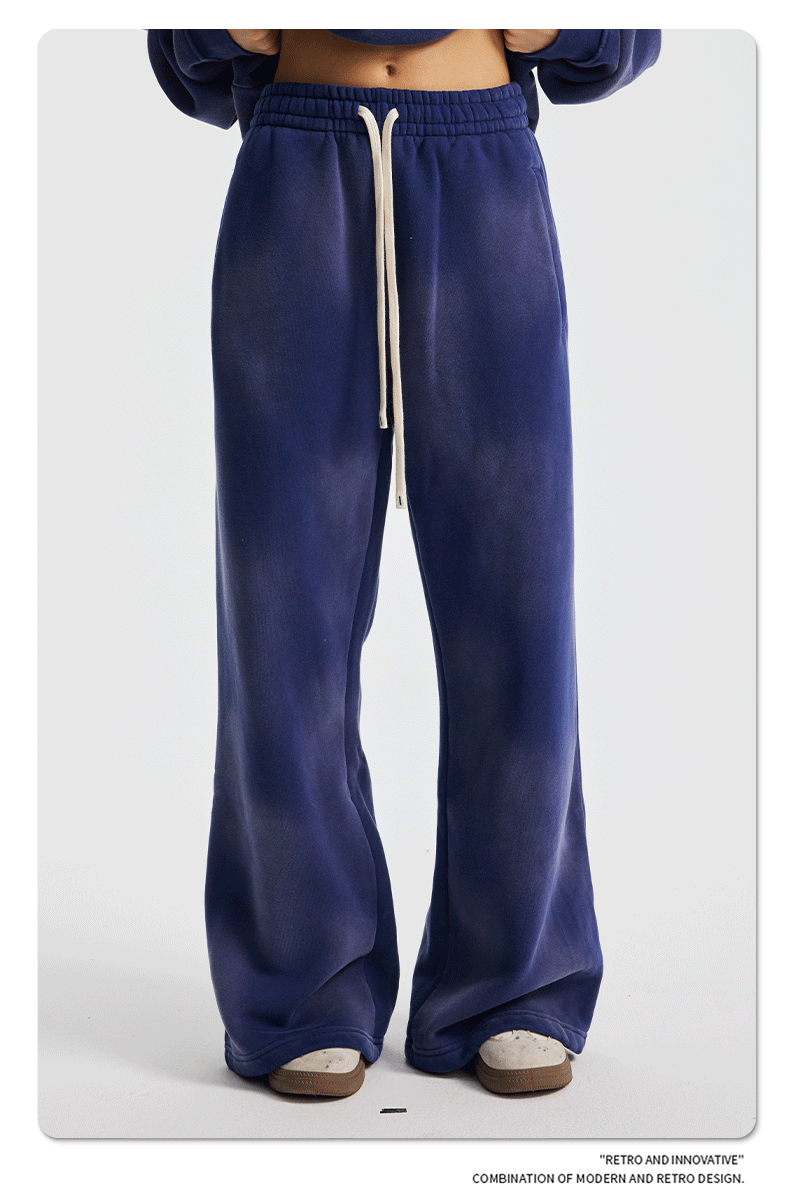 2026 가을 겨울 신상품 스프레이 워싱, 빈티지 스타일, 데미지, 컷팅 디테일, 기모 안감 스웨트셔츠와 스웨트팬츠 세트, 해외 공급원산지스토어 가기