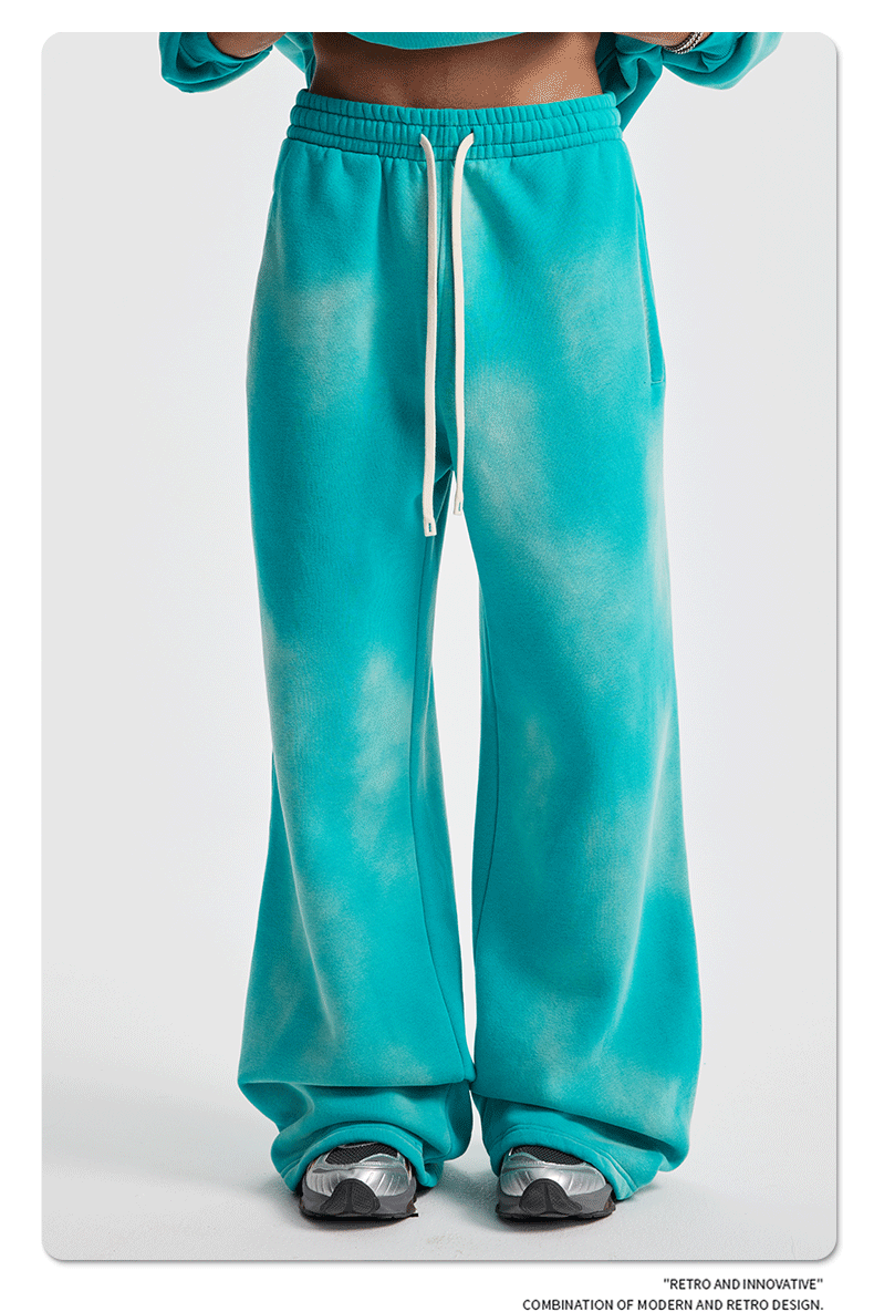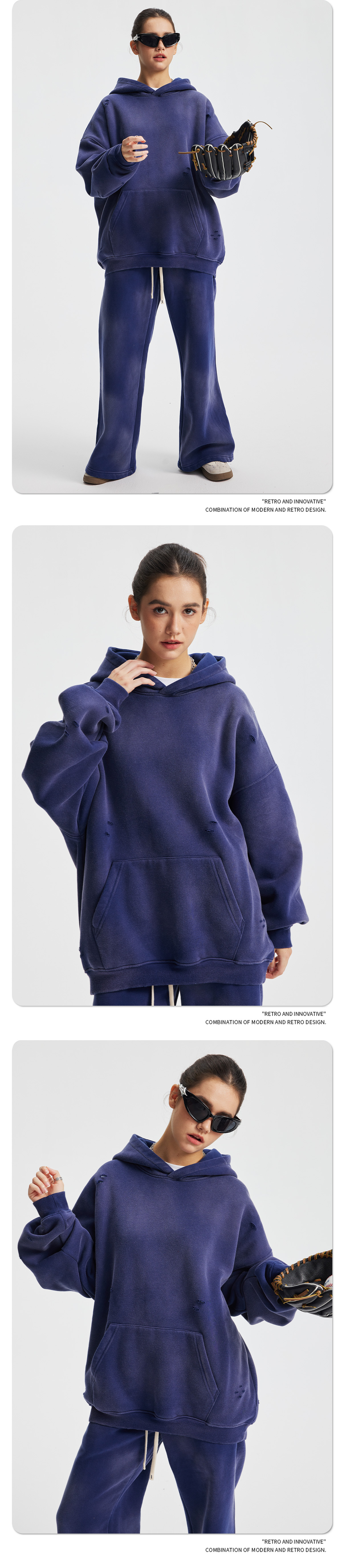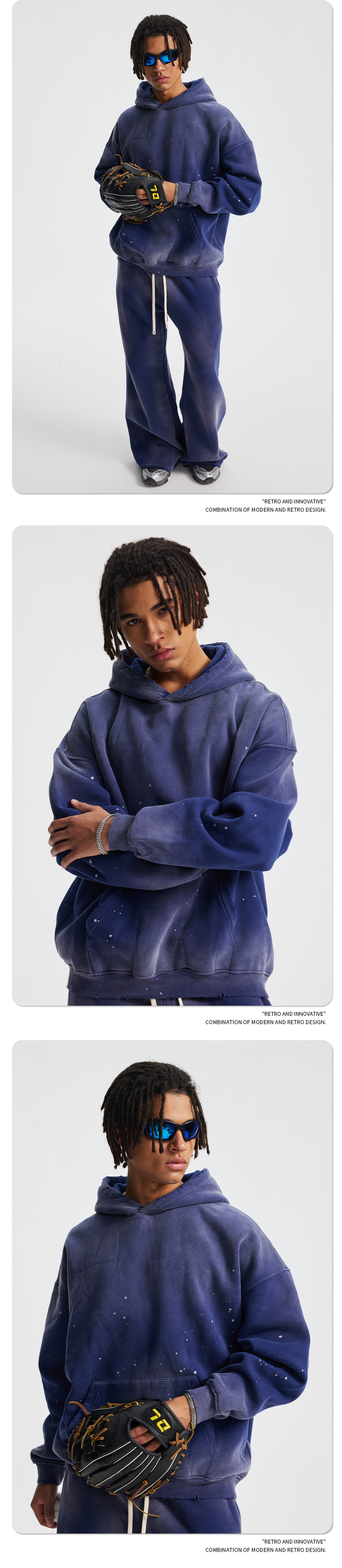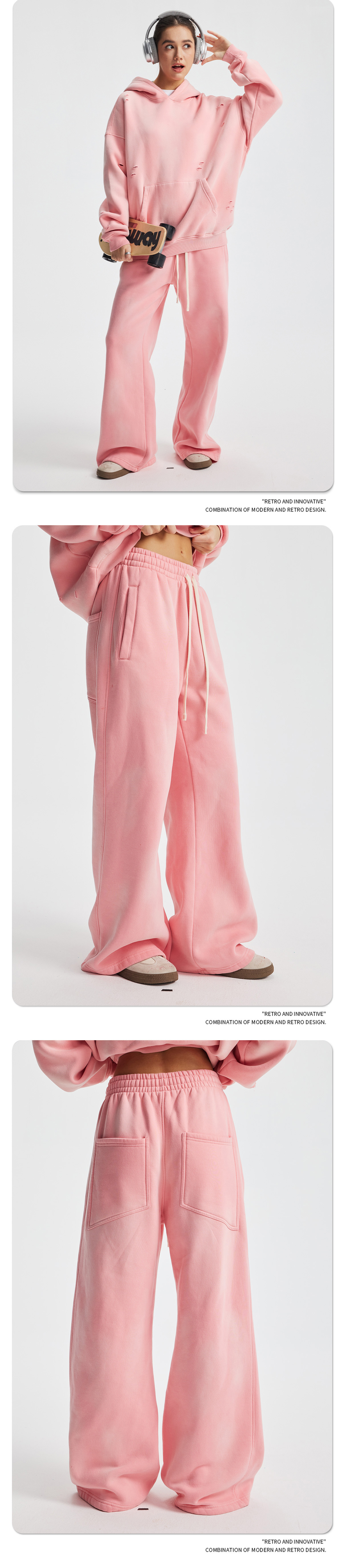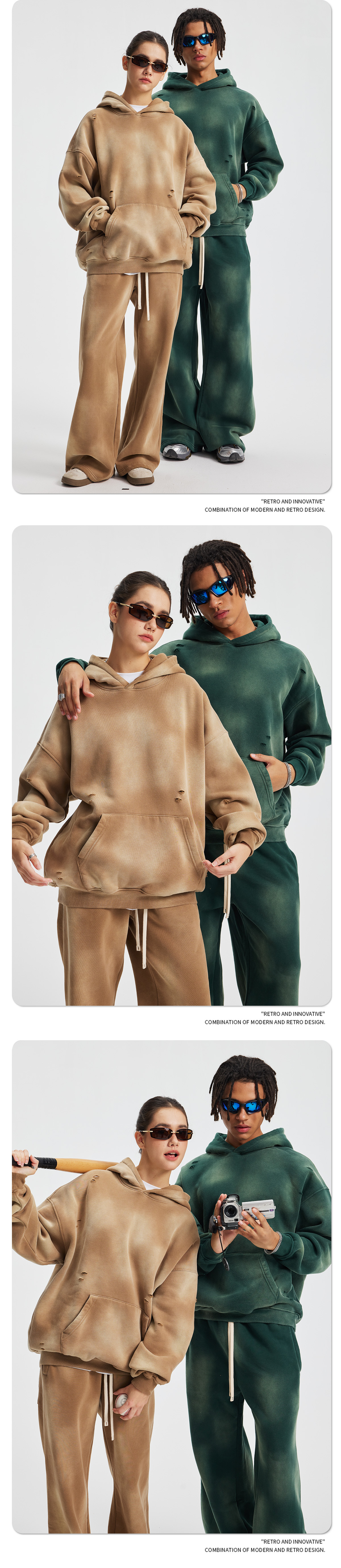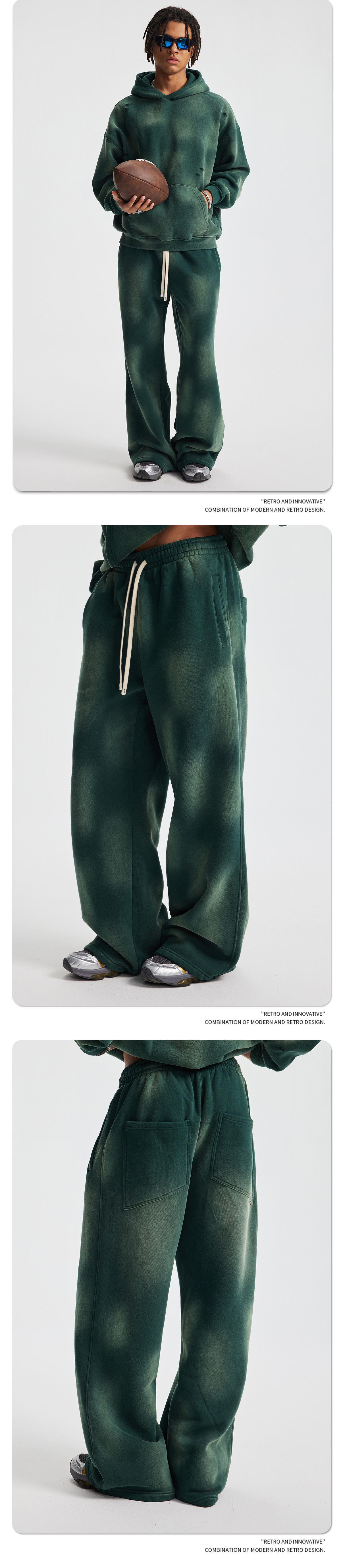 2026 가을 겨울 신상품 스프레이 워싱, 빈티지 스타일, 데미지, 컷팅 디테일, 기모 안감 스웨트셔츠와 스웨트팬츠 세트, 해외 공급원산지스토어 가기