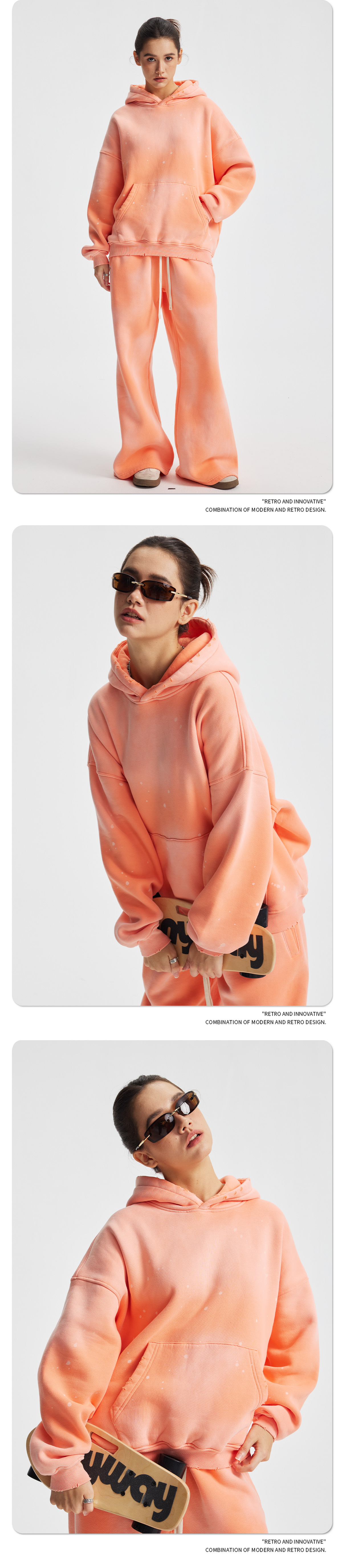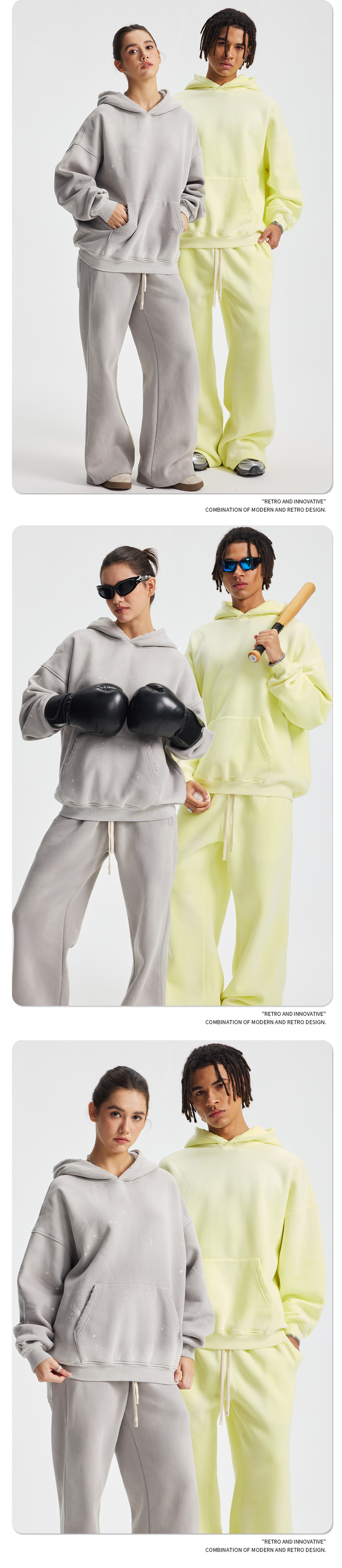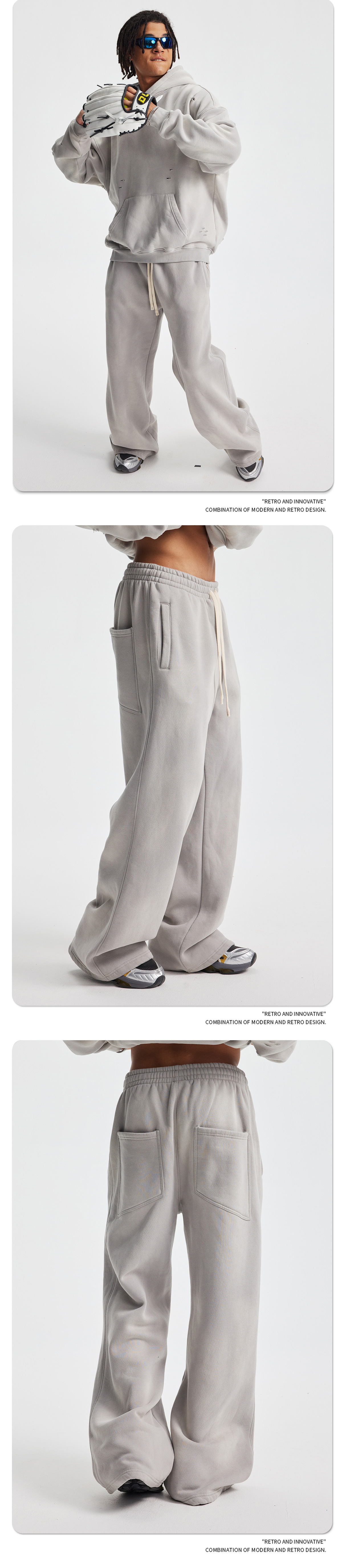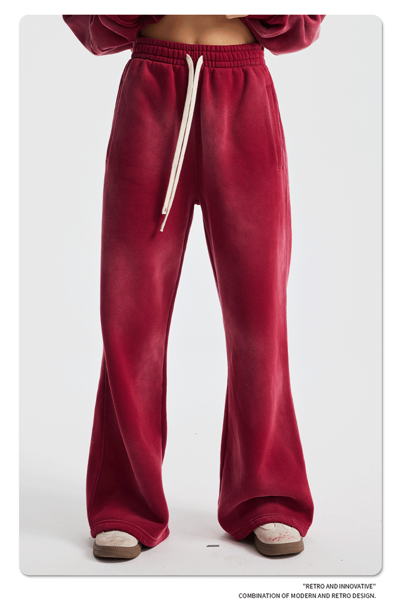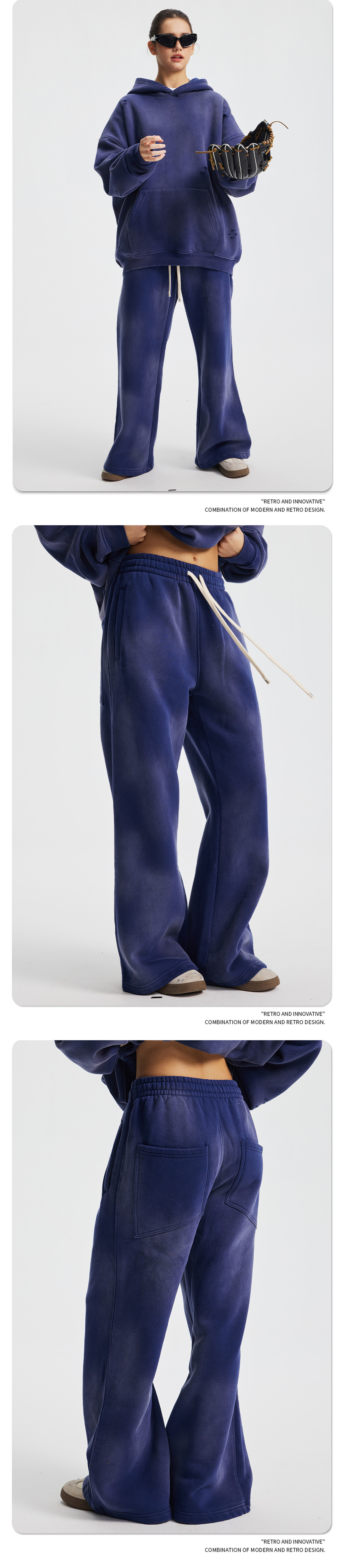 2026 가을 겨울 신상품 스프레이 워싱, 빈티지 스타일, 데미지, 컷팅 디테일, 기모 안감 스웨트셔츠와 스웨트팬츠 세트, 해외 공급원산지스토어 가기
