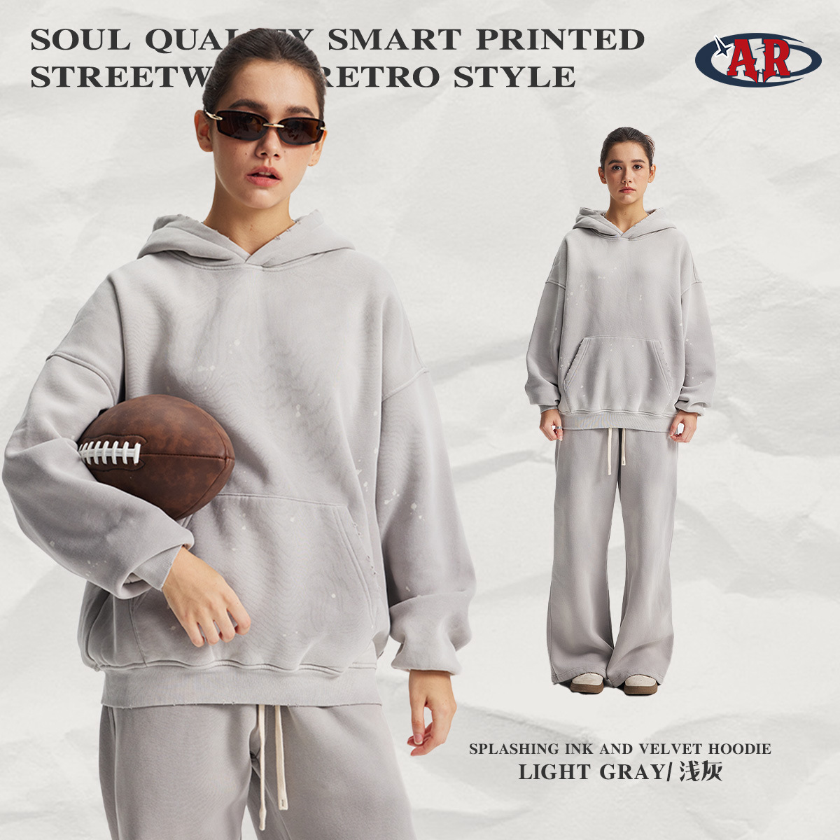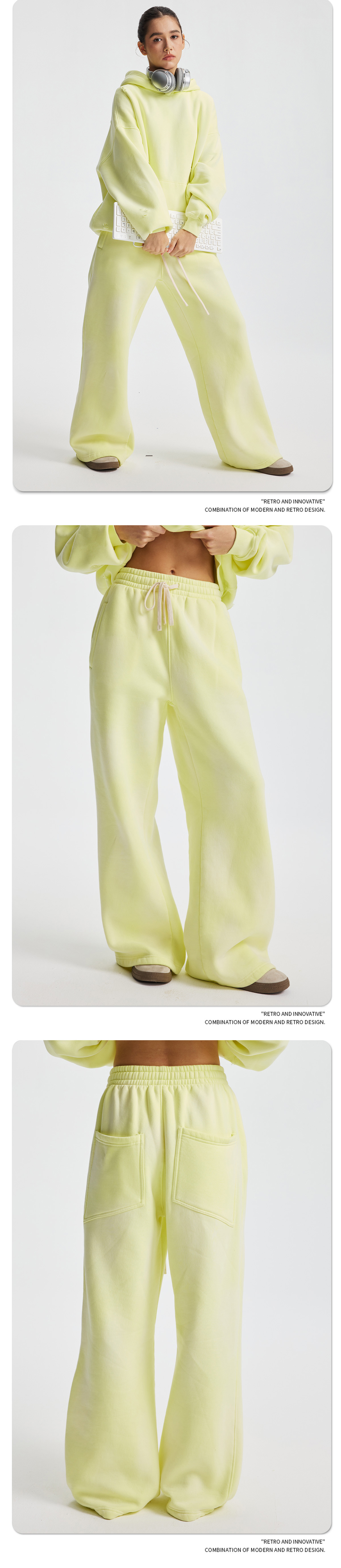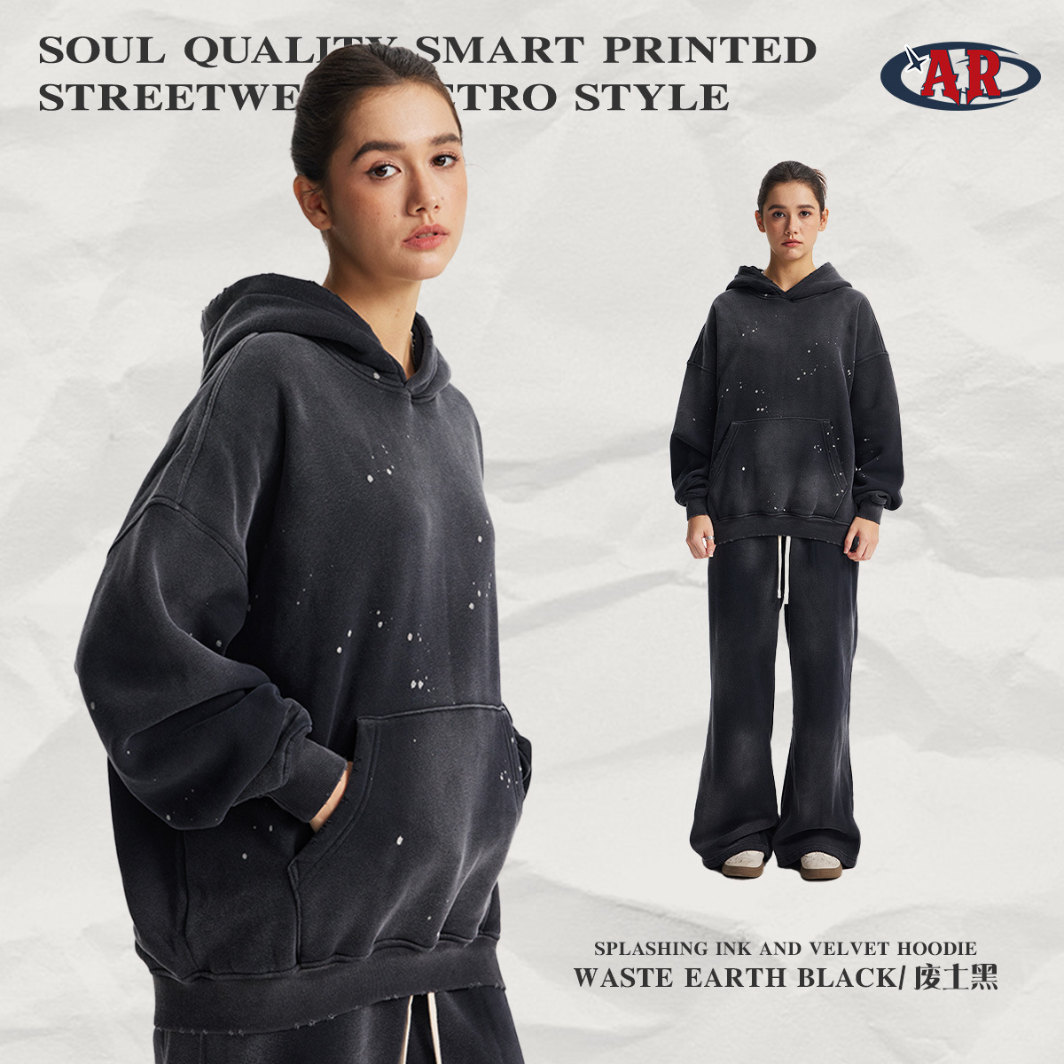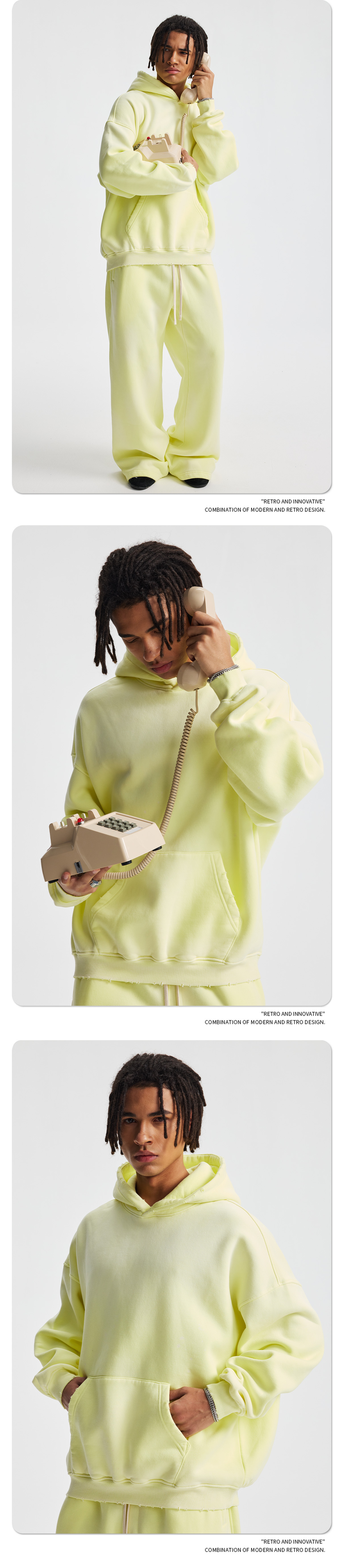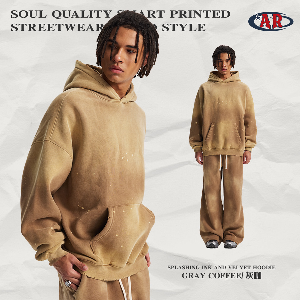 2026 가을 겨울 신상품 스프레이 워싱, 빈티지 스타일, 데미지, 컷팅 디테일, 기모 안감 스웨트셔츠와 스웨트팬츠 세트, 해외 공급원산지스토어 가기