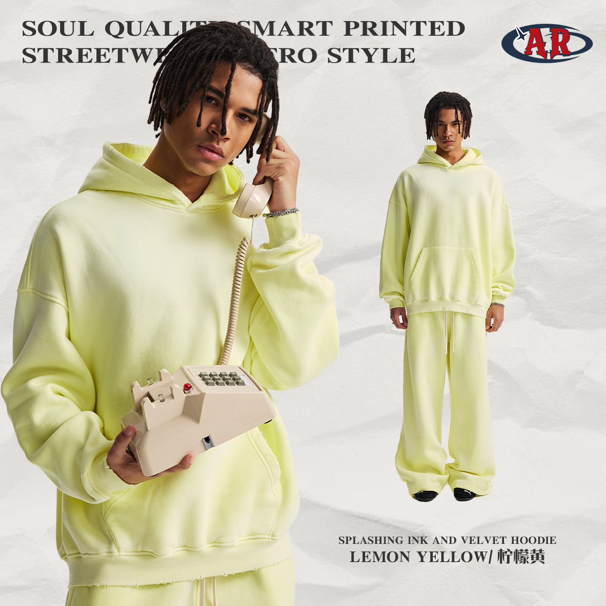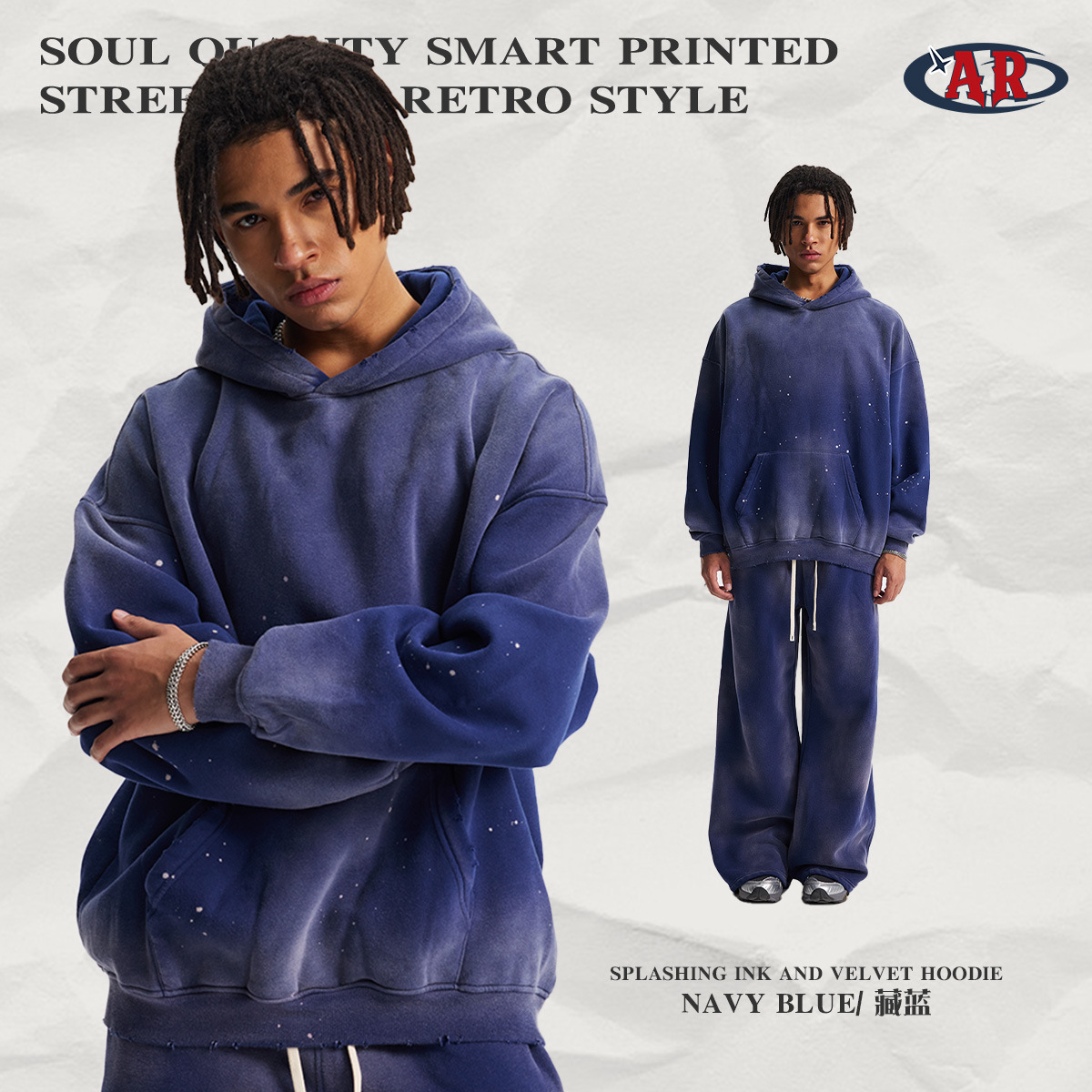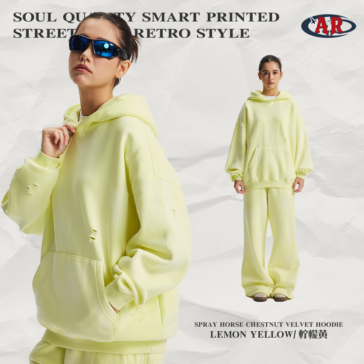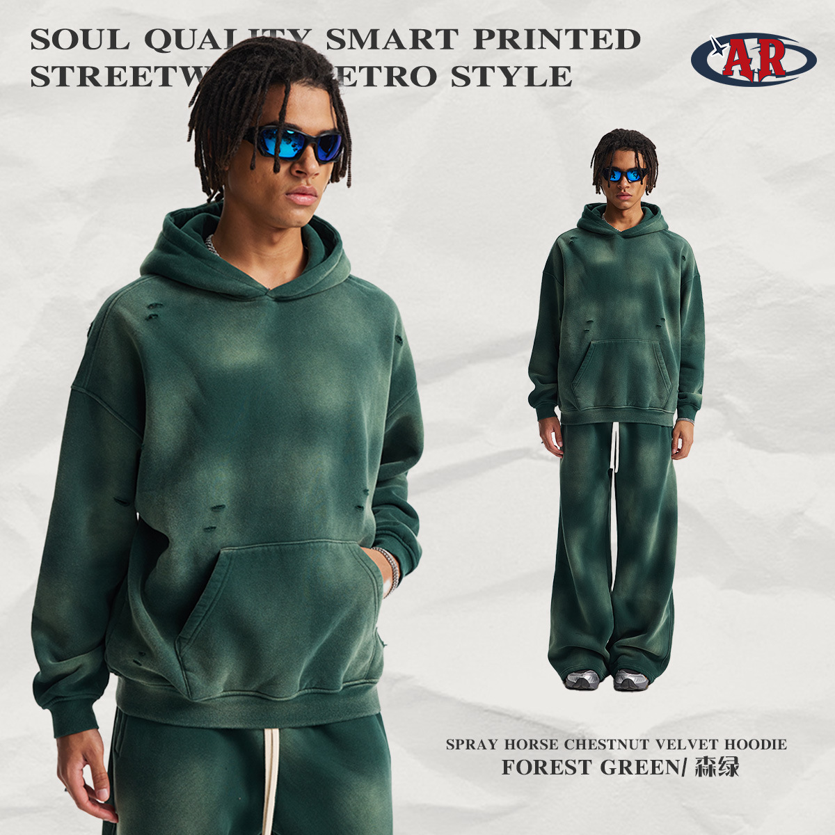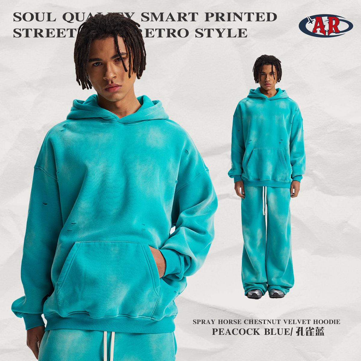 2026 가을 겨울 신상품 스프레이 워싱, 빈티지 스타일, 데미지, 컷팅 디테일, 기모 안감 스웨트셔츠와 스웨트팬츠 세트, 해외 공급원산지스토어 가기