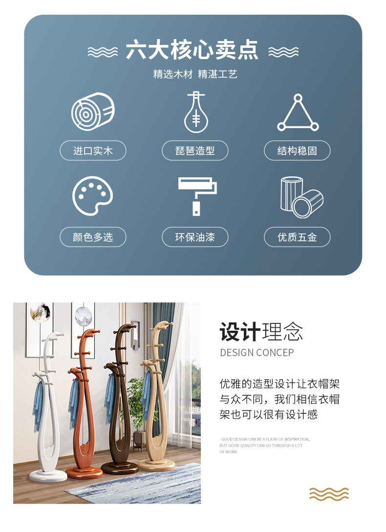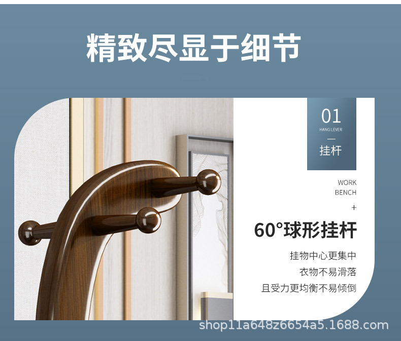 모든 단단한 나무 옷걸이 바닥 침실 간단한 새로운 중국 스타일 복고풍 아트 코트 랙 거실 보관 랙
