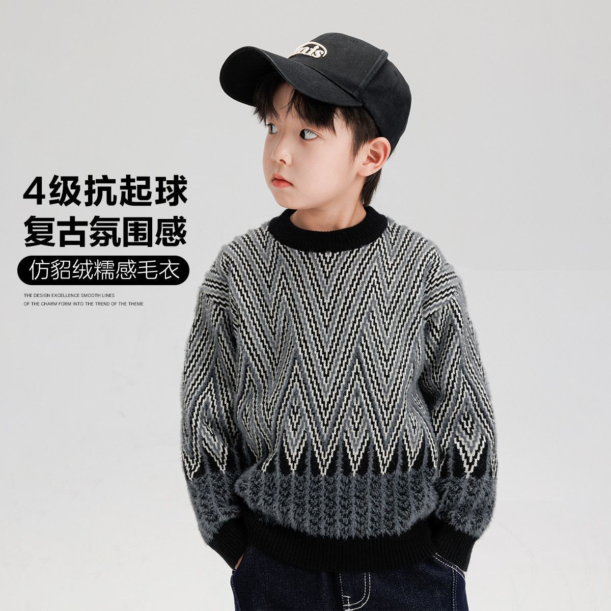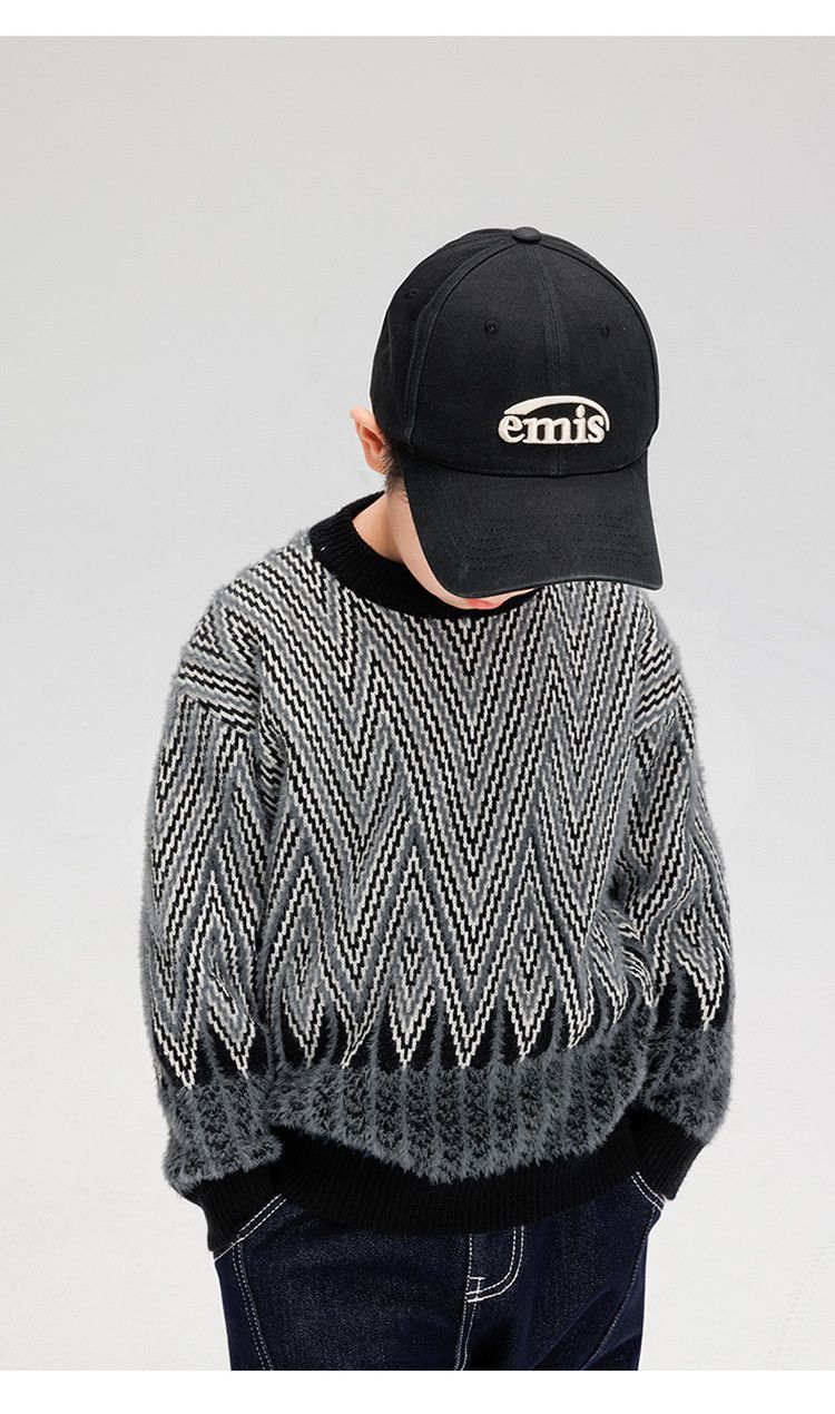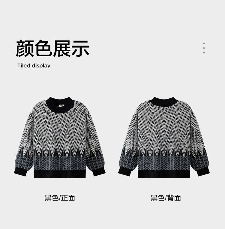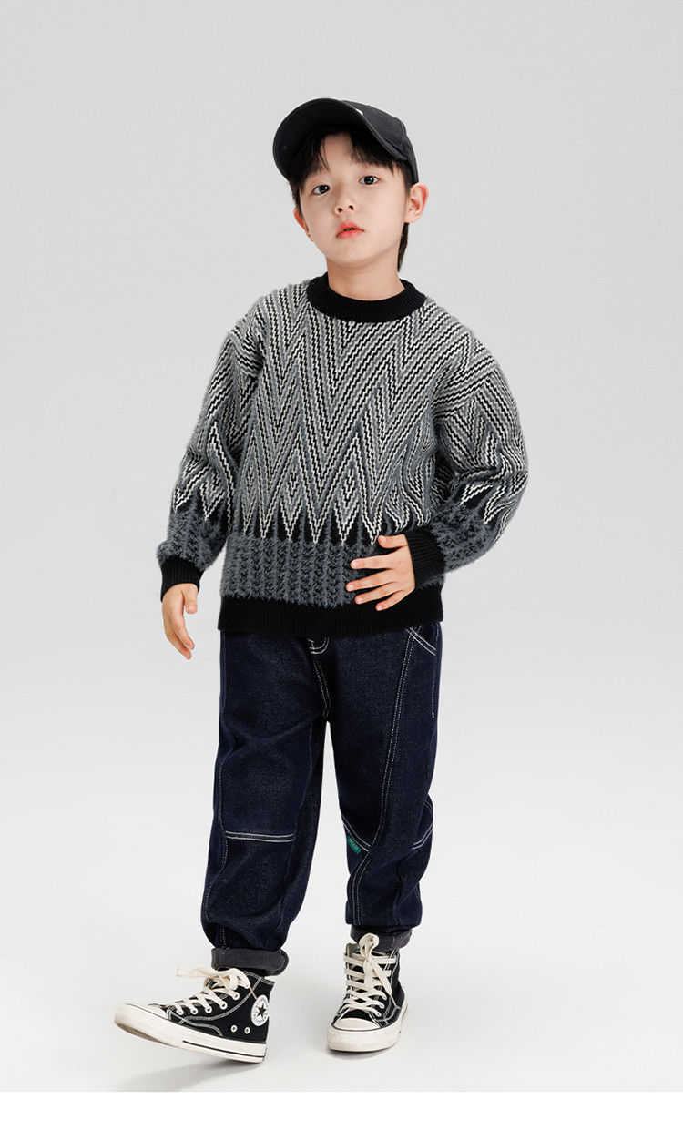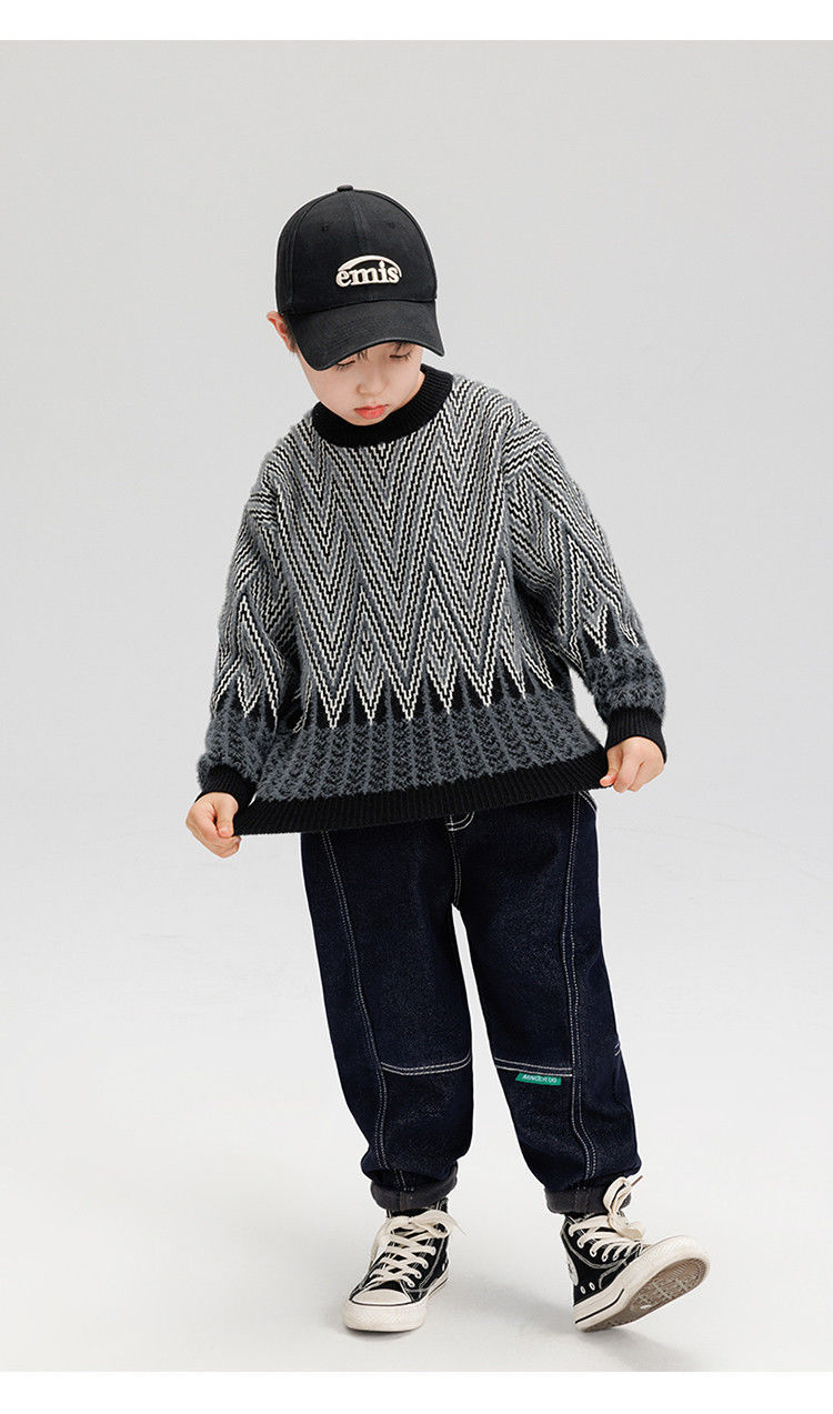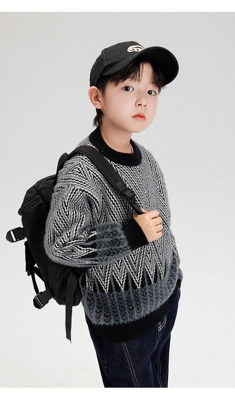 소년 스웨터 겨울 2024 새로운 어린이 복고풍 대비 컬러 북극 양털 골판지 자카드 탑 안티 필링 도매스토어 가기