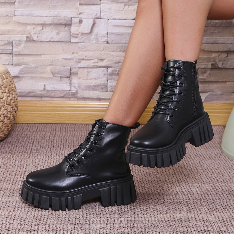 2024 가을과 겨울 새로운 플러스 사이즈 마틴 부츠 두꺼운 힐 두꺼운 바닥 짧은 부츠 사이드 지퍼 편안한 여성 부츠 대외 무역 패션 부츠