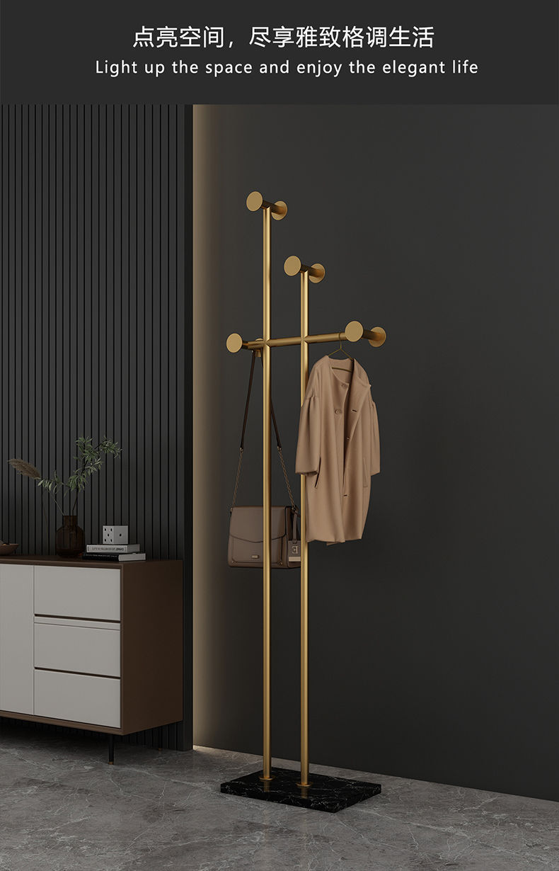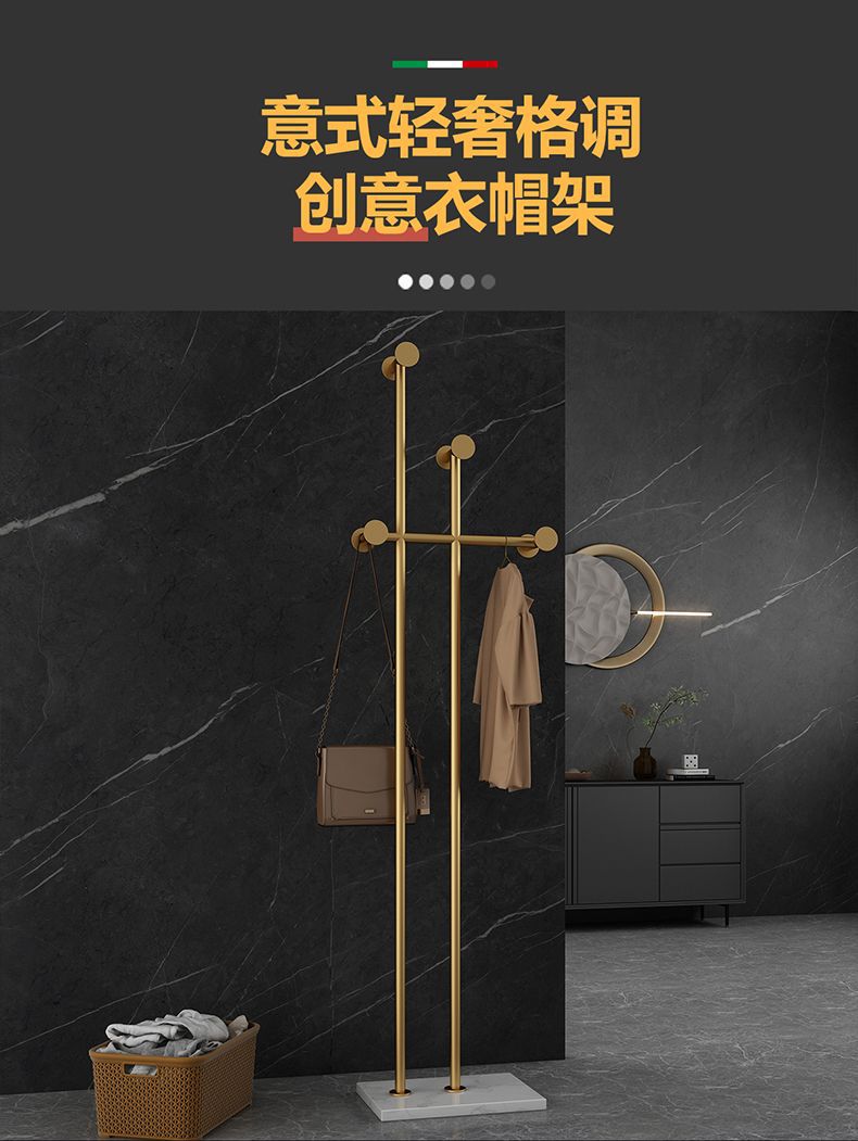 이탈리아 스타일의 가벼운 럭셔리 가정용 코트 랙 플로어 스탠딩 침실 고급 의류 옷걸이 거실 입구 마스터 침실 옷걸이스토어 가기