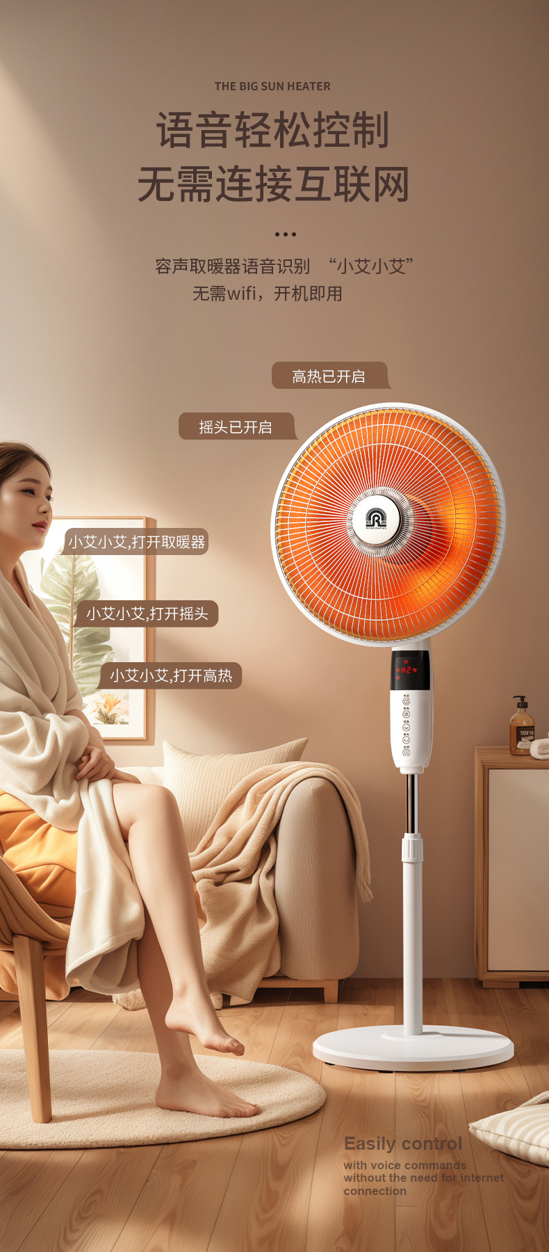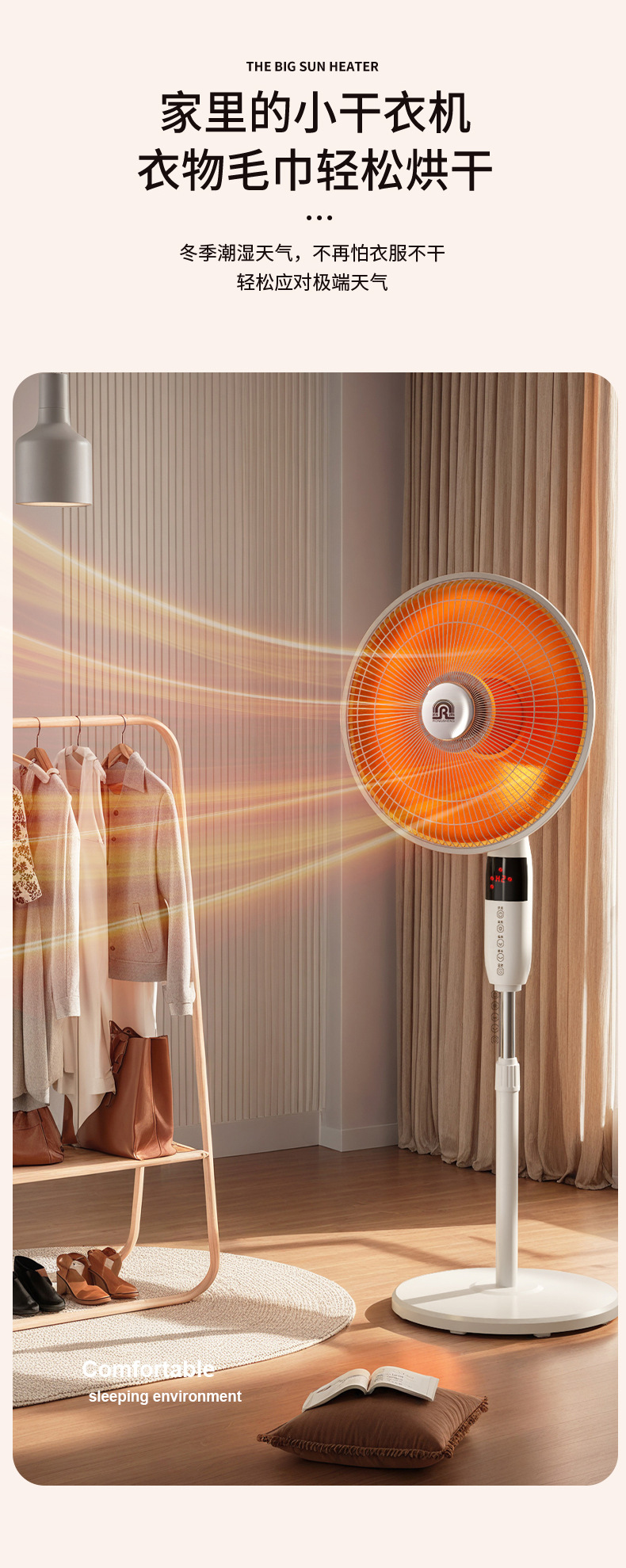 작은 태양 히터 가정용 큰 에너지 절약 절전 빠른 난방 전기 난방 팬 수직 전기 난방 팬 바닥 서스토어 가기