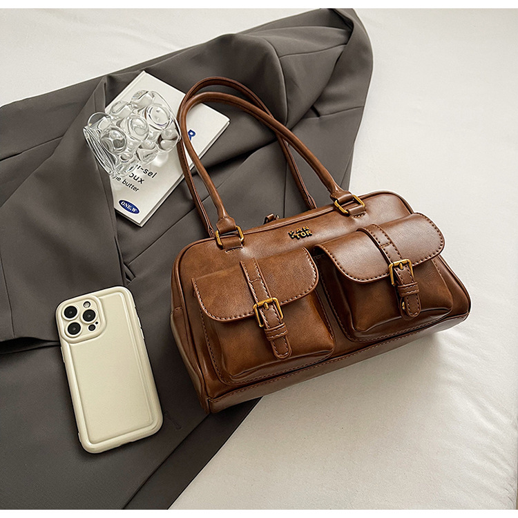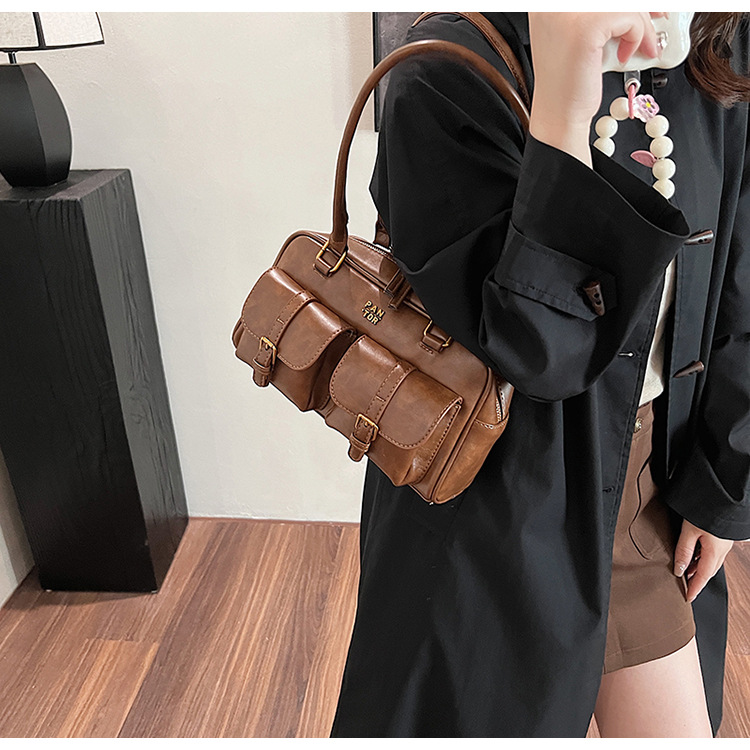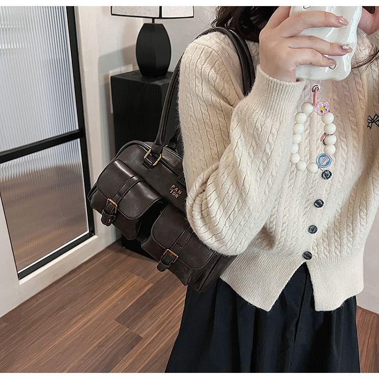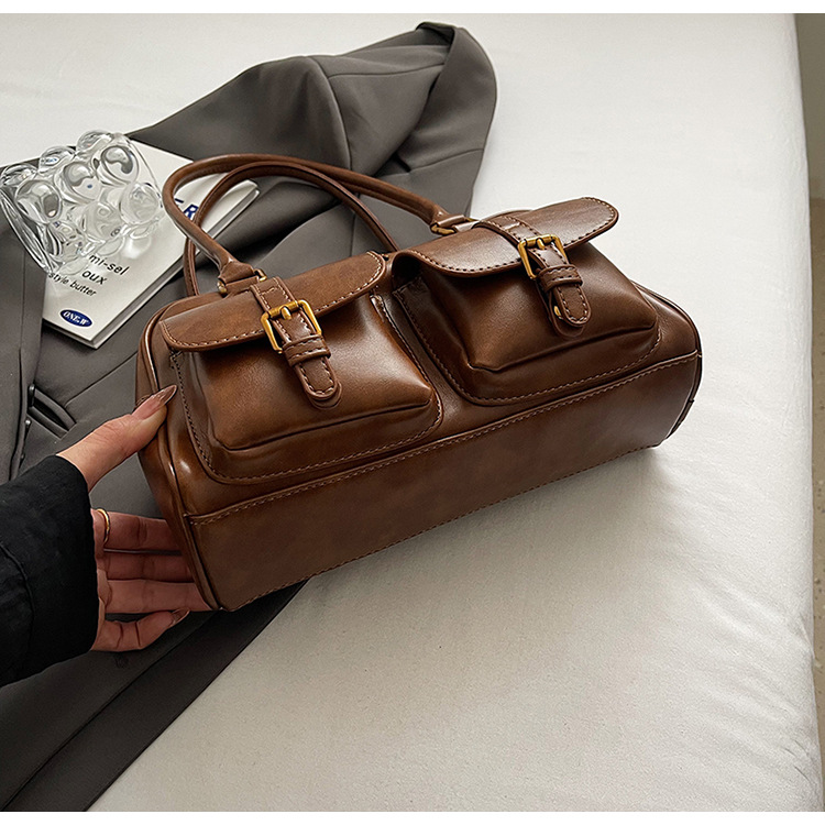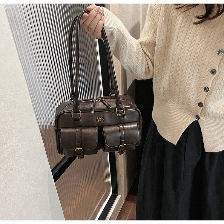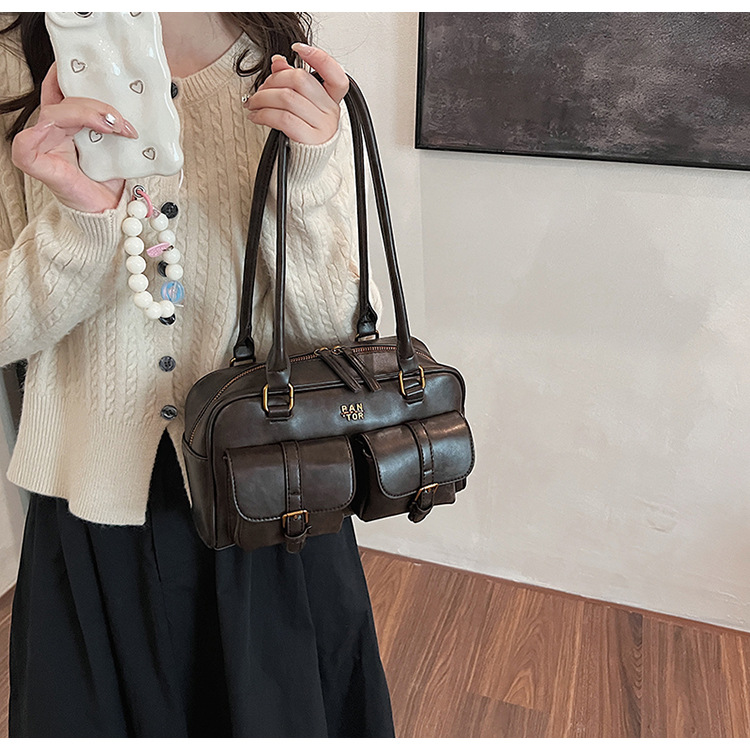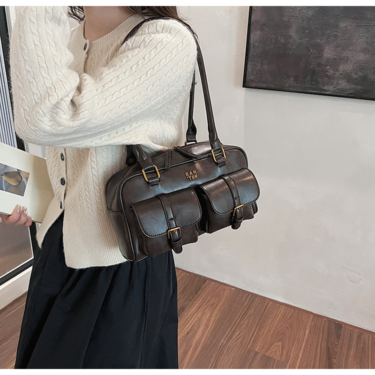 Maillard 다크 브라운 가방 여성의 2024 새로운 가을과 겨울 빈티지 보스턴 가방 통근 언더암 어깨 베개 가방