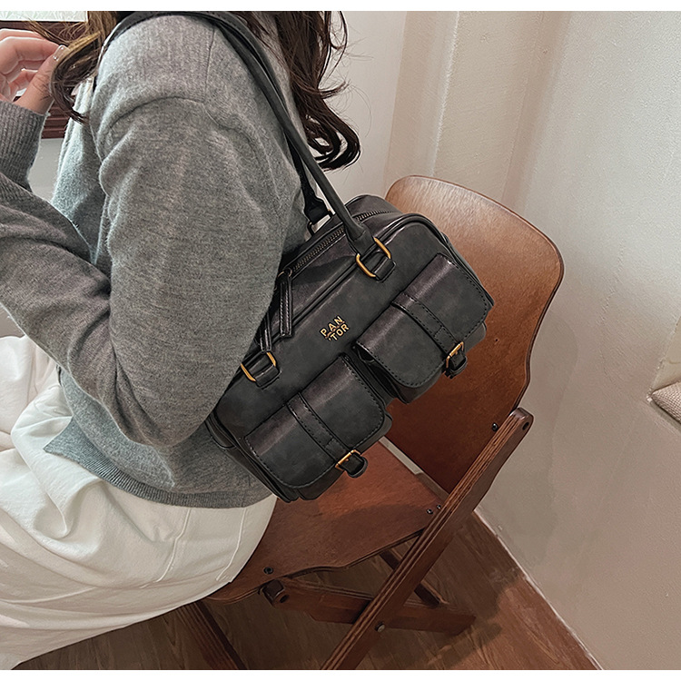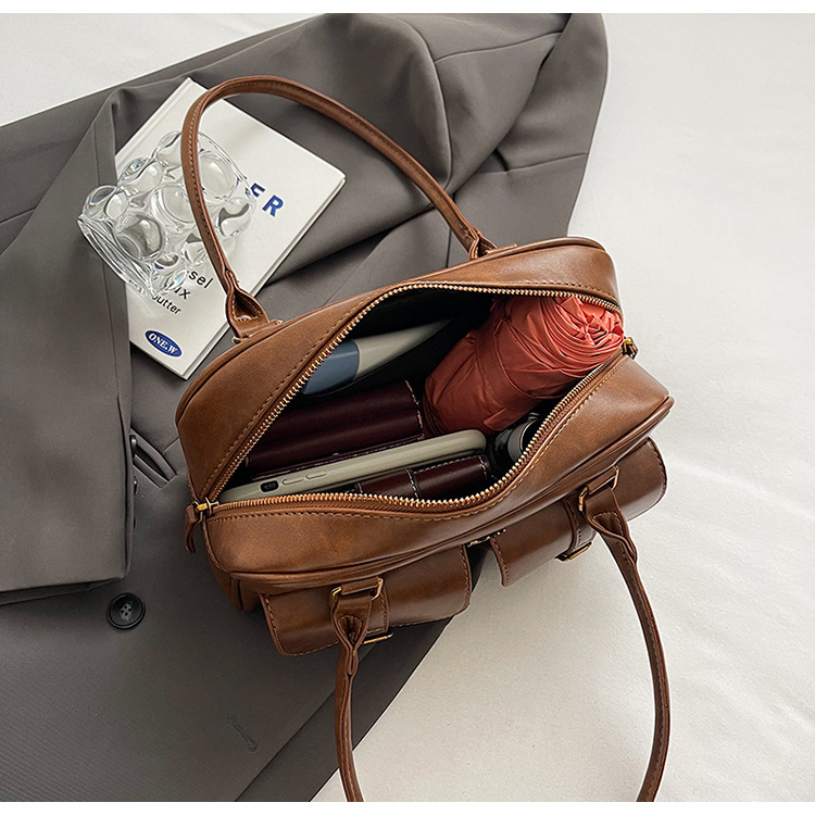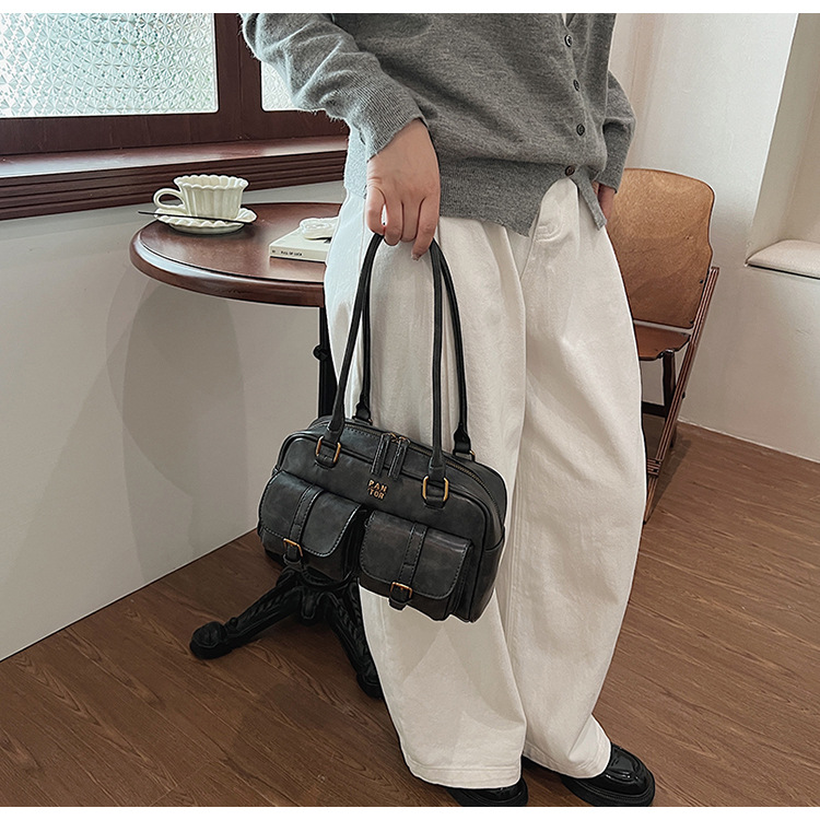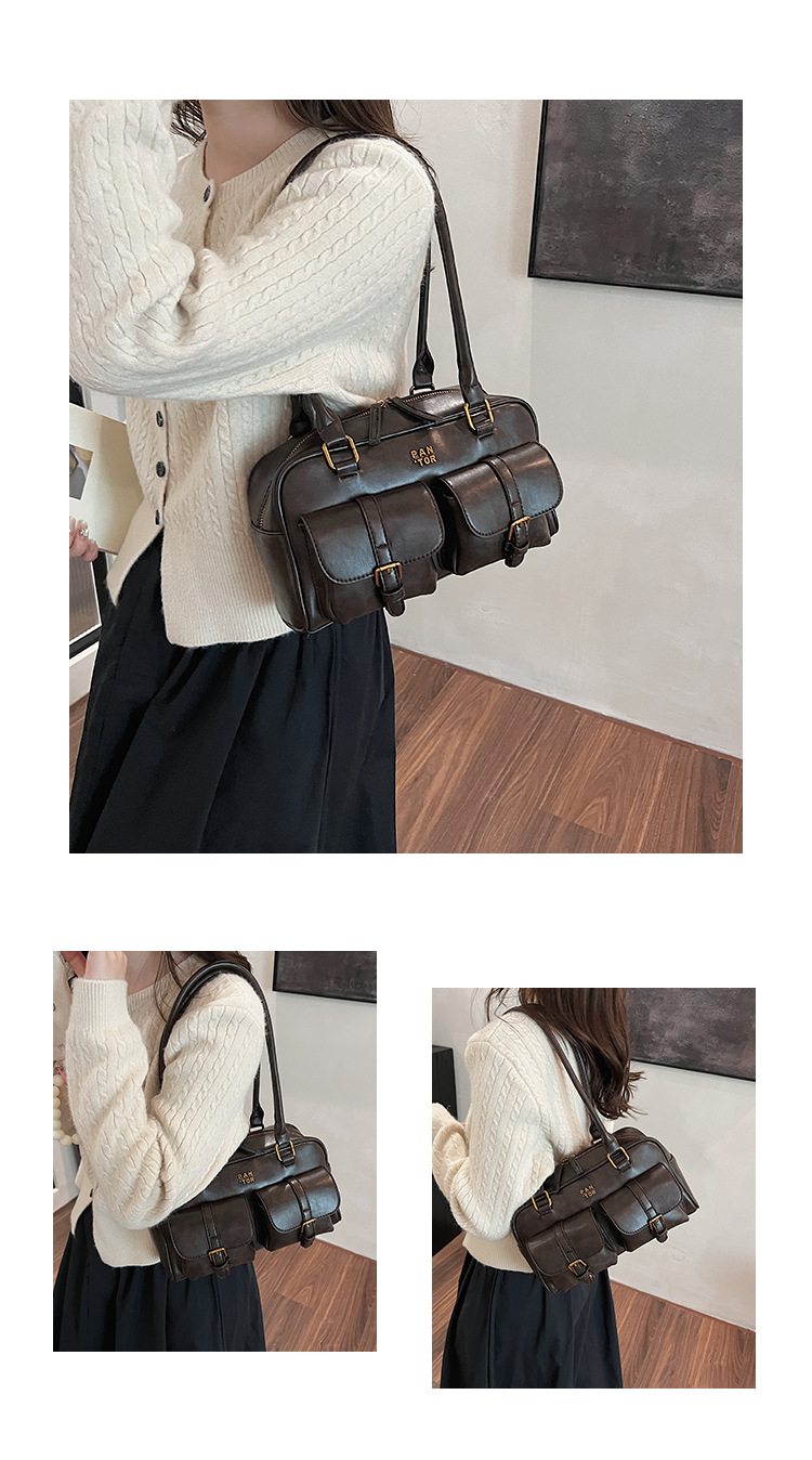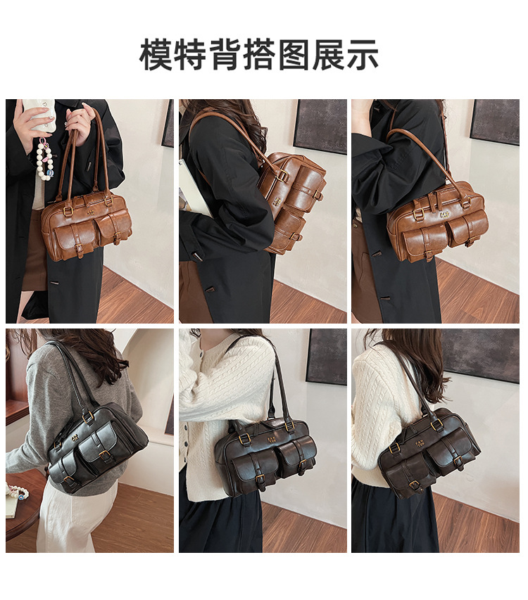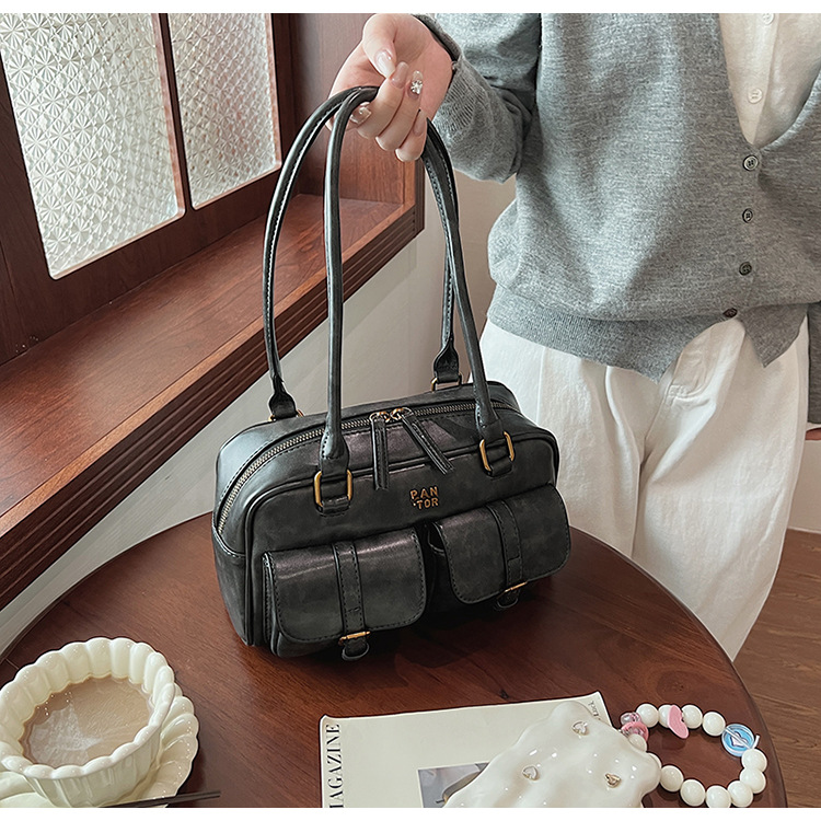Maillard 다크 브라운 가방 여성의 2024 새로운 가을과 겨울 빈티지 보스턴 가방 통근 언더암 어깨 베개 가방