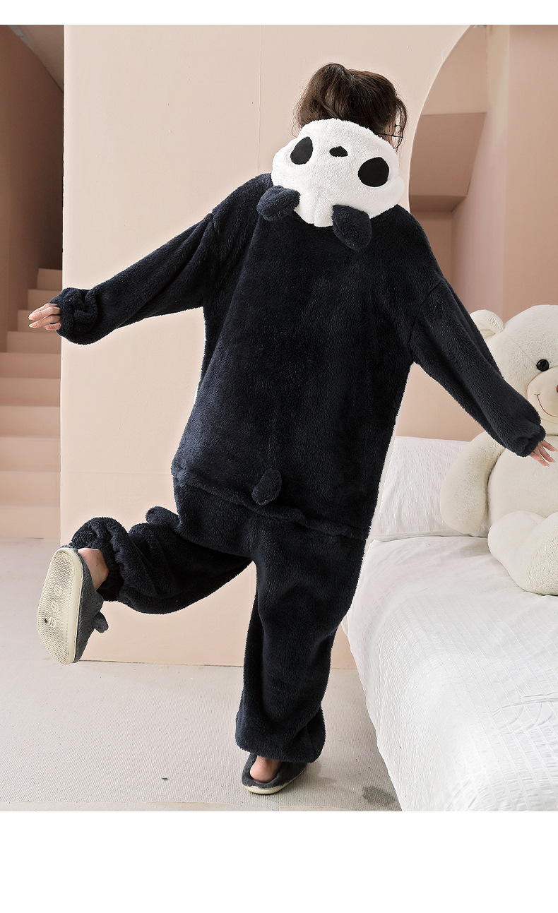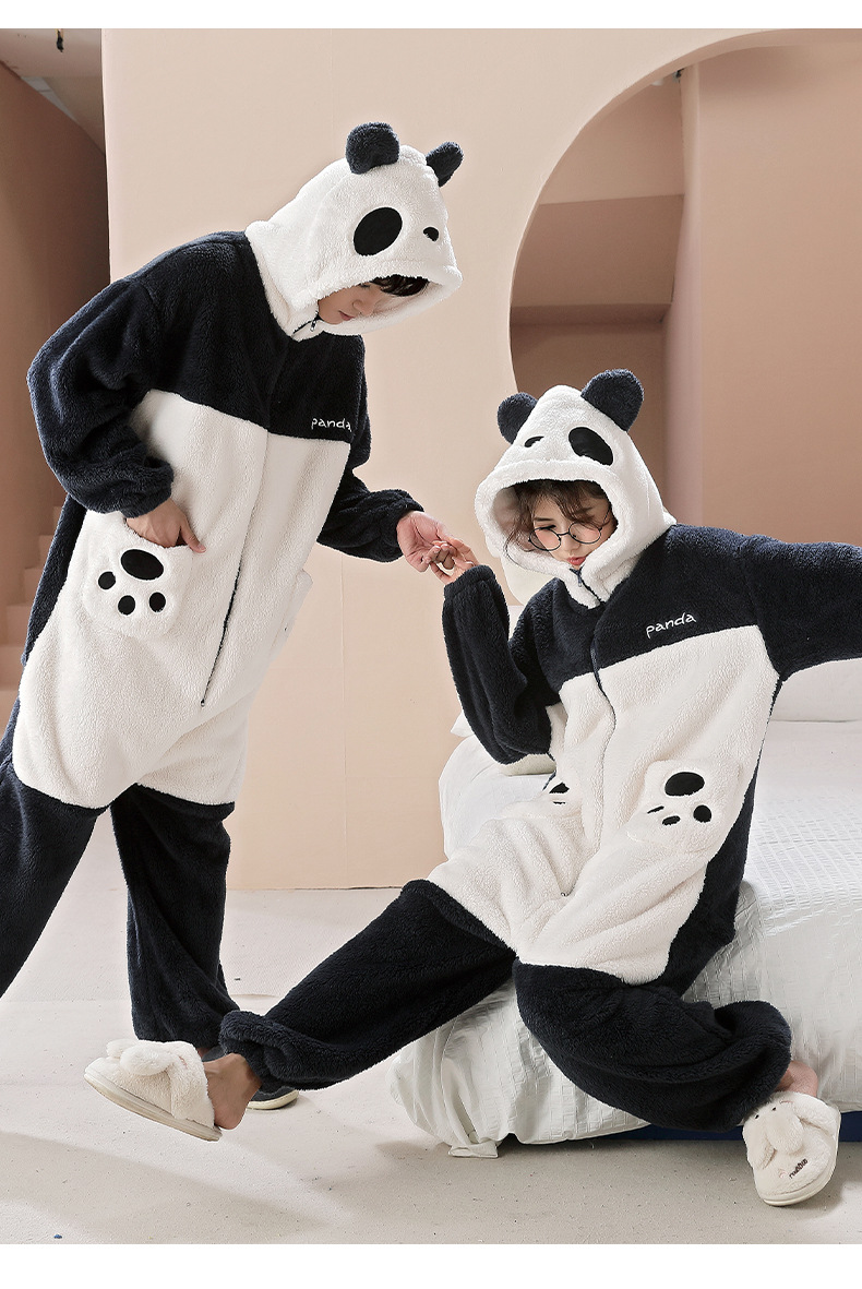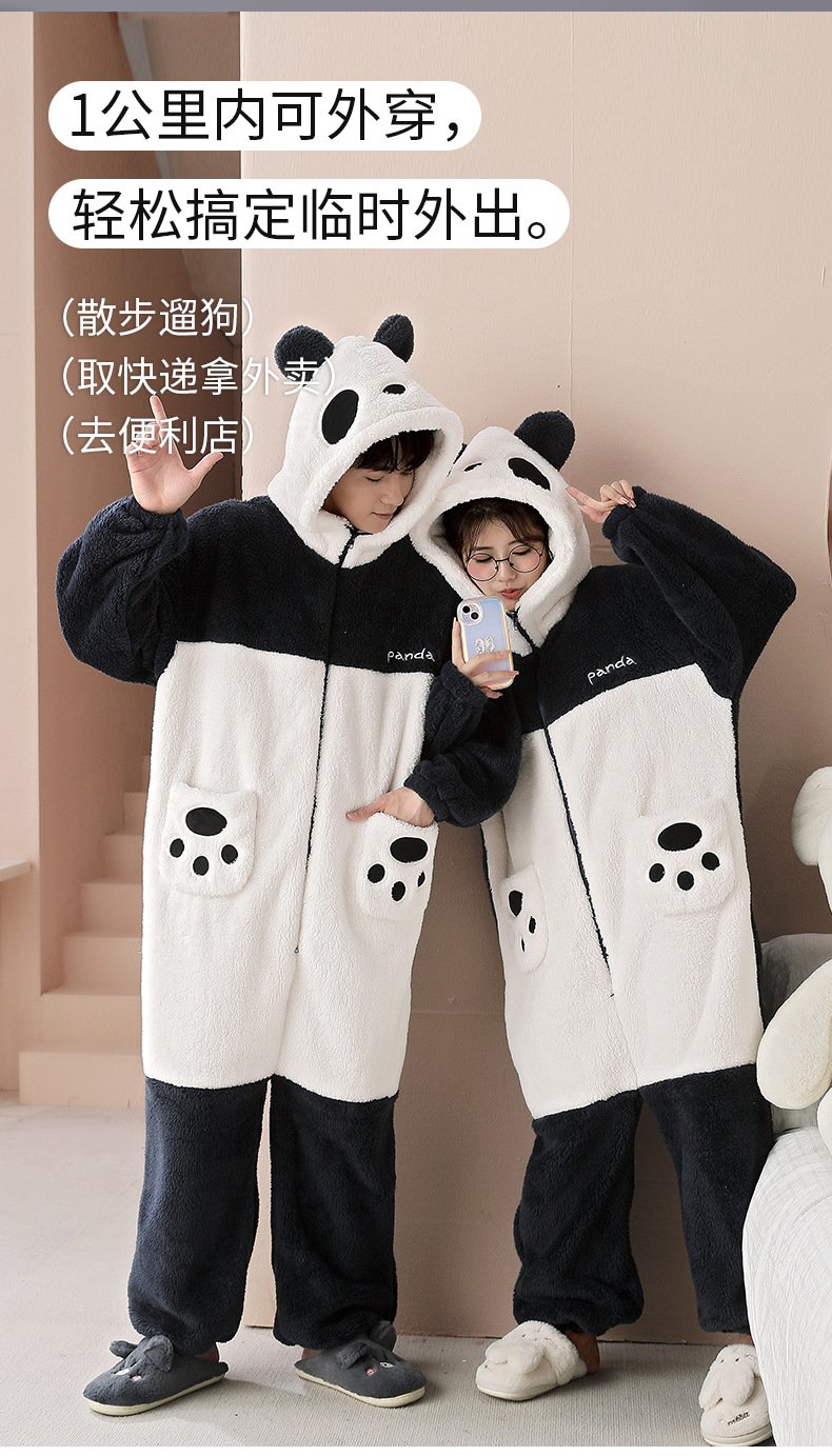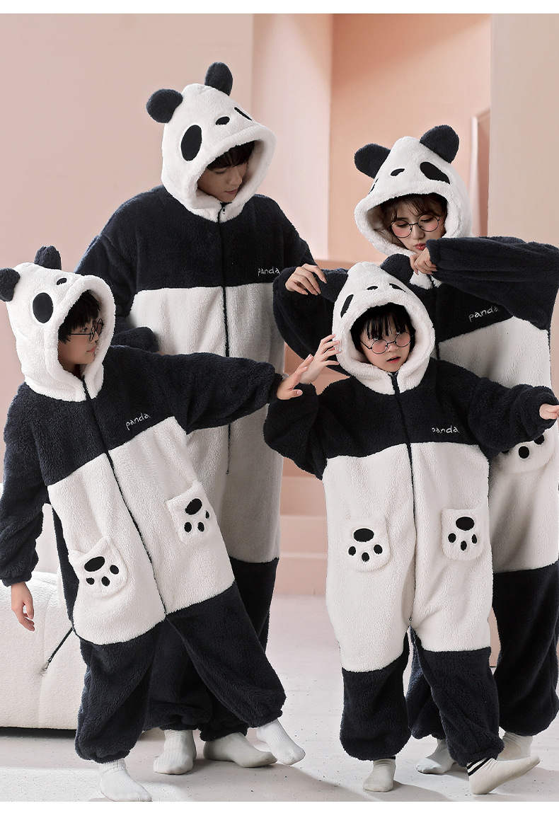 부모-자식 결합 잠옷 어린이 산호 양털 침낭은 기모 두꺼운 가을과 겨울 팬더 후드 홈 세트스토어 가기