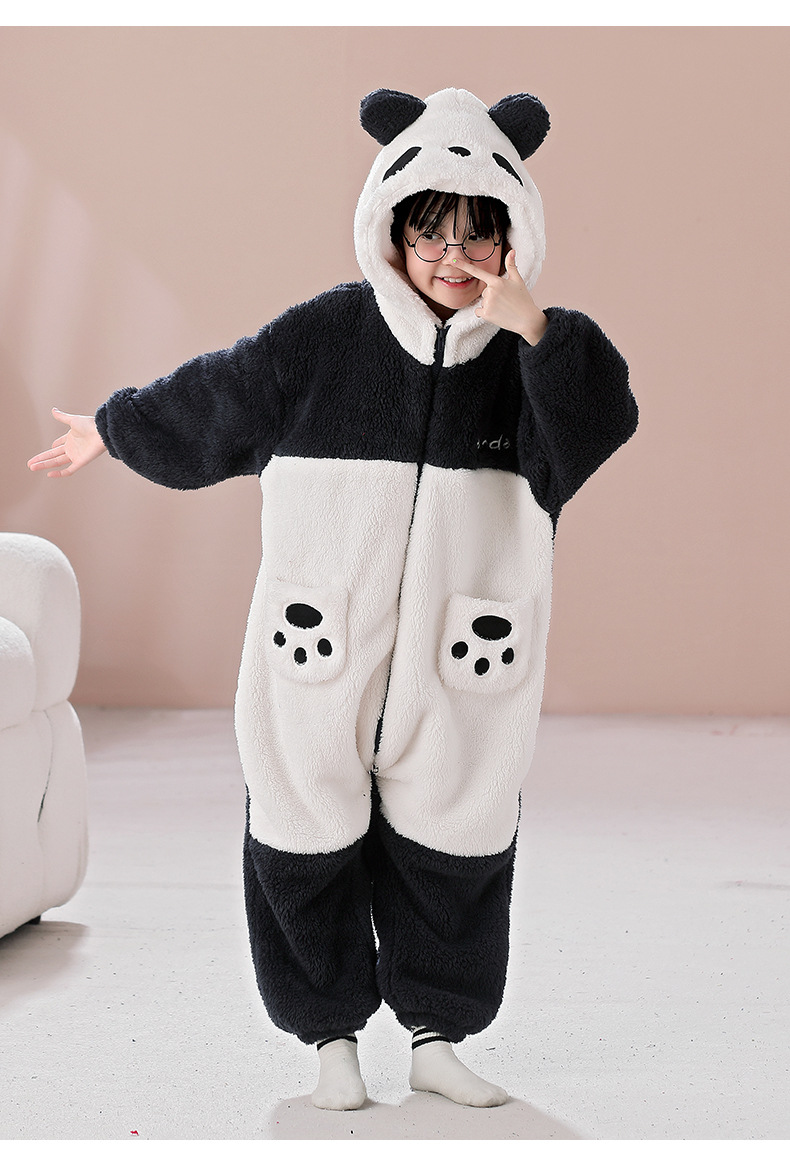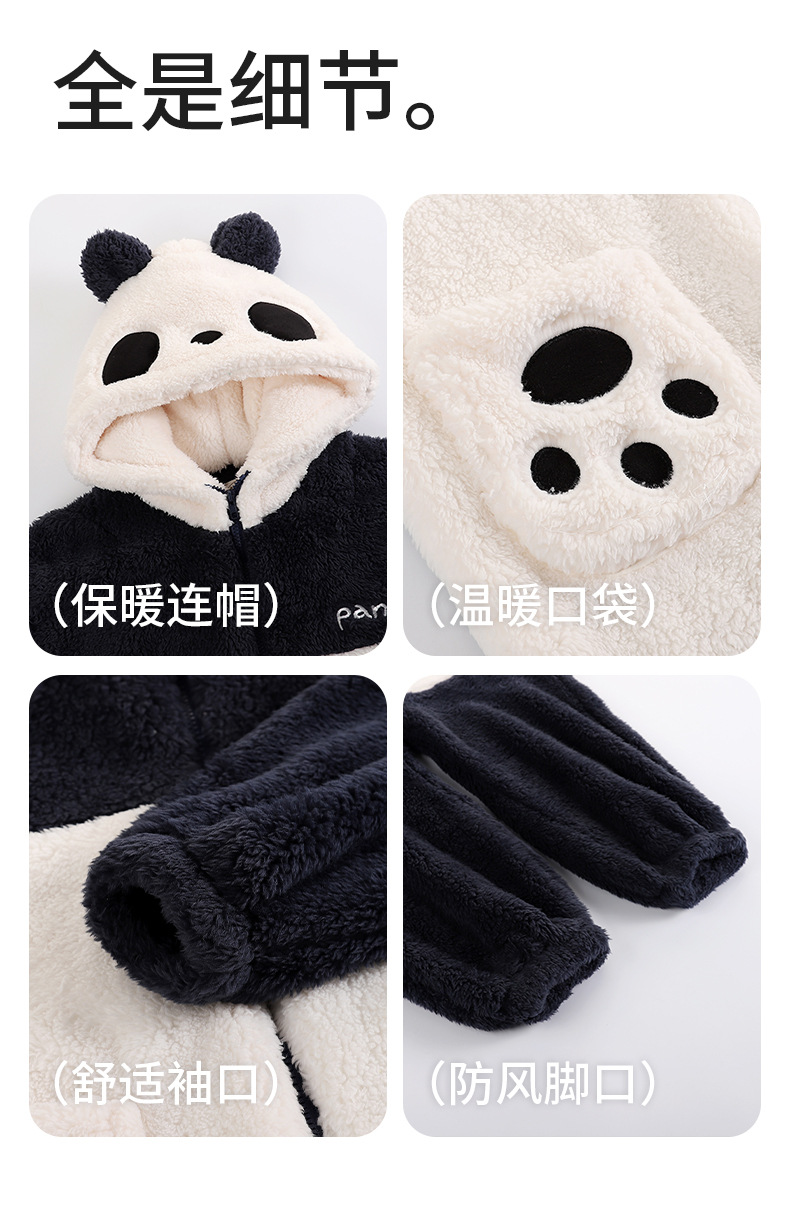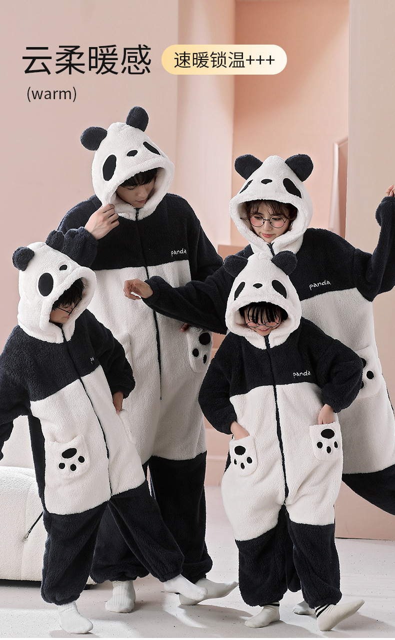 부모-자식 결합 잠옷 어린이 산호 양털 침낭은 기모 두꺼운 가을과 겨울 팬더 후드 홈 세트