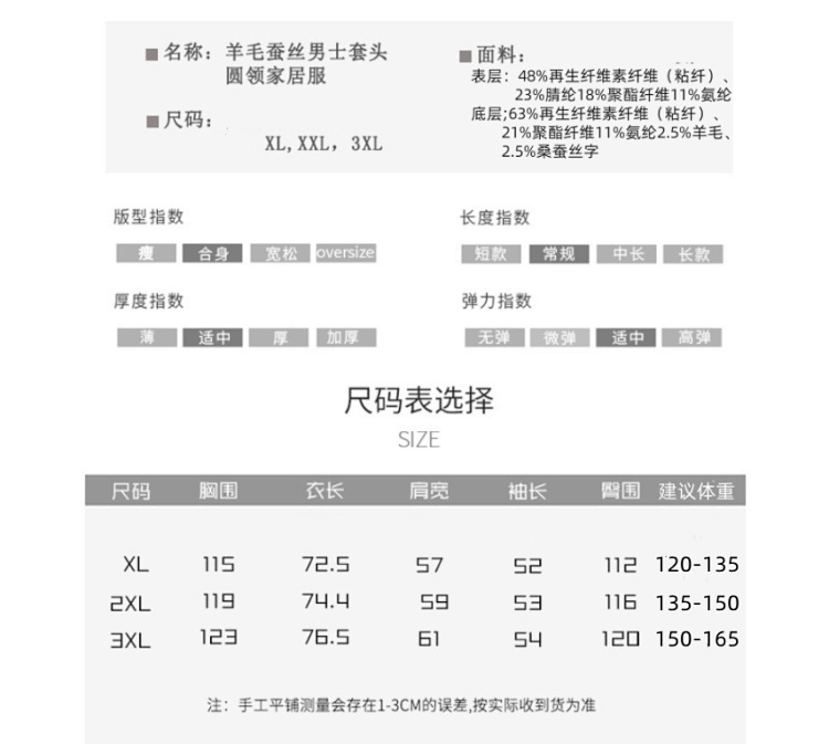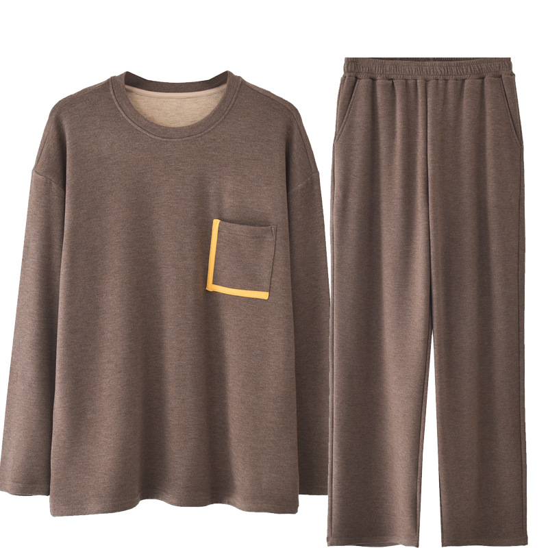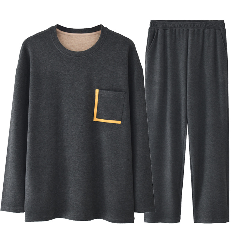 홈 의류 세트 크루 넥 울 실크 남성용 따뜻한 파자마 바지 가을 겨울 착용스토어 가기