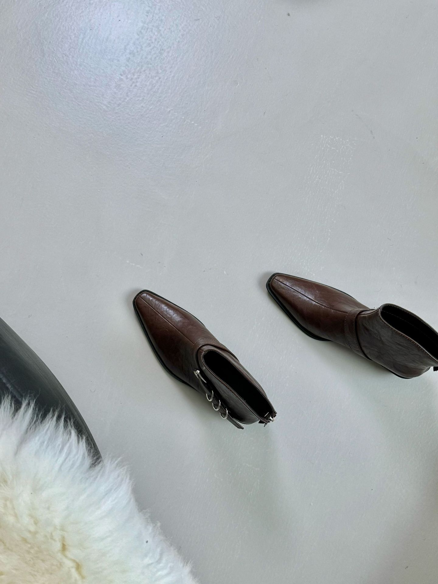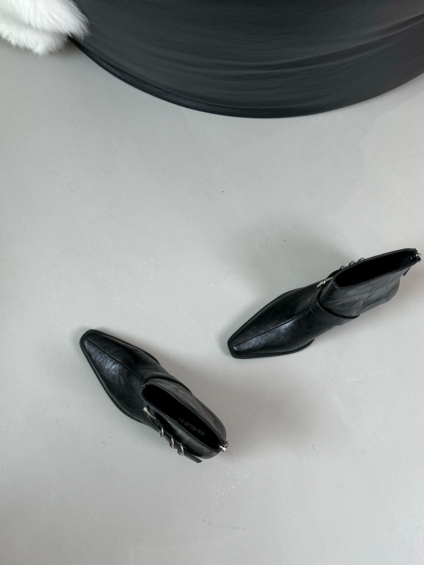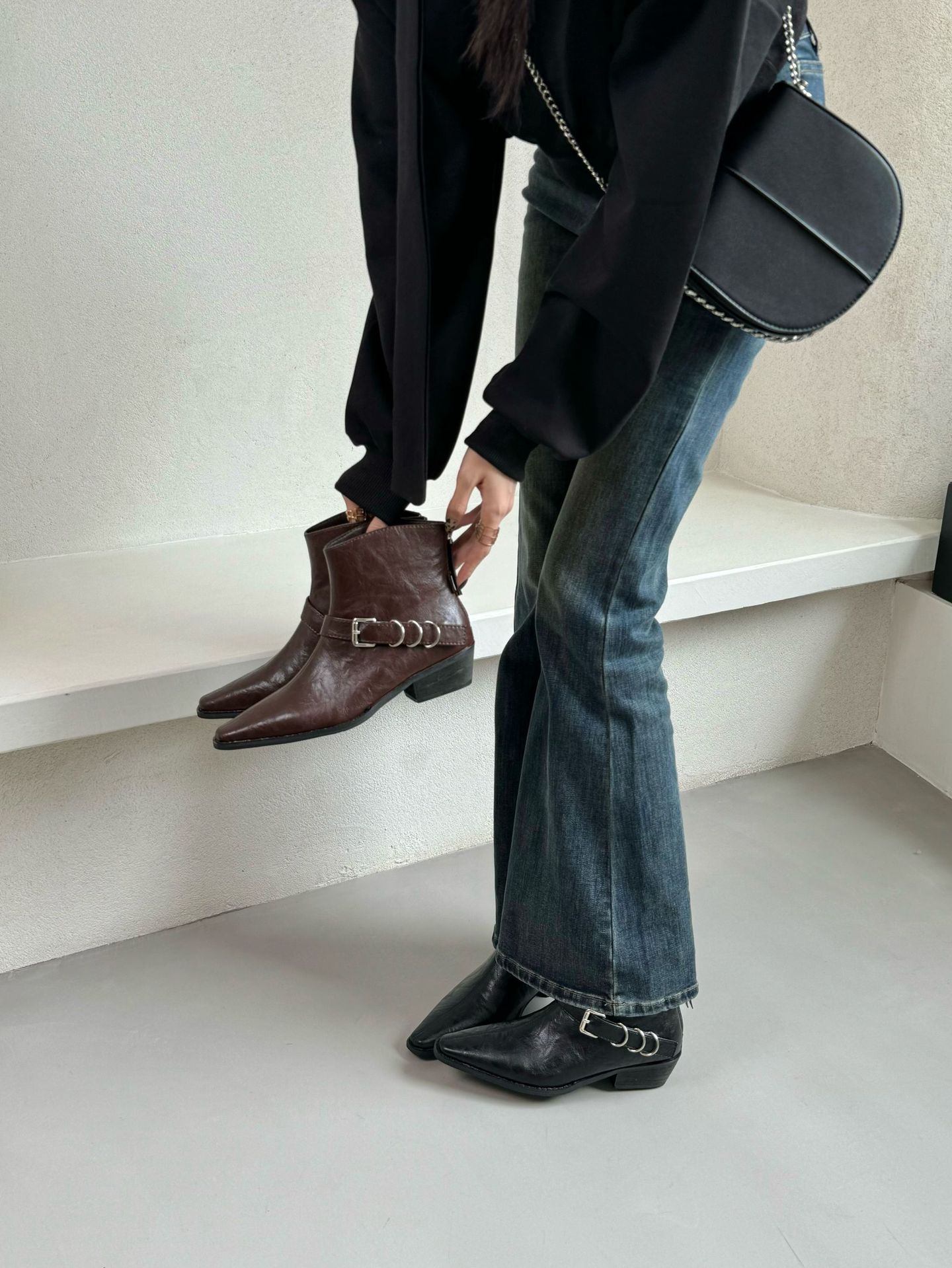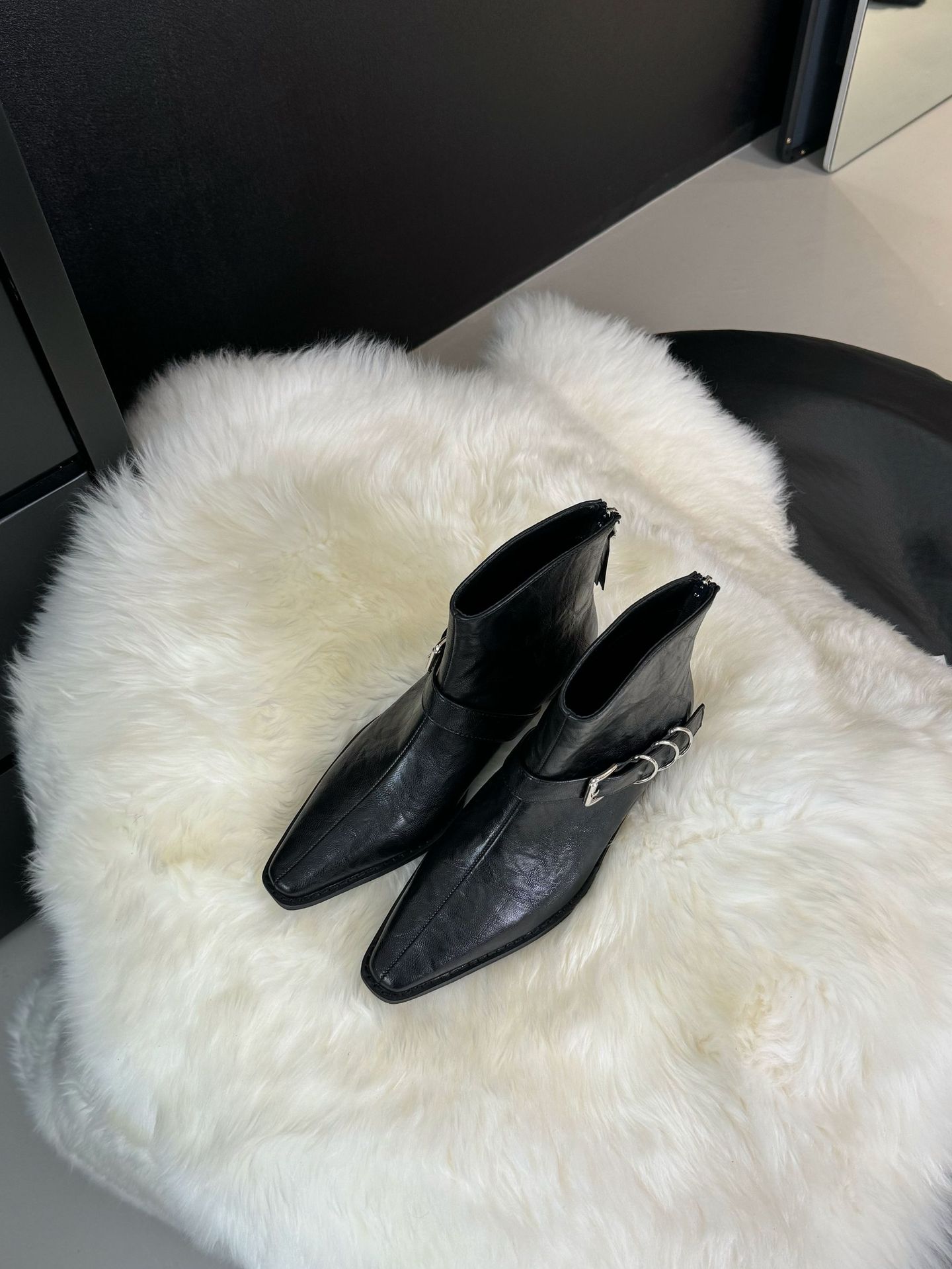 프렌치 스타일 뾰족코 두꺼운 굽 숏부츠 여성용 2025 가을 겨울 신상 레트로 벨트 버클 숏부츠스토어 가기