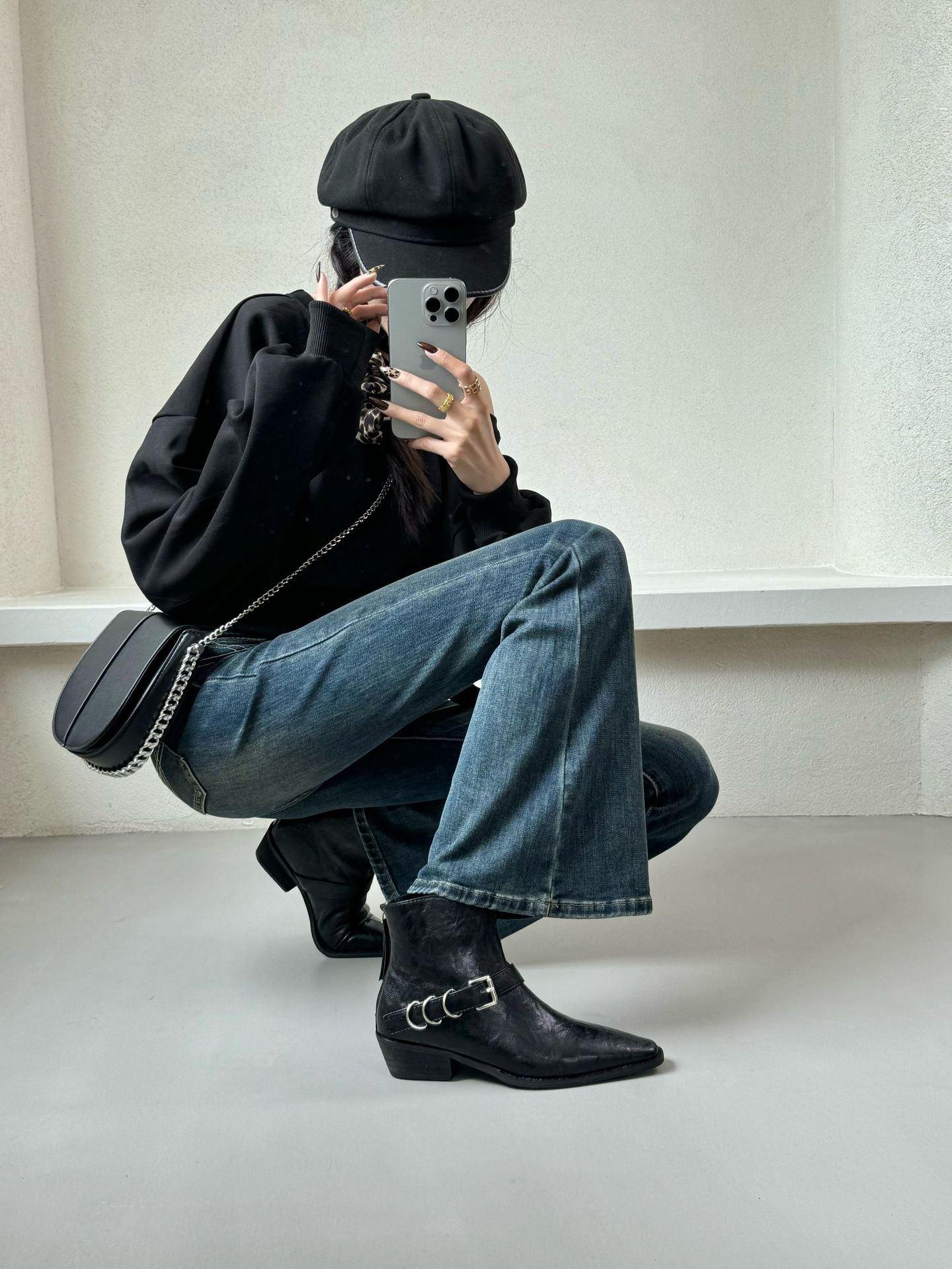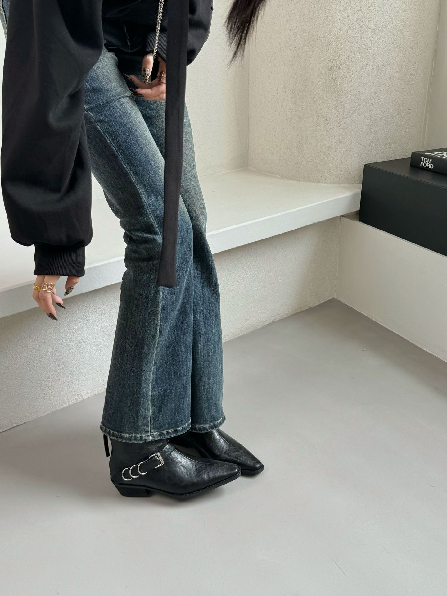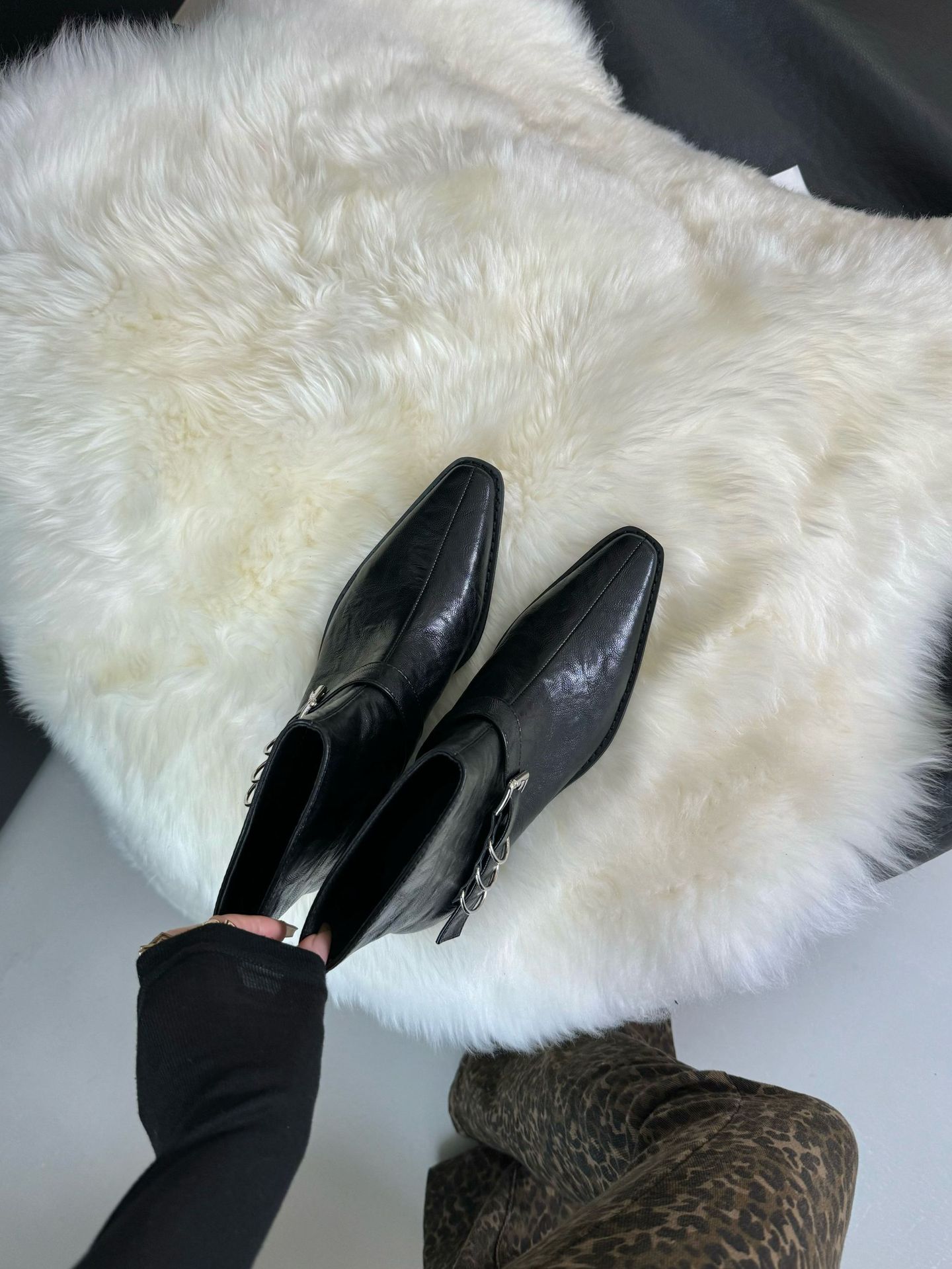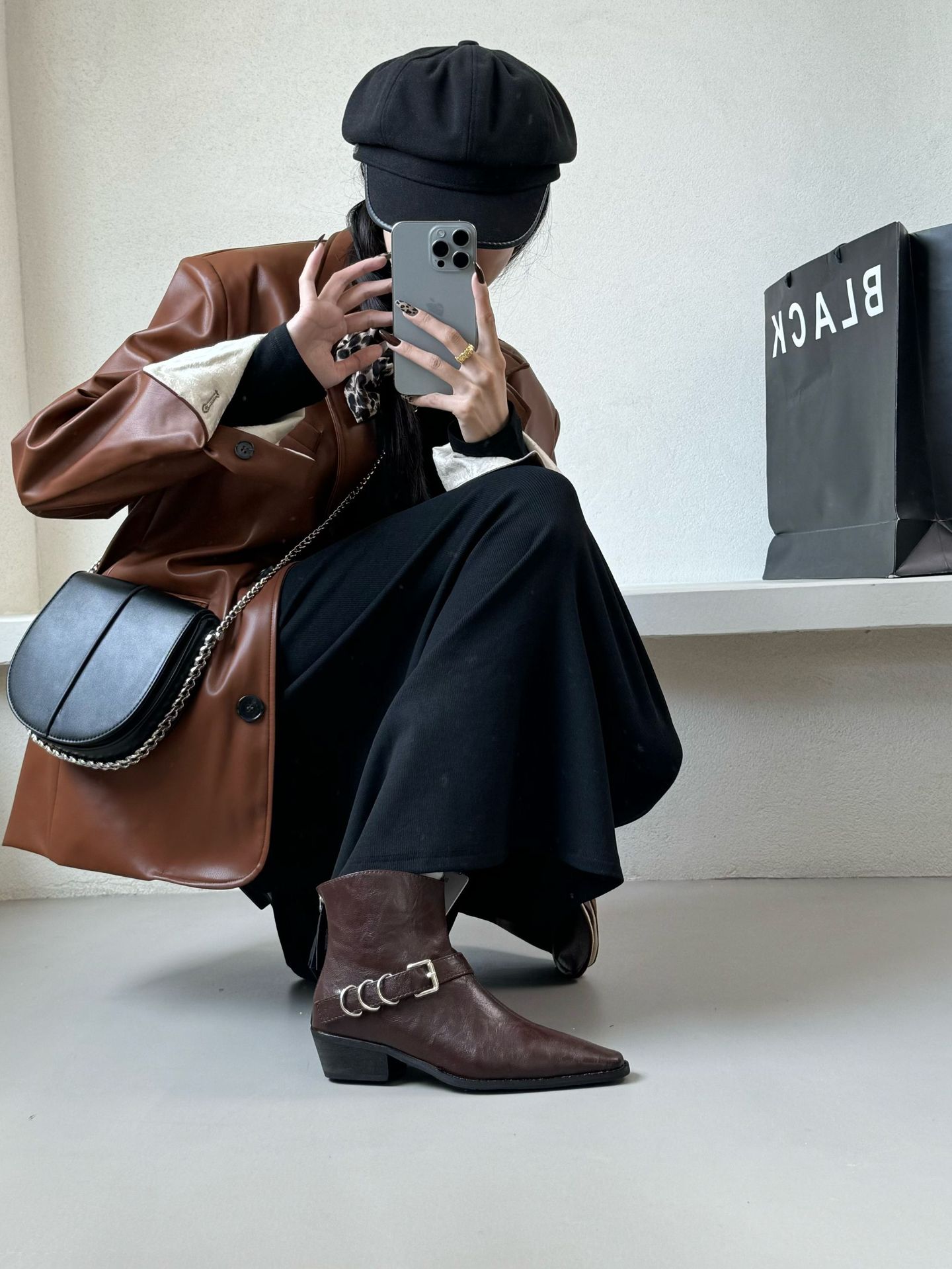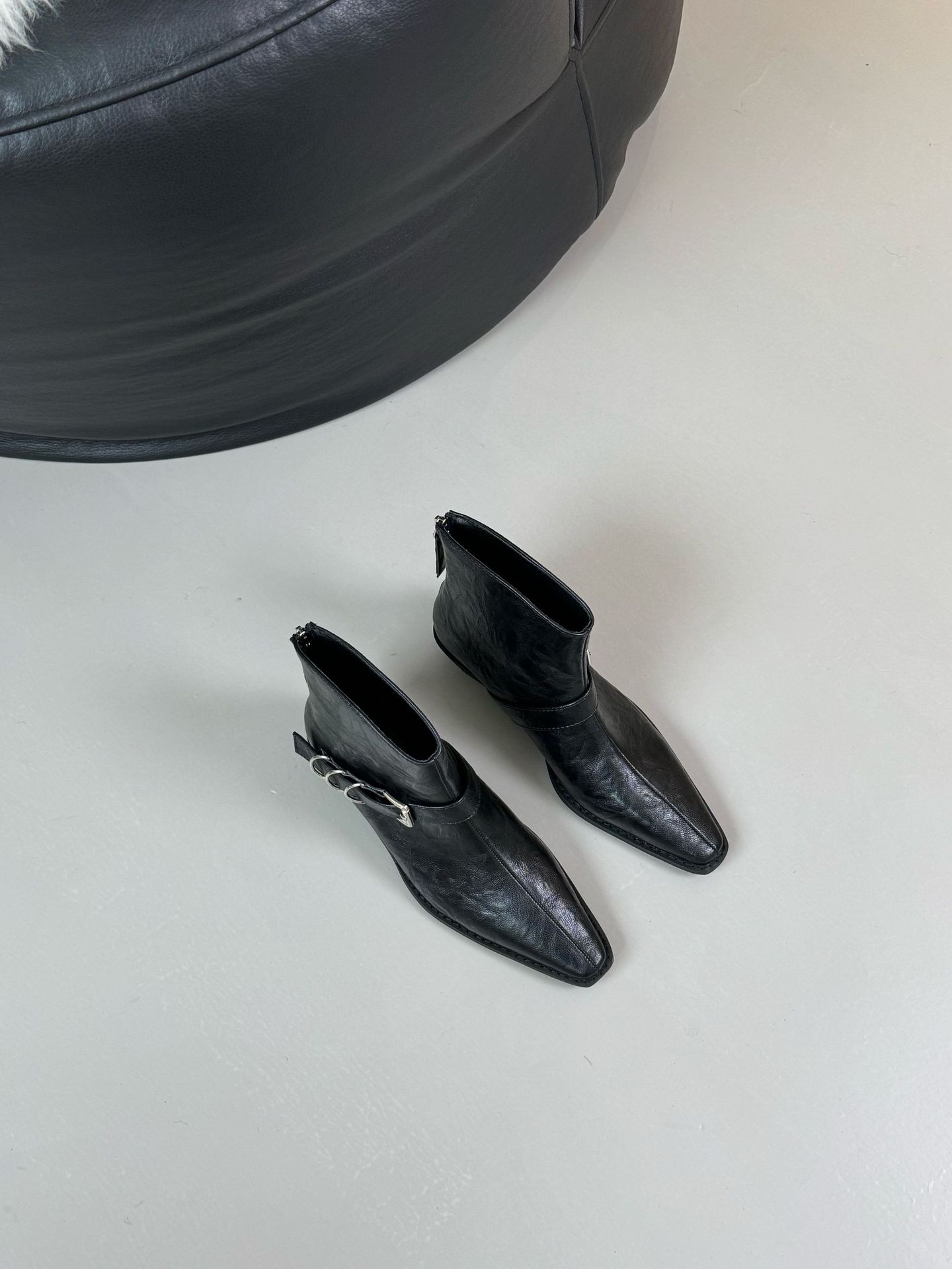 프렌치 스타일 뾰족코 두꺼운 굽 숏부츠 여성용 2025 가을 겨울 신상 레트로 벨트 버클 숏부츠스토어 가기