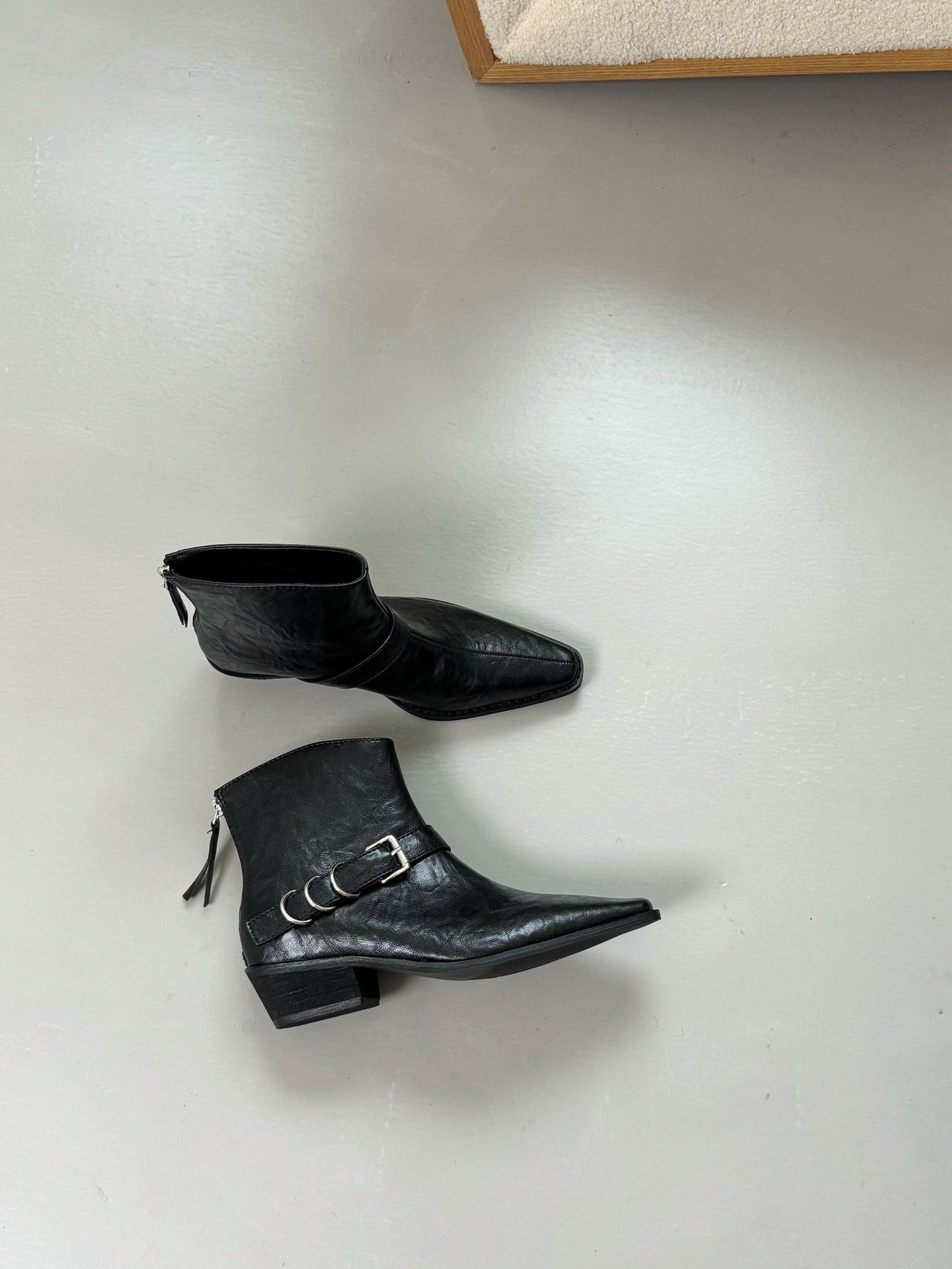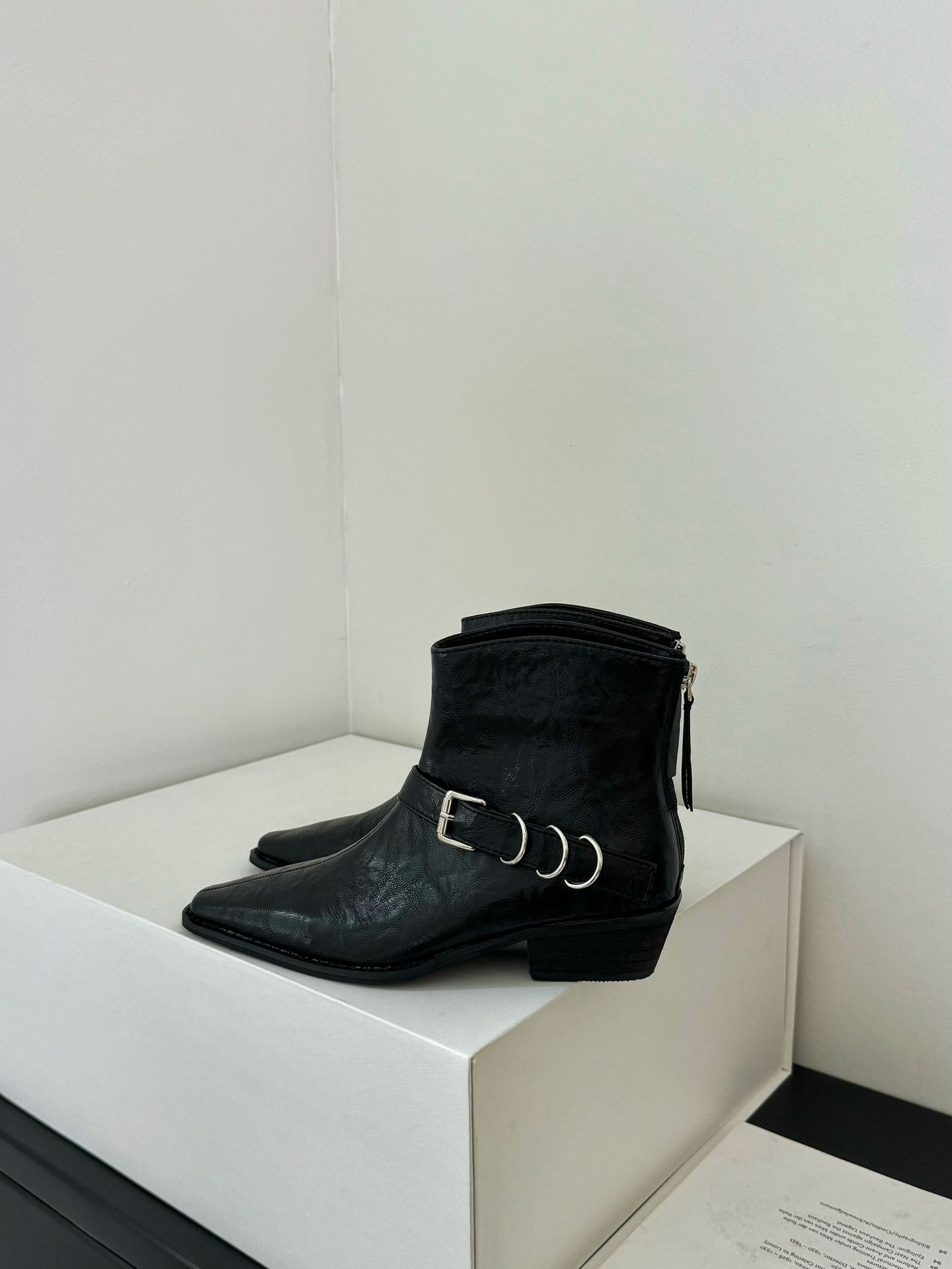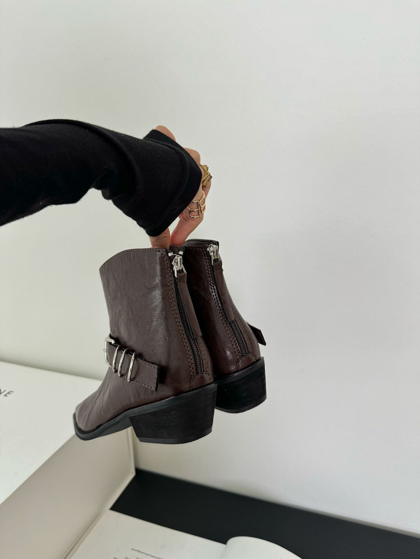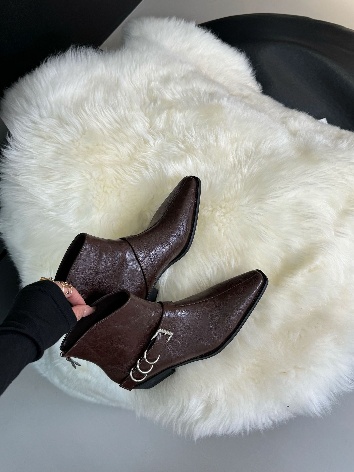 프렌치 스타일 뾰족코 두꺼운 굽 숏부츠 여성용 2025 가을 겨울 신상 레트로 벨트 버클 숏부츠
