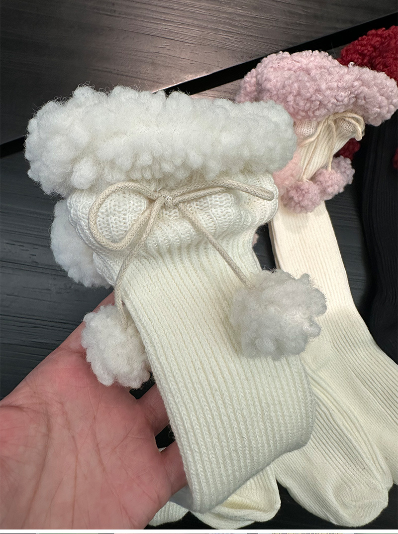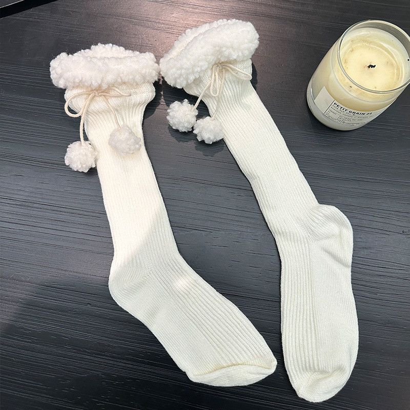 가을과 겨울 새로운 로리타 모피 바느질 레이스 램 모피 볼 따뜻한 거친 면 스택 양말 귀여운 미드 튜브 양말스토어 가기