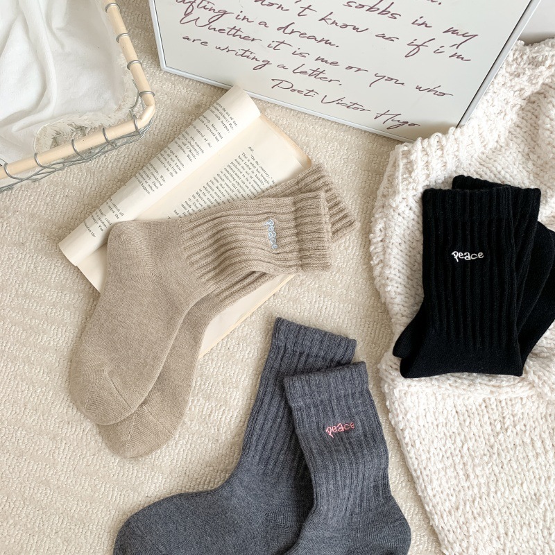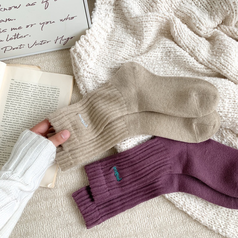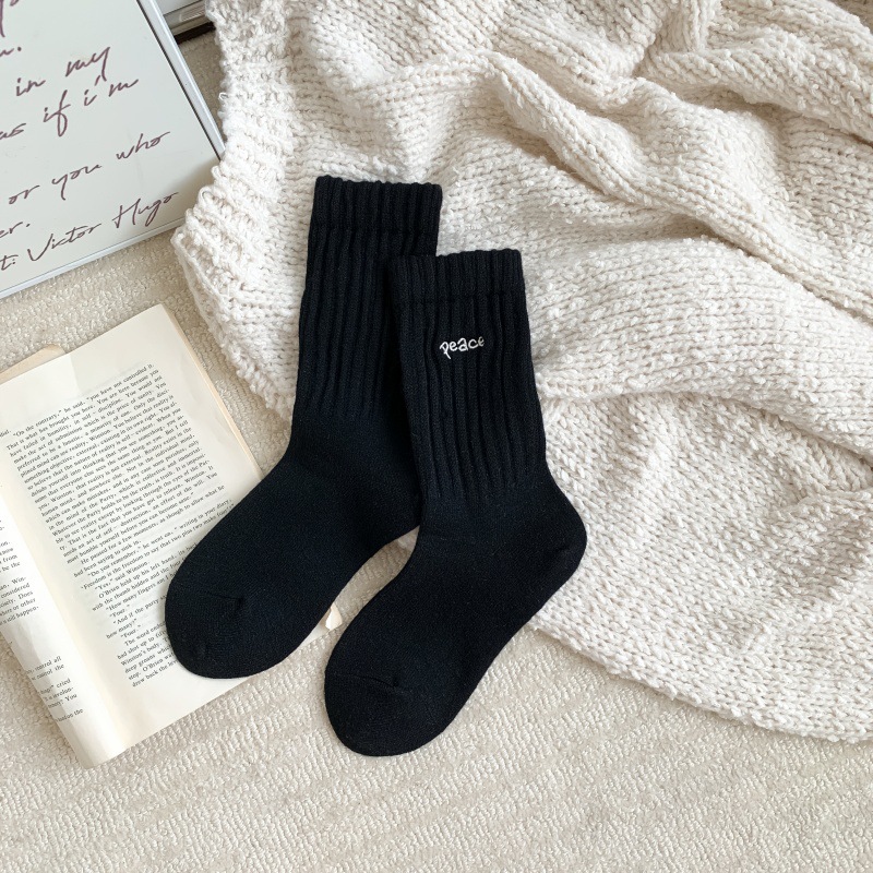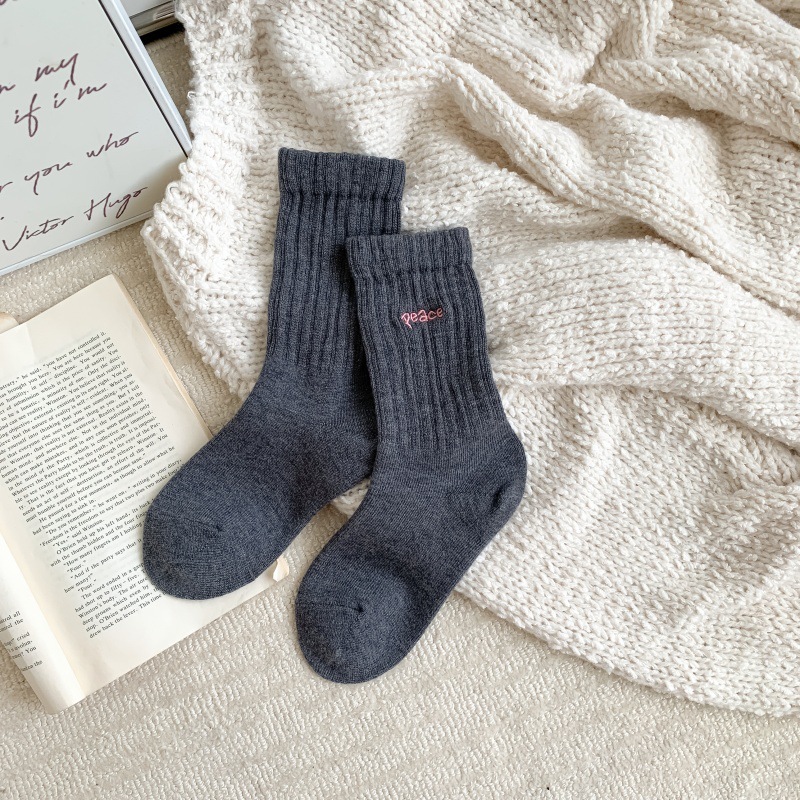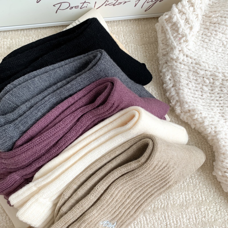 양말 여성의 단색 자수 편지 양모 더미 양말 가을과 겨울 두꺼운 따뜻한 여성의 중간 길이 양말 캐주얼 스타킹