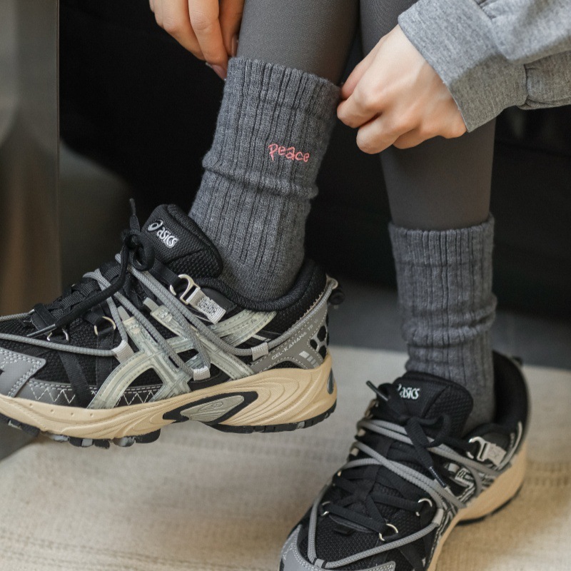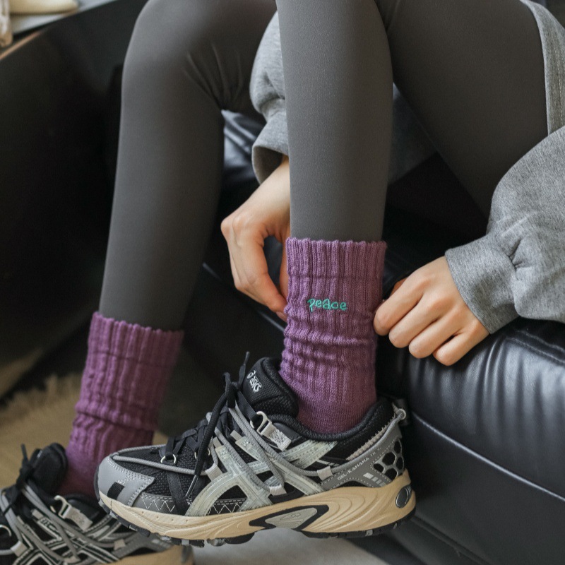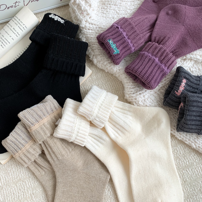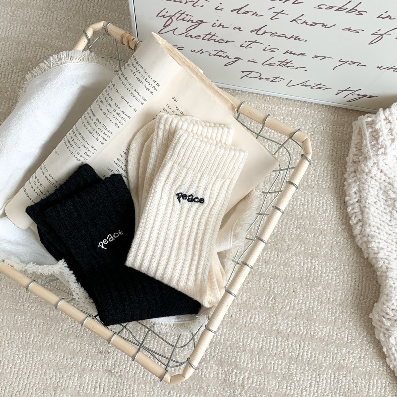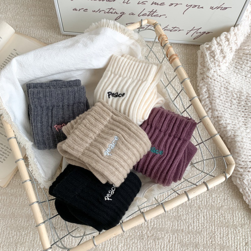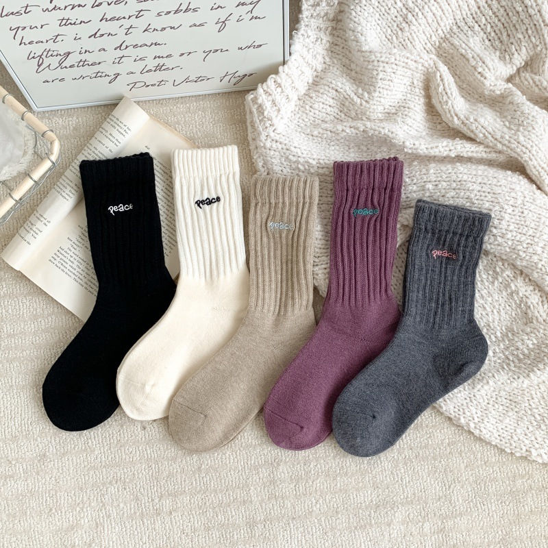양말 여성의 단색 자수 편지 양모 더미 양말 가을과 겨울 두꺼운 따뜻한 여성의 중간 길이 양말 캐주얼 스타킹