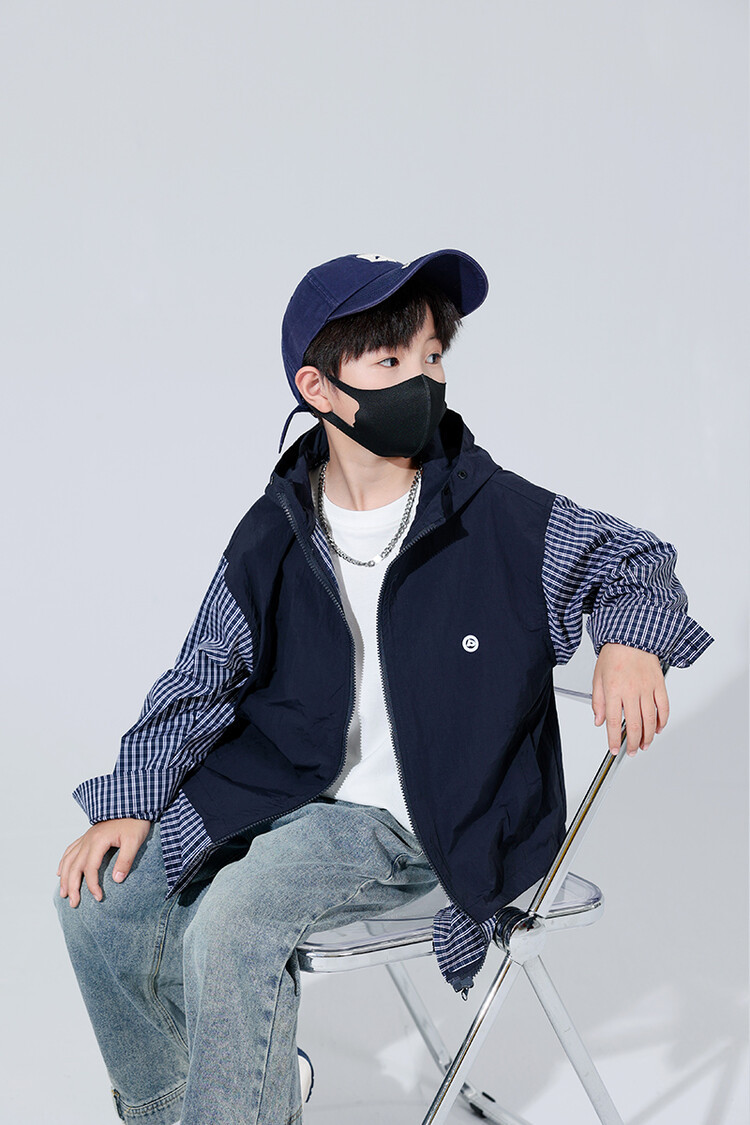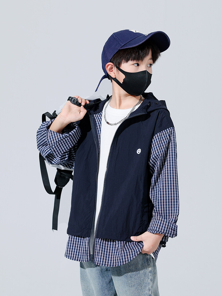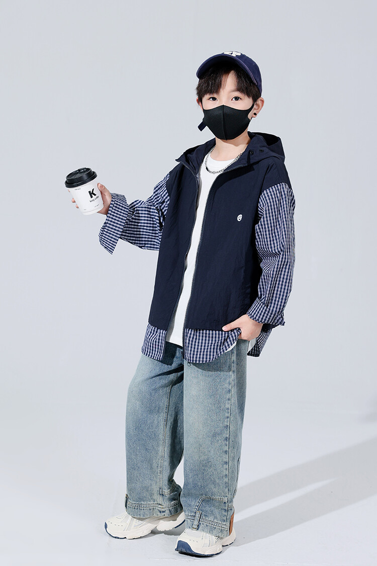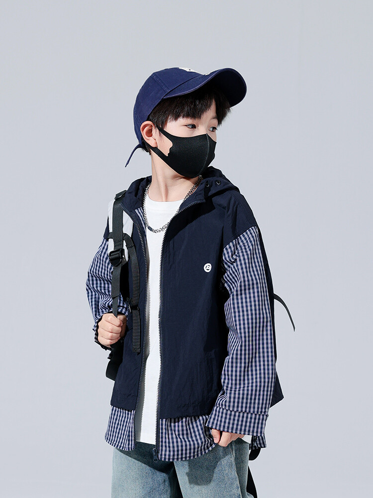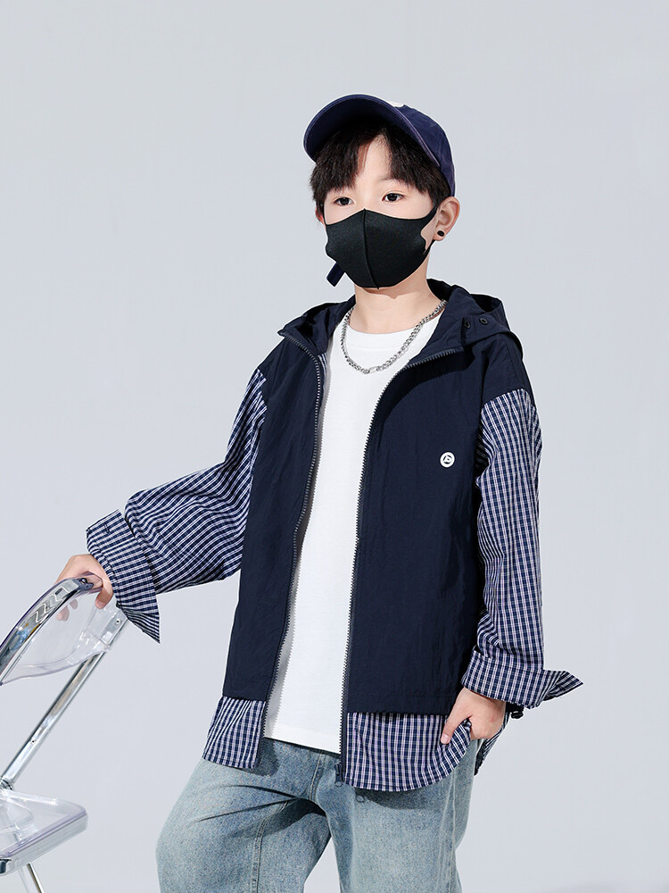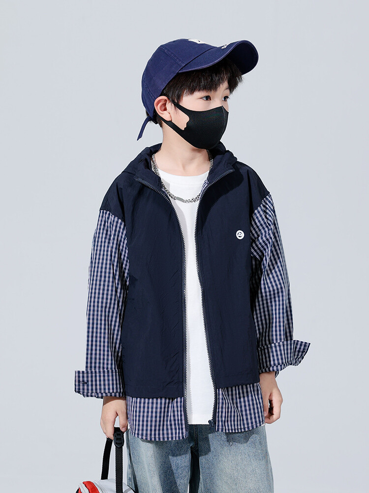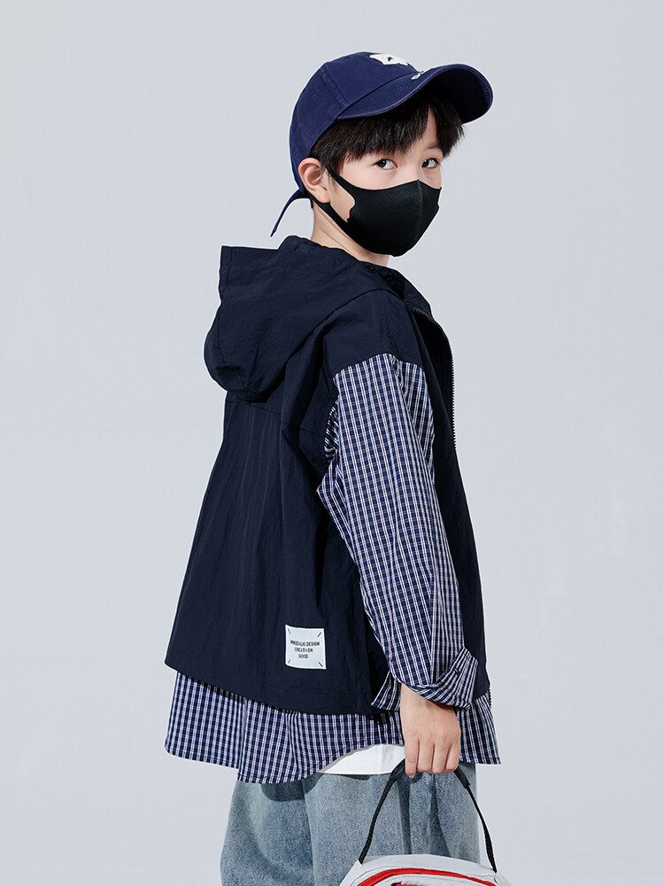 소년 가을 격자 무늬 재킷 후드 캐주얼 한국 스타일 어린이 가을 바느질 톱 소년의 유행 재킷 카디건