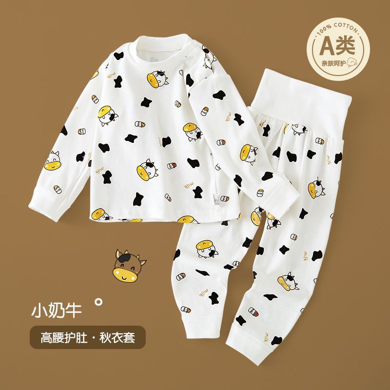 봄과 가을 아기 높은 허리 배꼽 보호 속옷 세트 소년 소녀 가을 옷과 가을 바지 아기 어린이 면화 홈 옷 귀여운